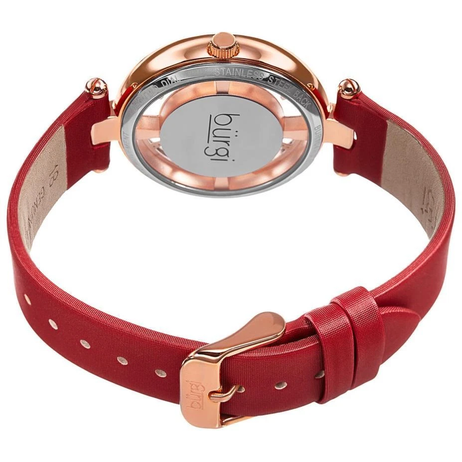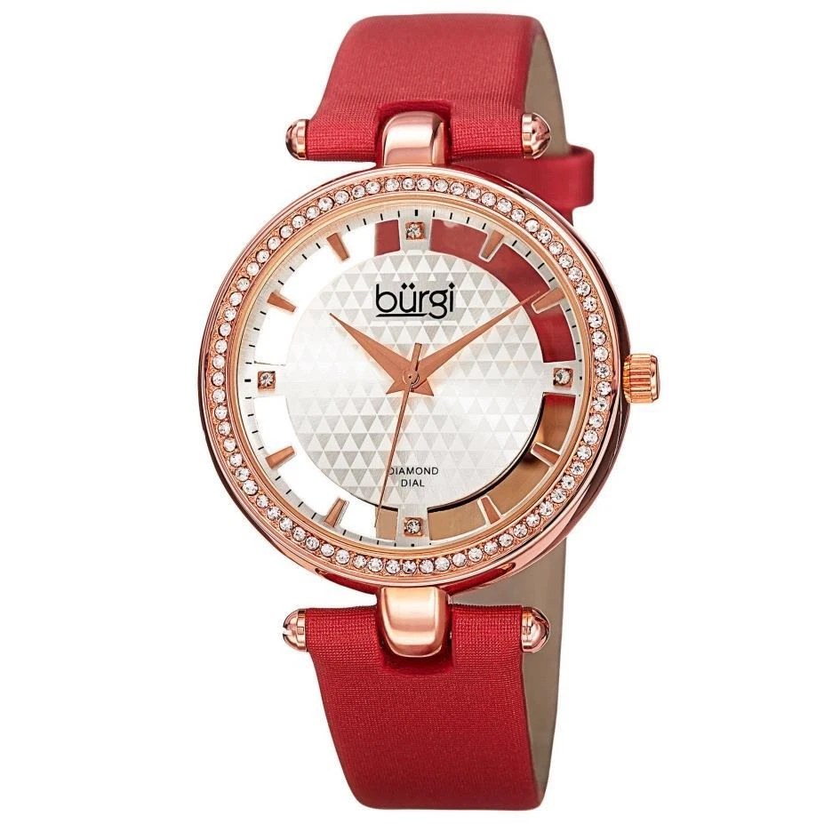Burgi BUR104RD Diamond Markers Crystal Bezel Red Satin Strap Rose Womens Watch