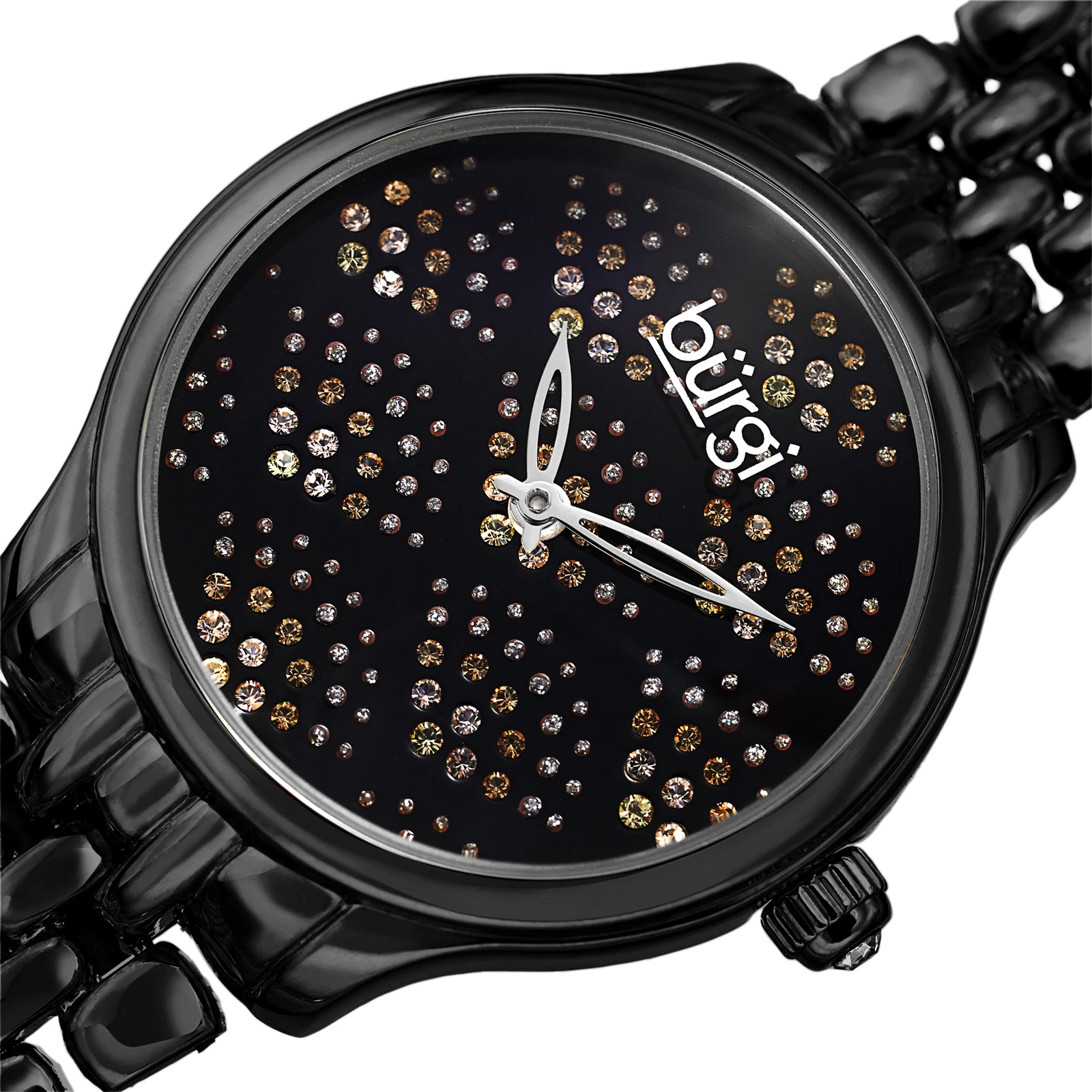 Women's Burgi BUR205BK Swarovski Crystal Black Stainless Steel Bracelet Watch