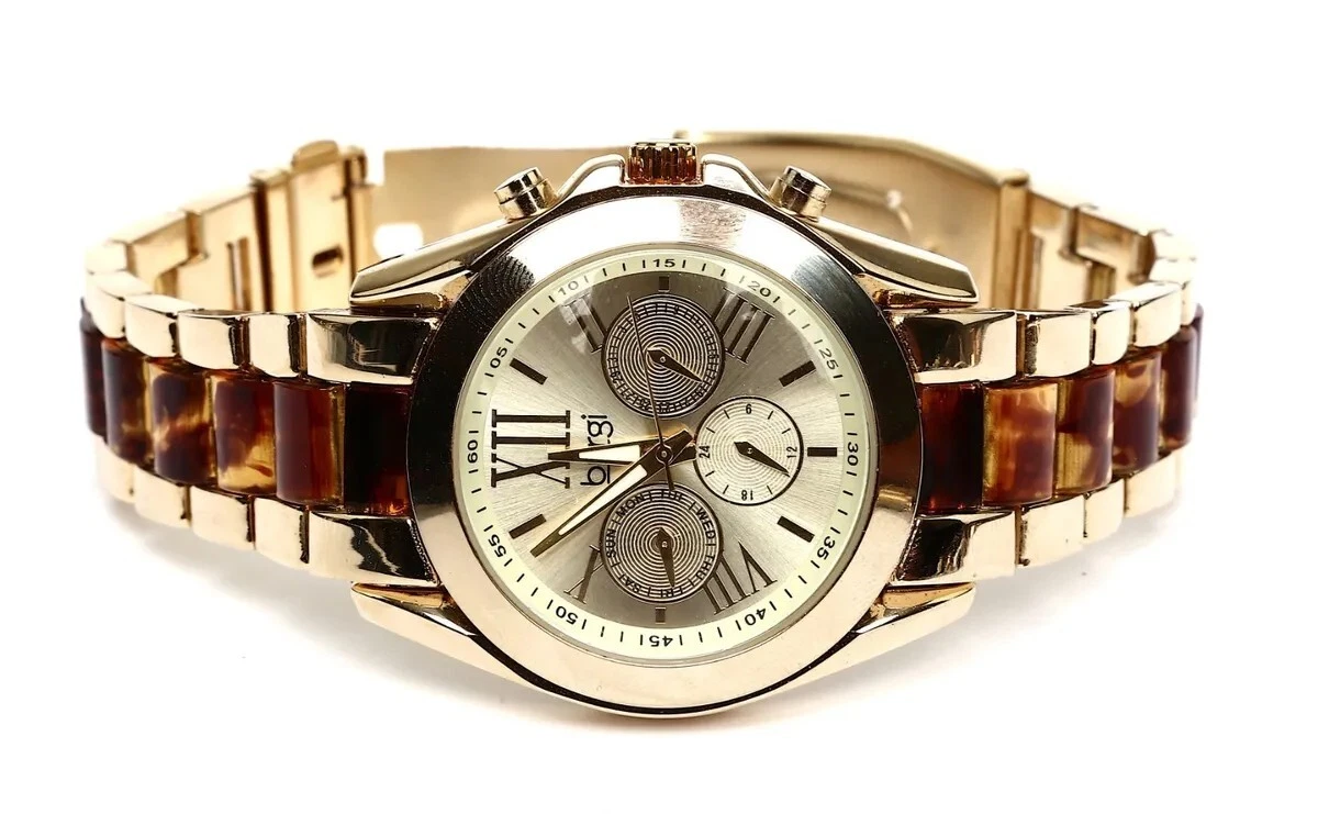 Burgi Women's Multi Function Gold Tone Tortoise Watch 2309