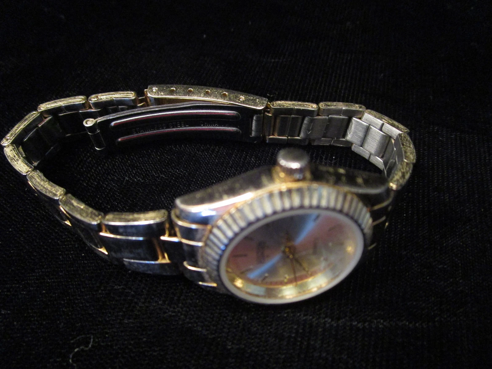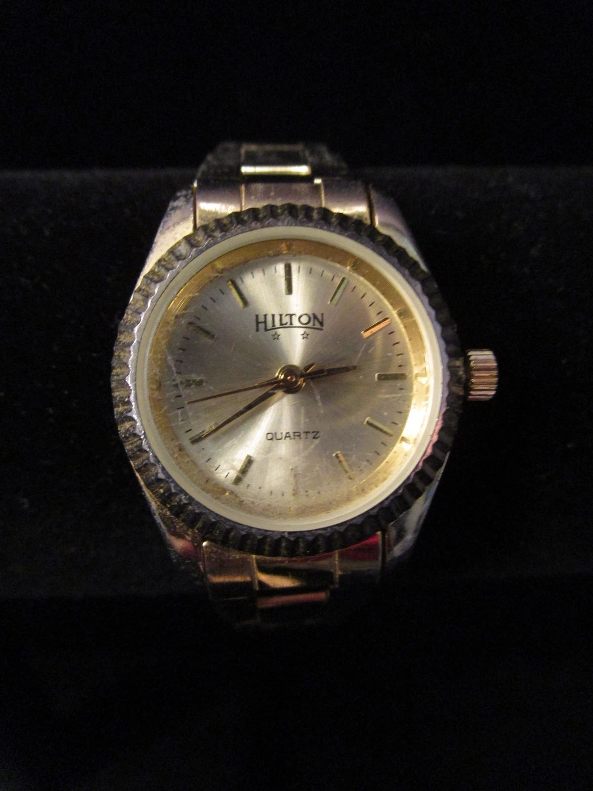 Ladies HILTON watch round face gold-tone link bracelet band quartz analog womens