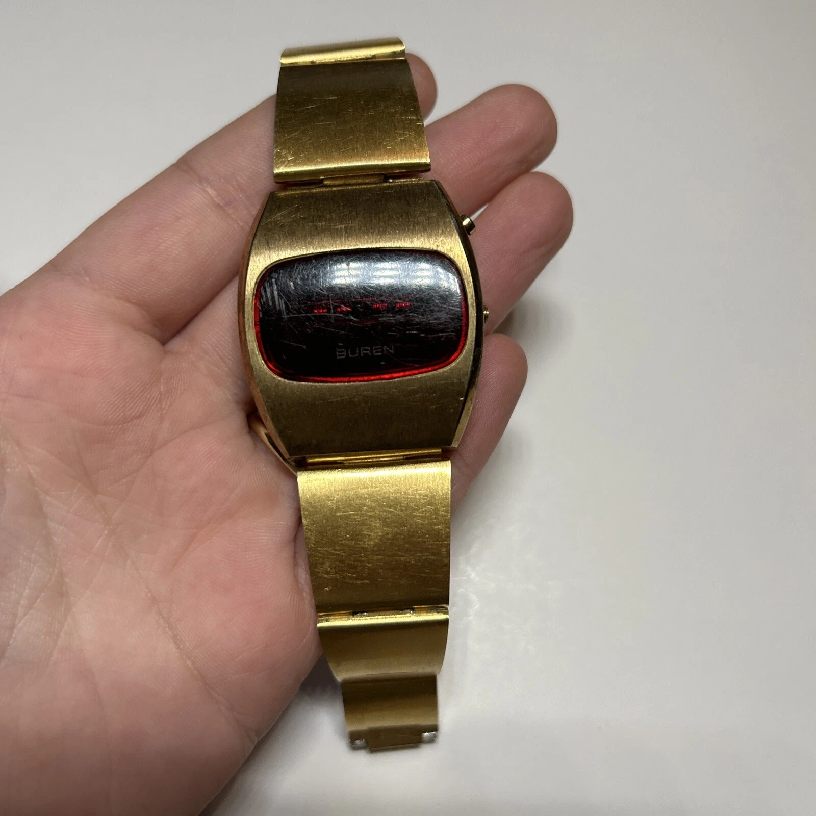 Vintage BUREN Red Led Digital Swiss Men’s Watch