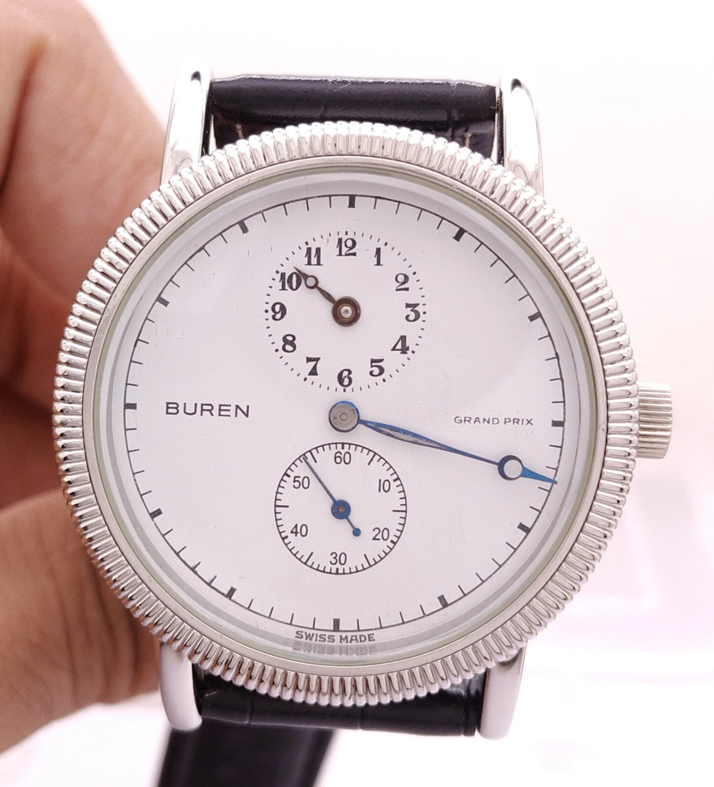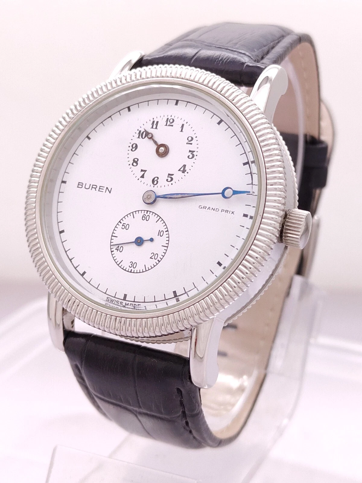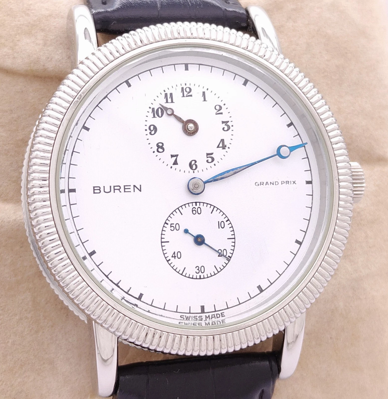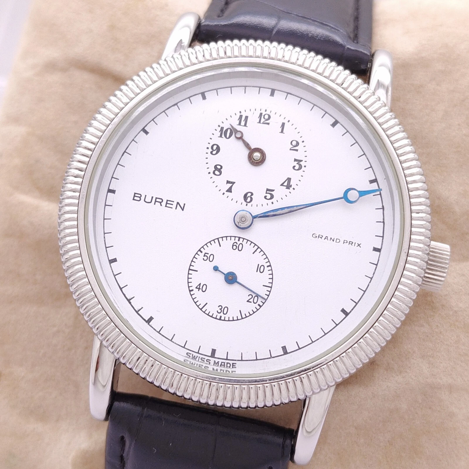 BUREN GRAND PRIX SWISS WHITE DIAL 44mm MECHANICAL VINTAGE MEN'S REGULATOR WATCH