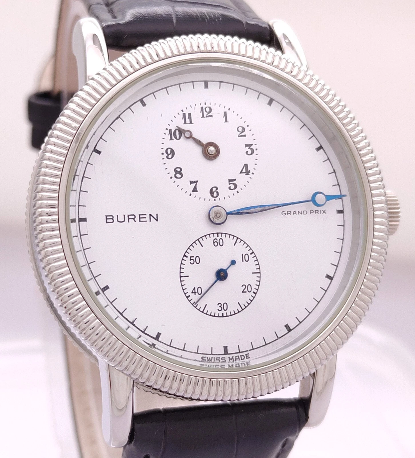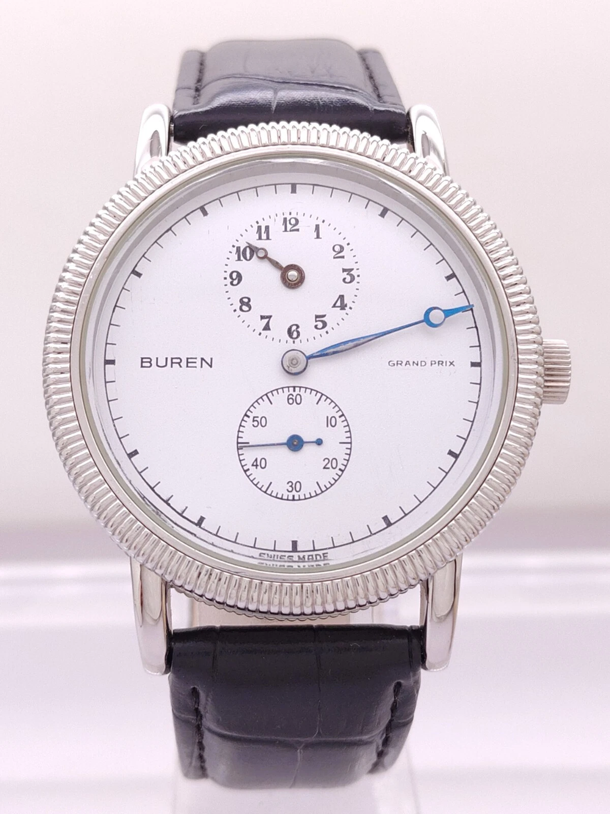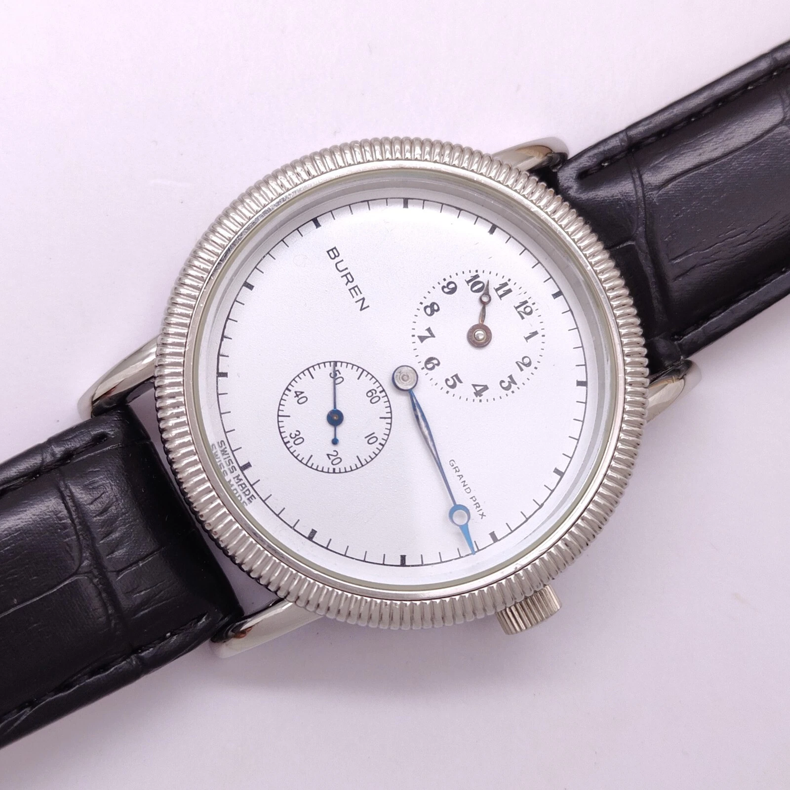 BUREN GRAND PRIX SWISS WHITE DIAL 44mm MECHANICAL VINTAGE MEN'S REGULATOR WATCH