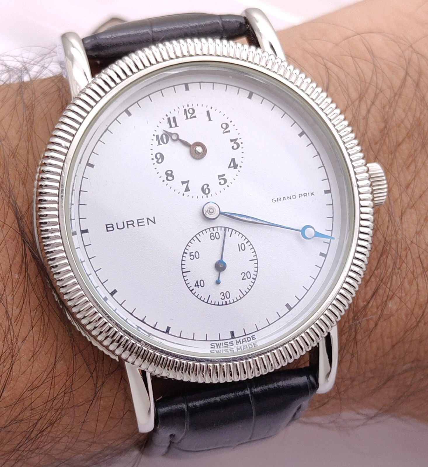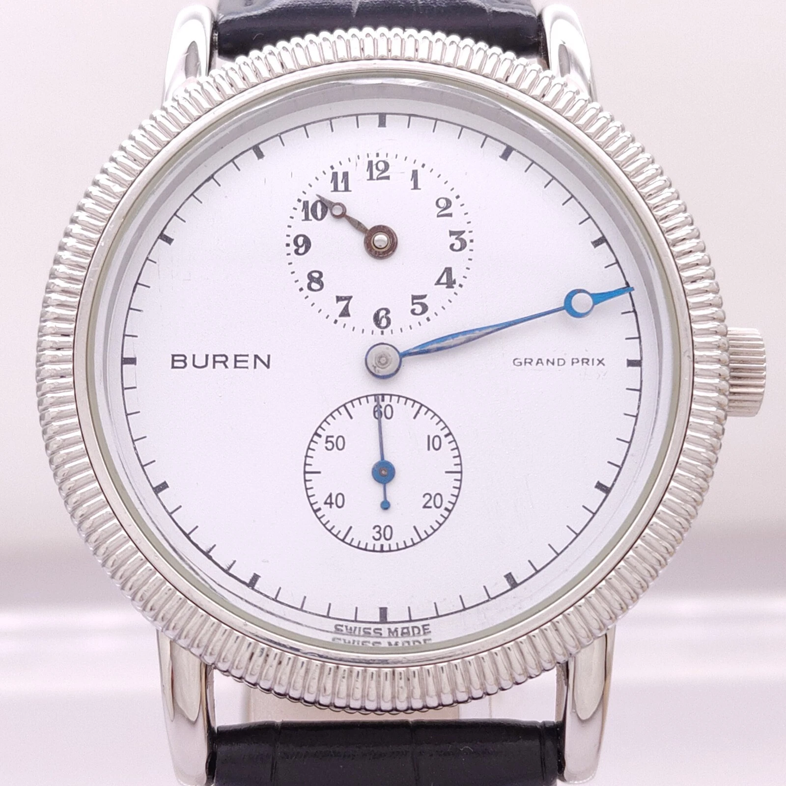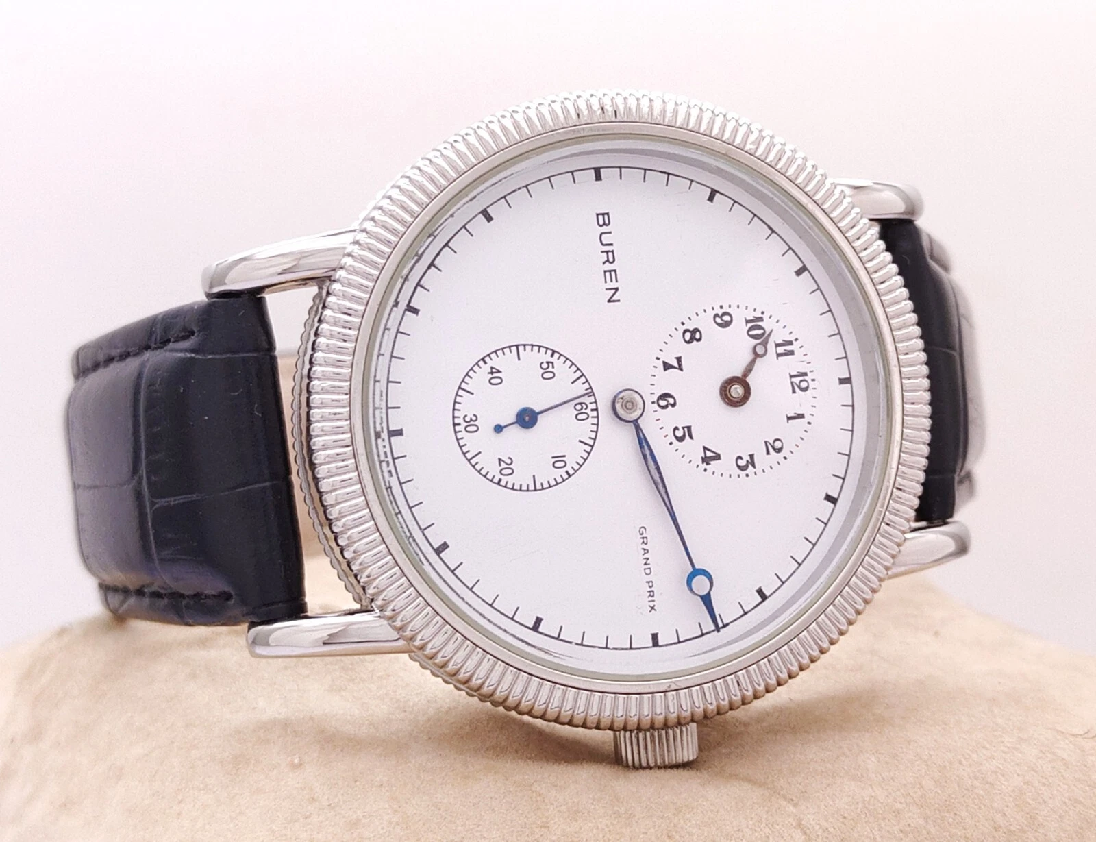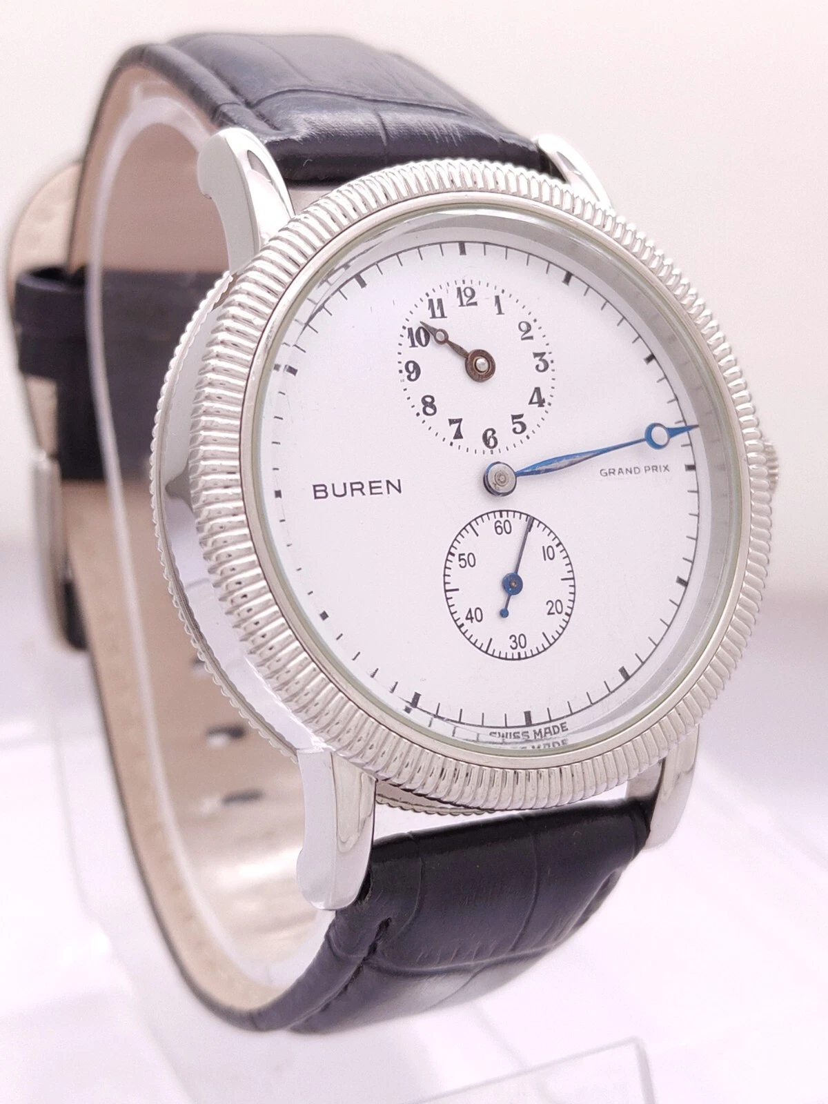 BUREN GRAND PRIX SWISS WHITE DIAL 44mm MECHANICAL VINTAGE MEN'S REGULATOR WATCH