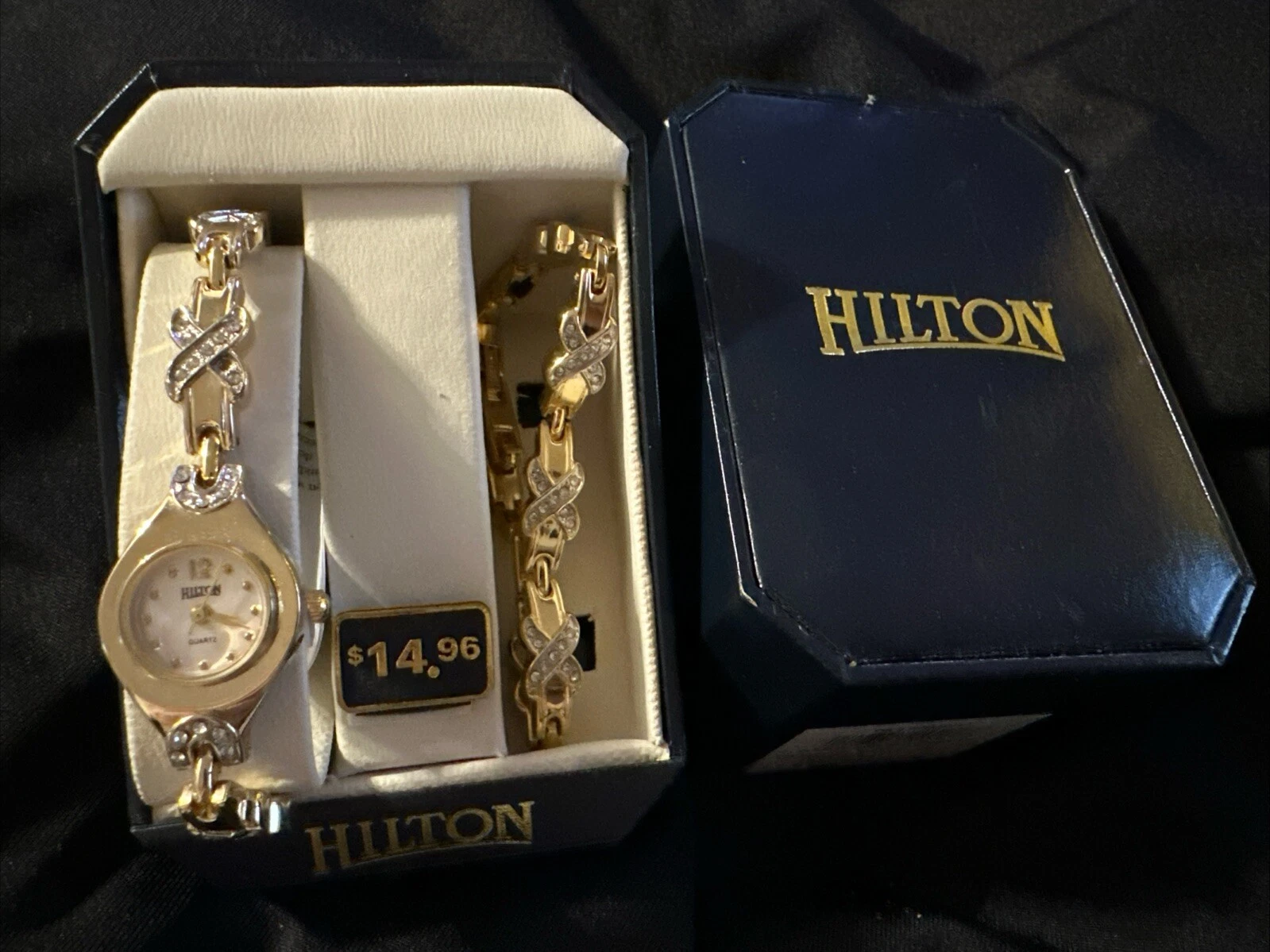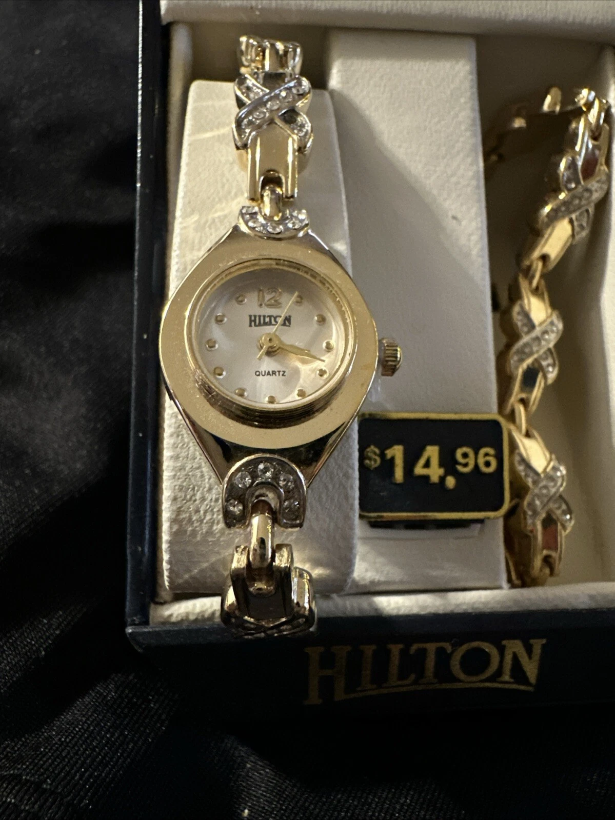 Hilton Vintage Womens Two Tone Round Dial Bracelet Watch with Bracelet New