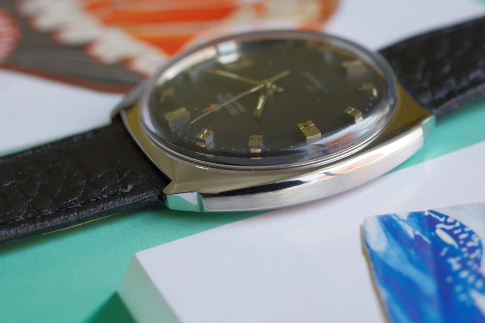 Vintage Buren Intra Matic Impact Swiss Cal. 1321 Black Dial Watch Micro Rotor