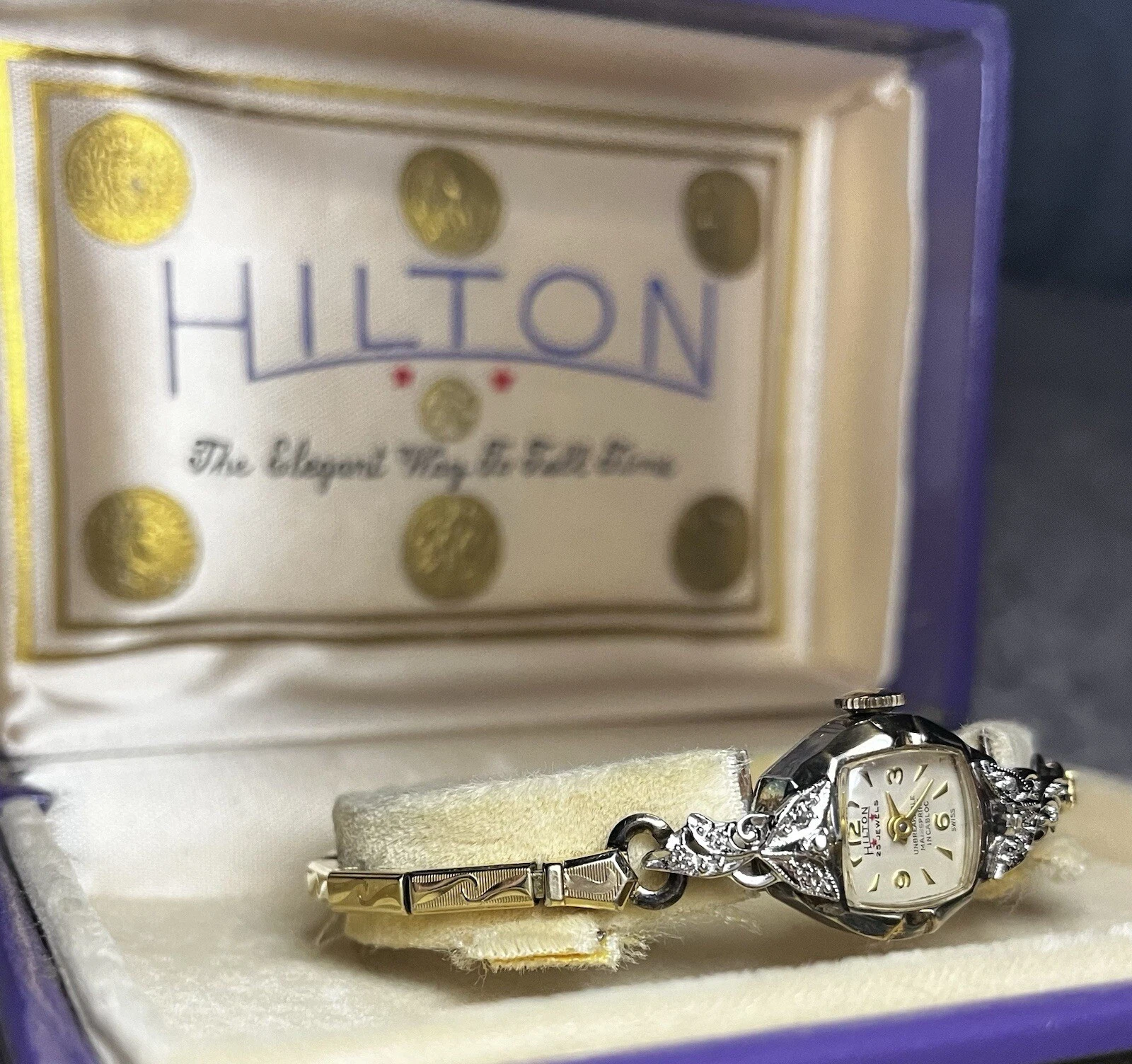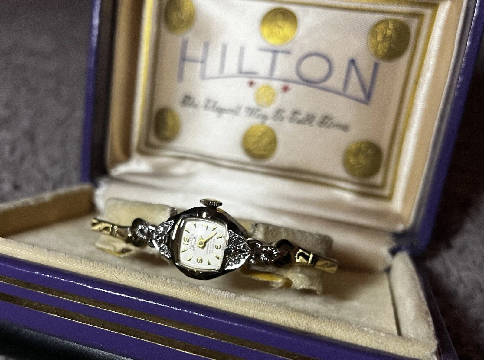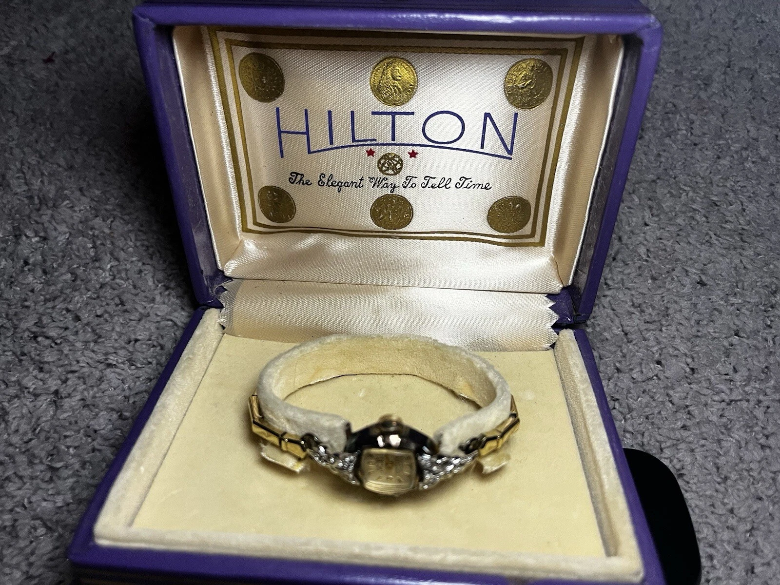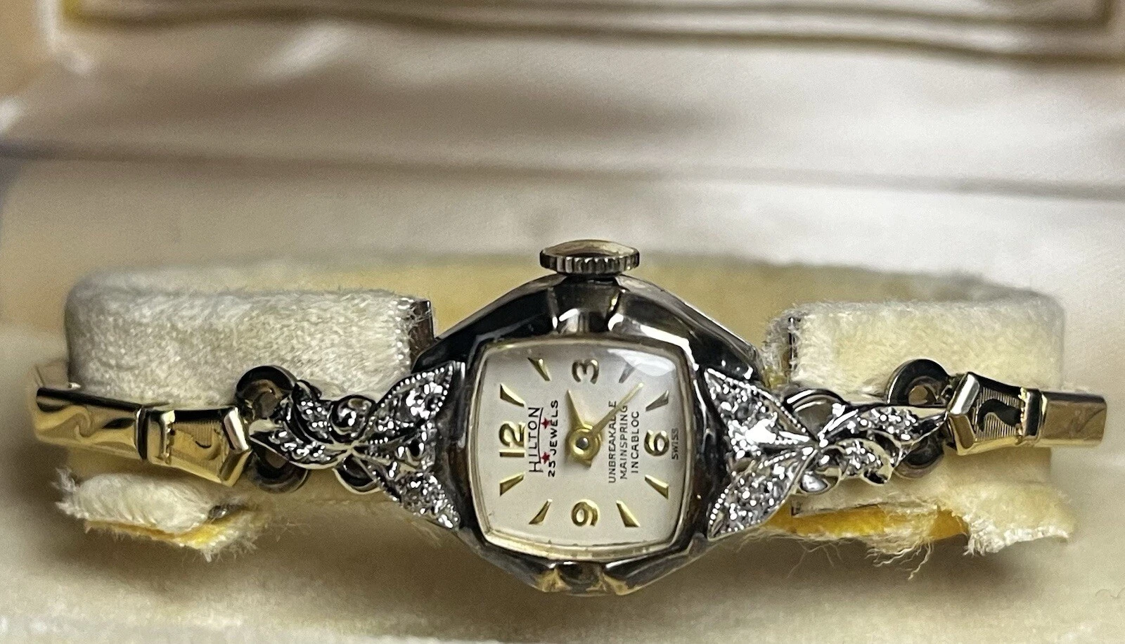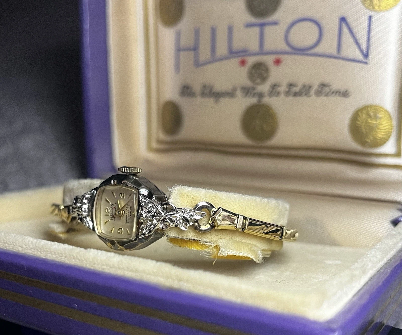 Vintage Rare Hilton 14k Gold Women’s Watch With Diamonds Comes In ORIGINAL box