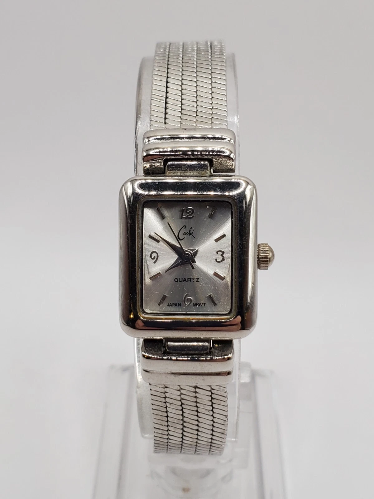 Cache Ladies Fashion Quartz Watch 18mm Rectangle Silver Tone Bracelet Band