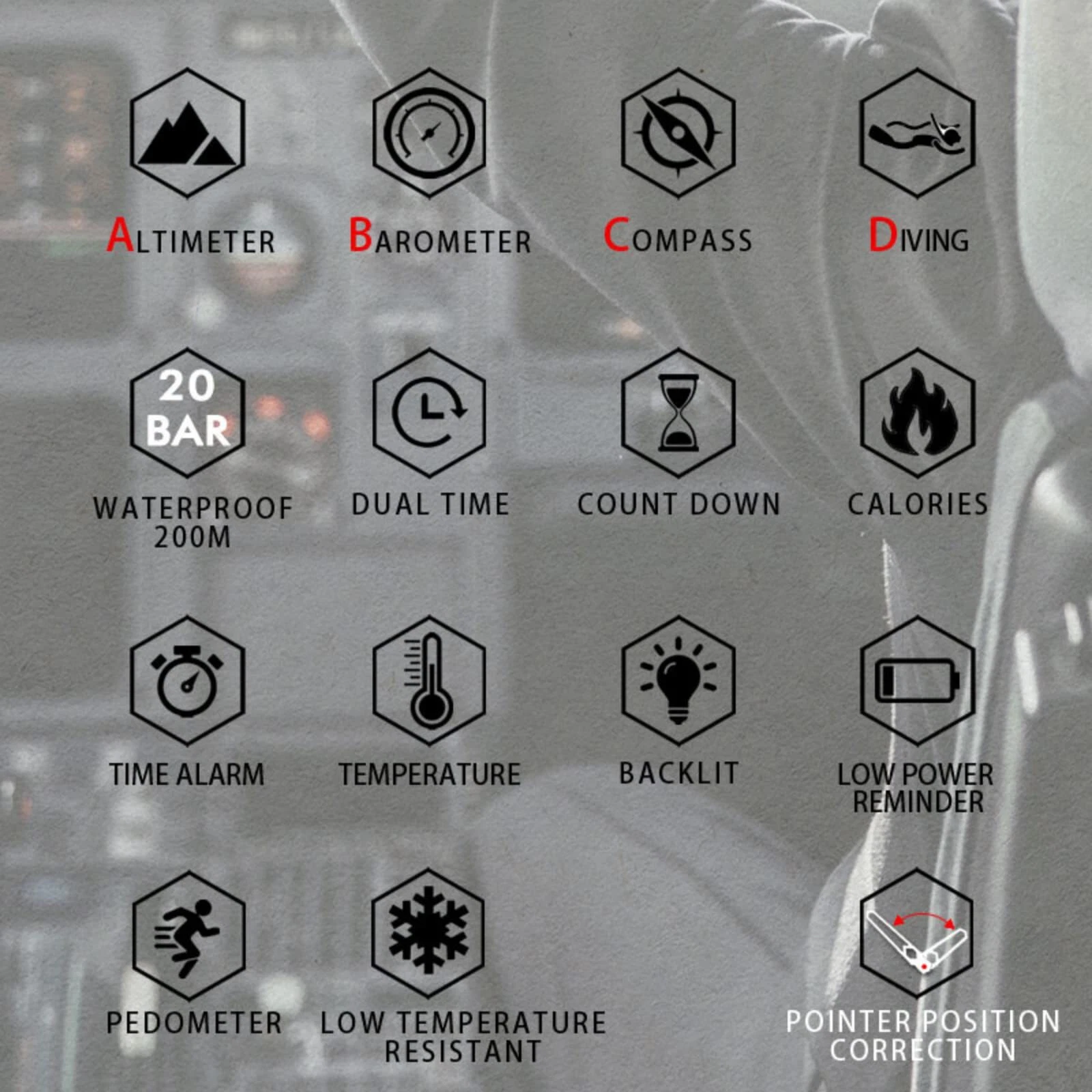 Pilot Watch Silicone Stainless Steel Waterproof Analog Digital Watches for Me...