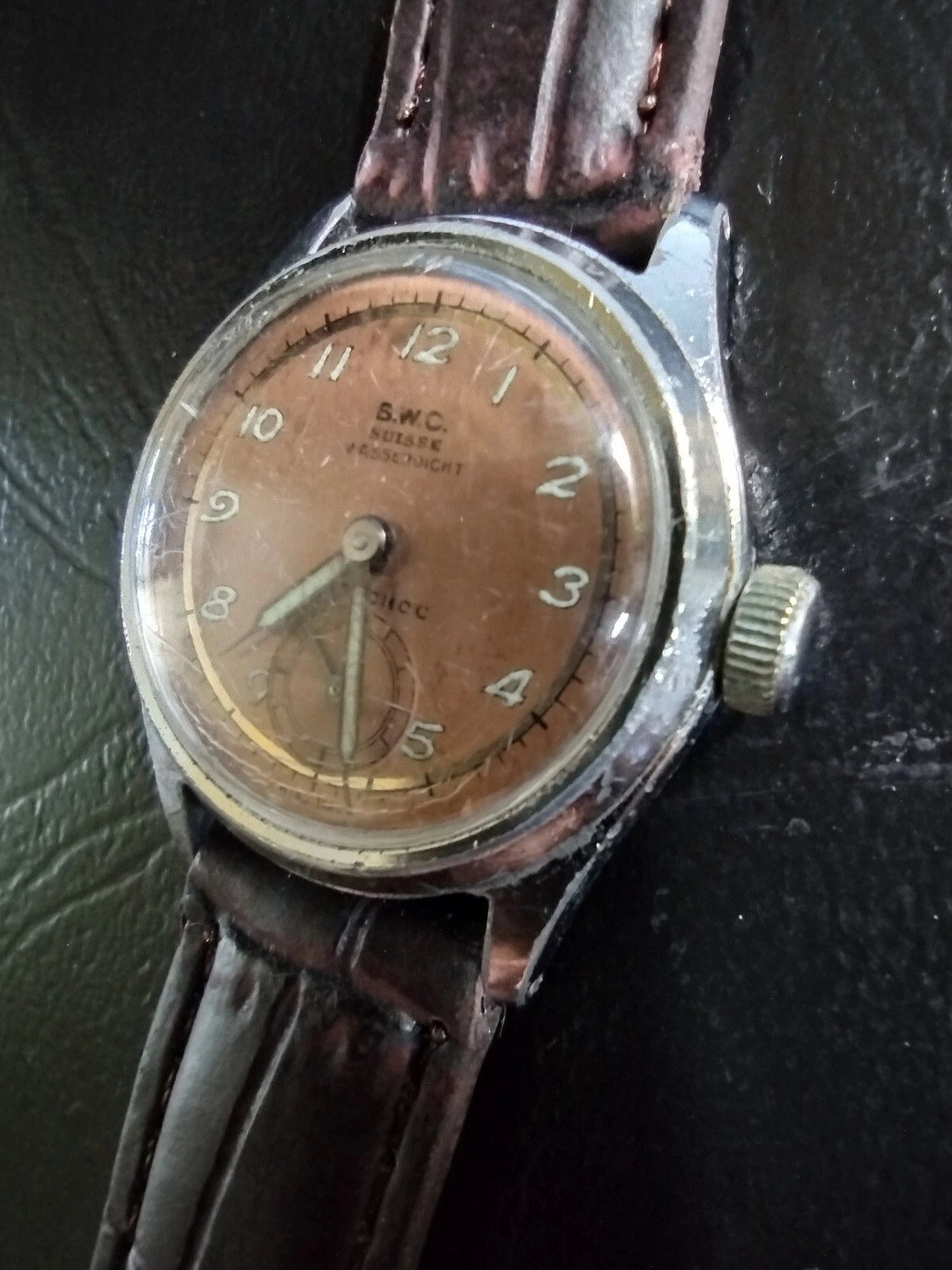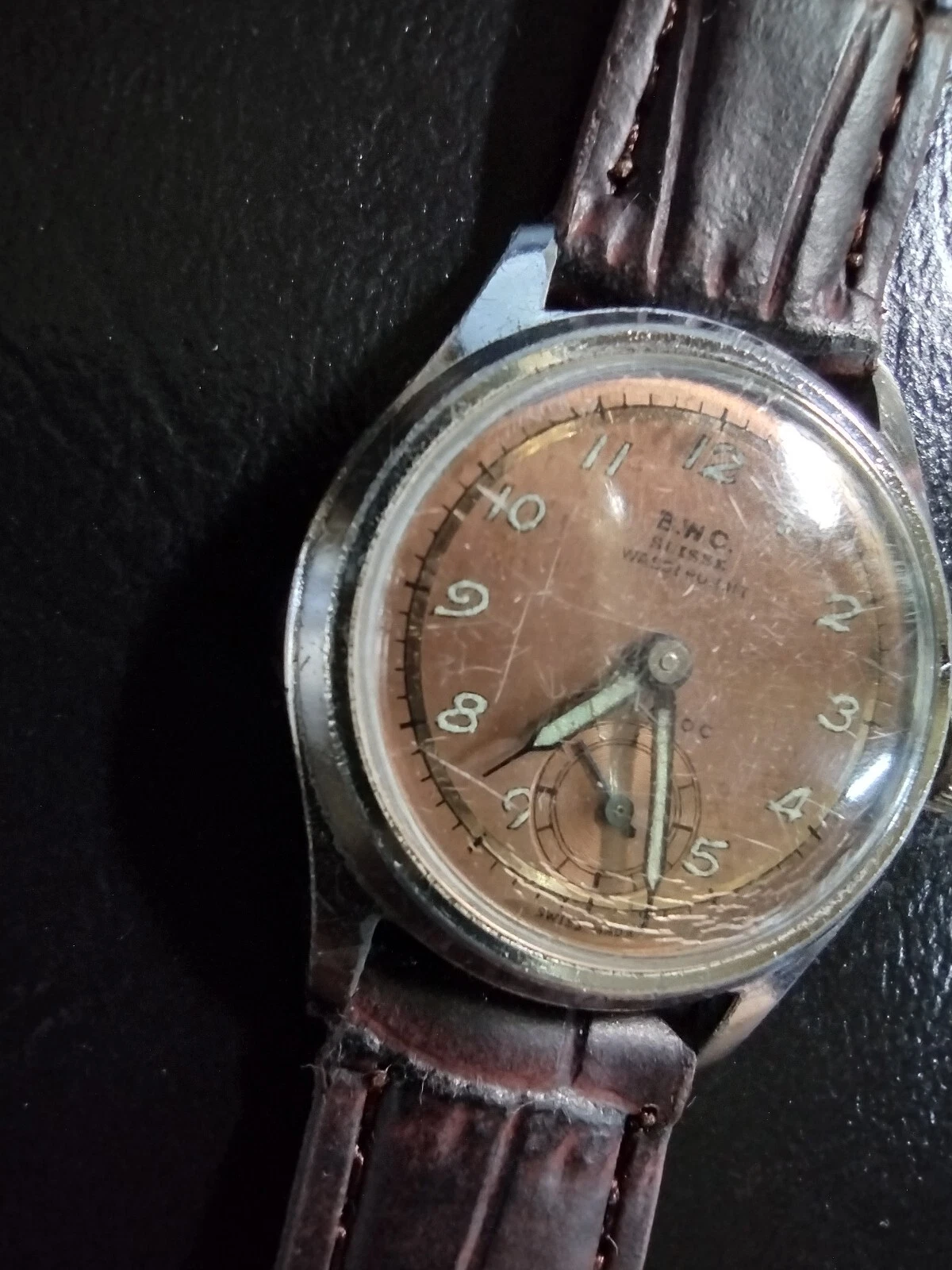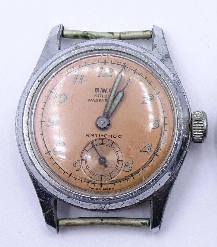 Vintage 1940s WWII BWC SUISSE ANTI-CHOC Men's Military Wristwatch Swiss Made