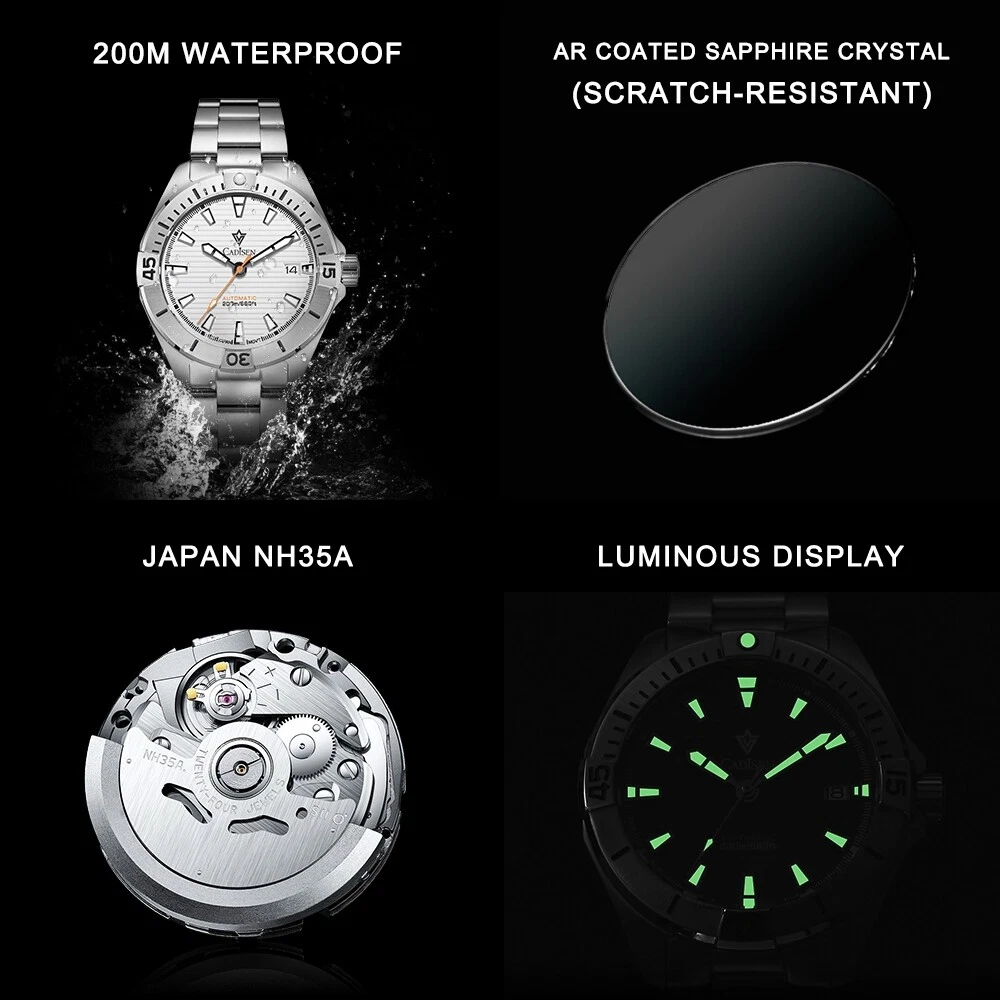 Men’s Automatic Mechanical Watches NH35A Movement Sapphire Glass 200M Waterproof