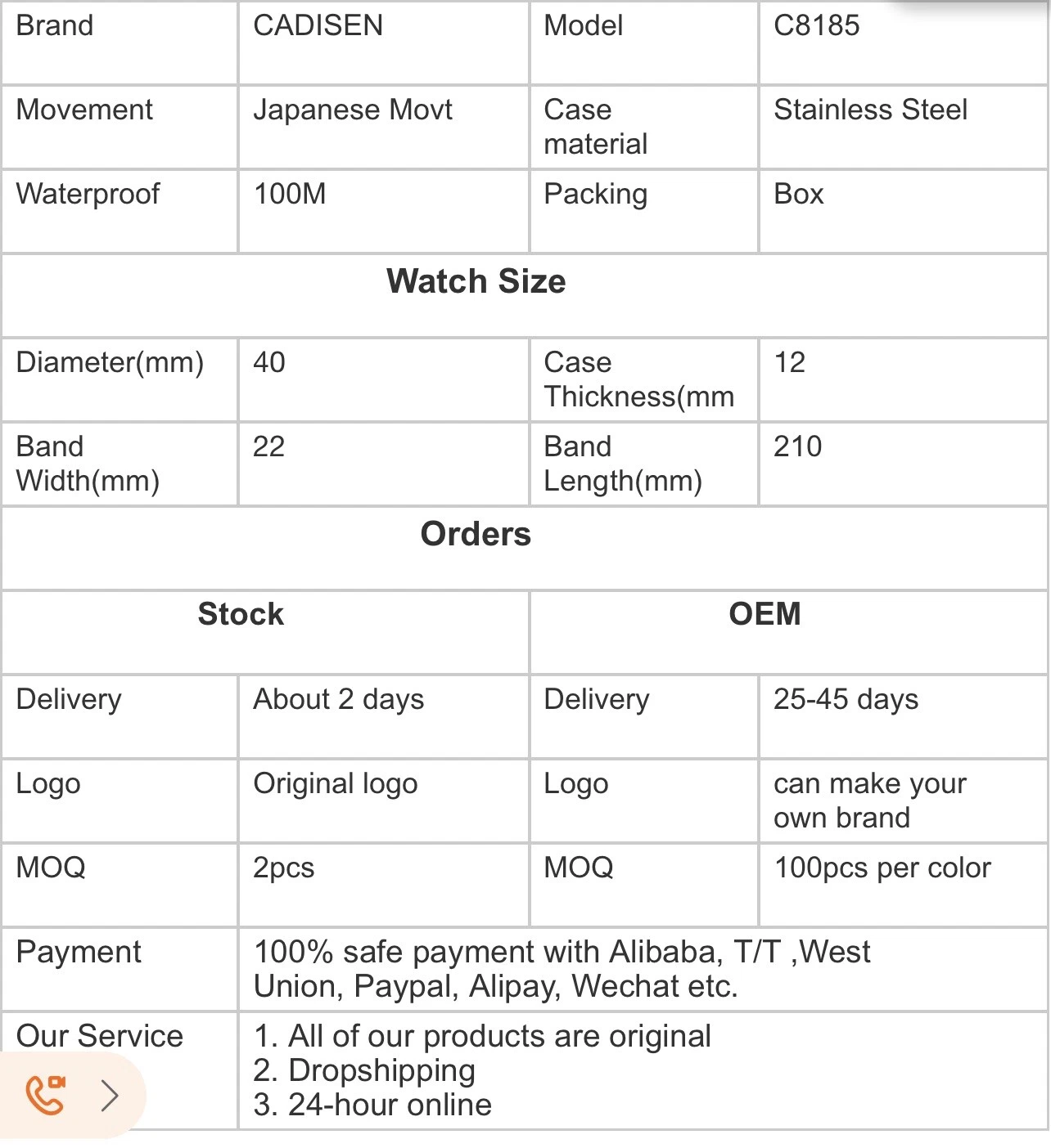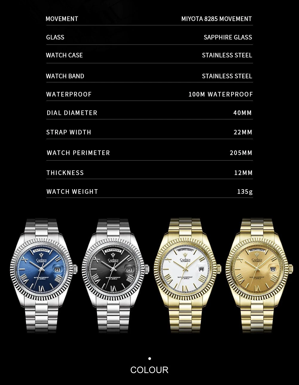 CADISEN C8185 Men's Date Just Automatic Stainless Steel 100M Waterproof Watch