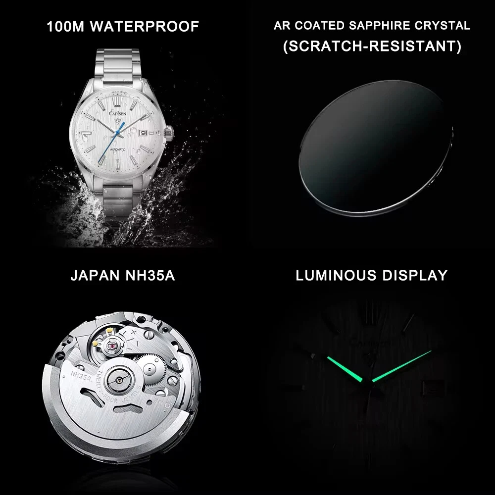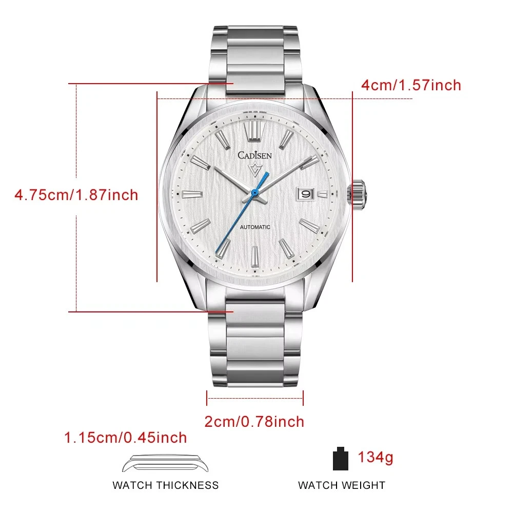 CADISEN Luxury Mens Watches Stainless Steel Automatic Watch for Men Luminous