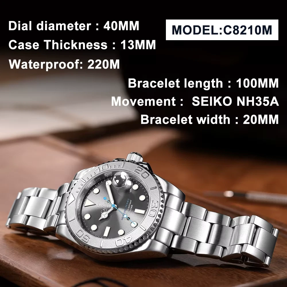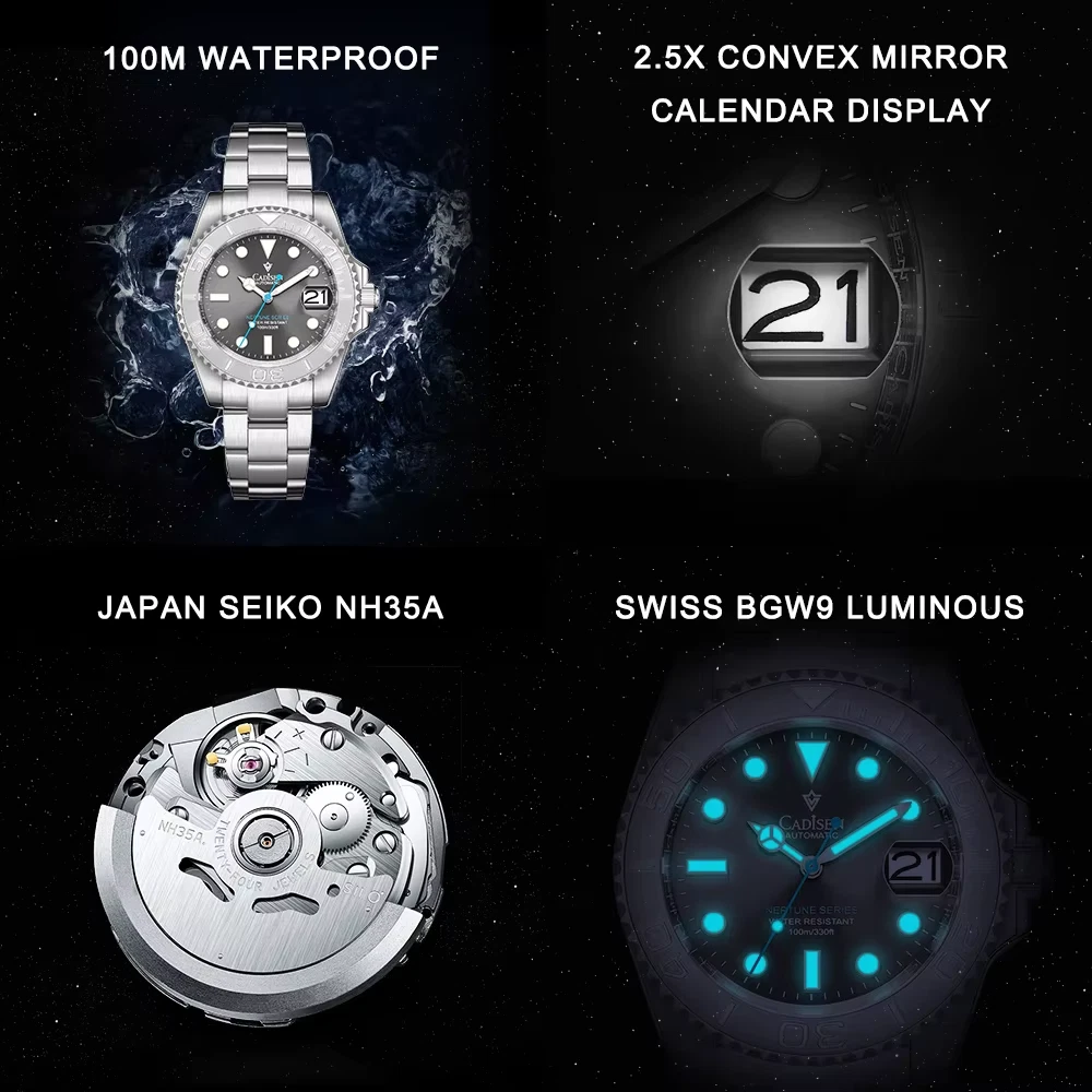 CADISEN Automatic Watch Men Neptune Series Stainless Steel Sapphire NH35A 10ATM