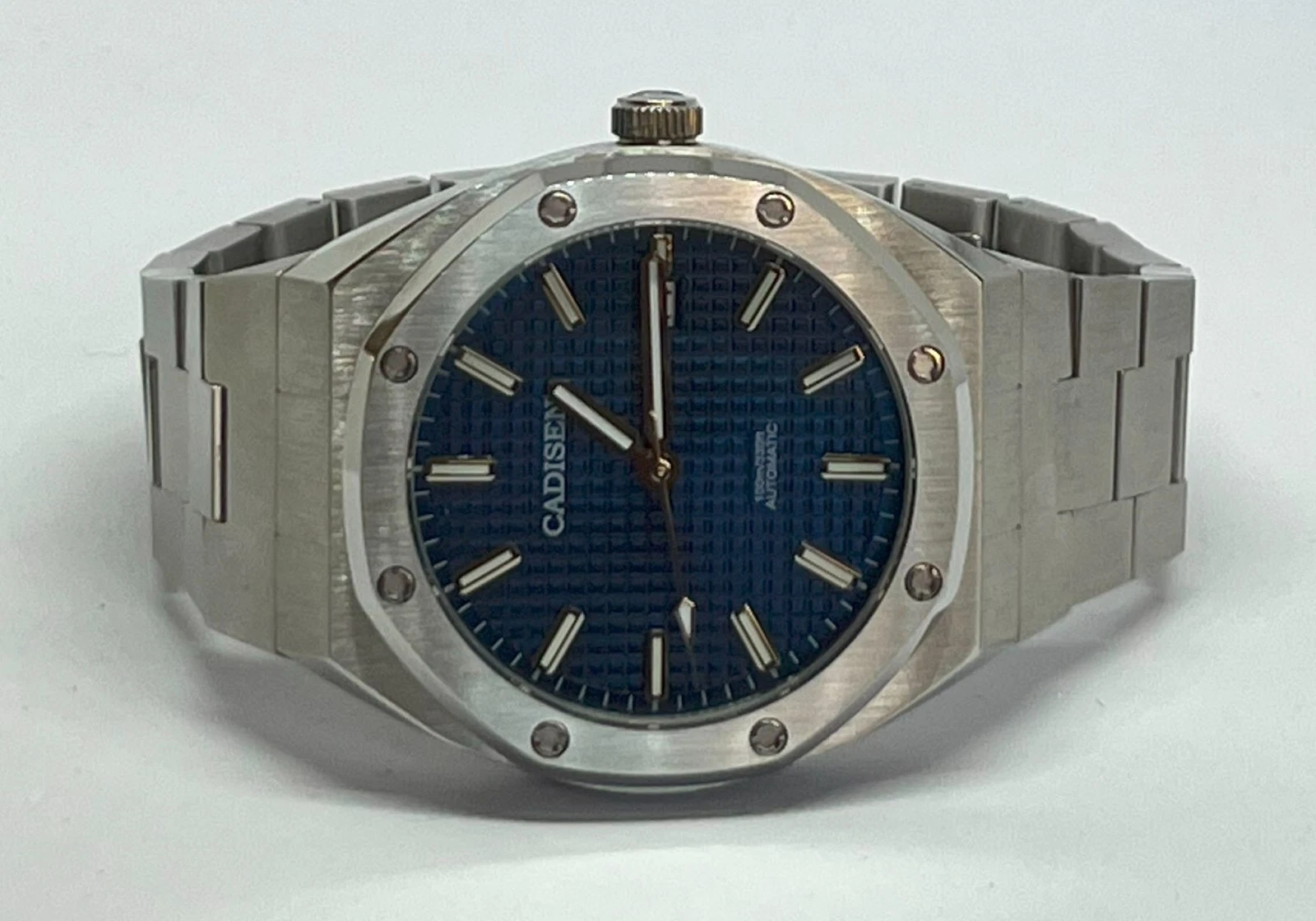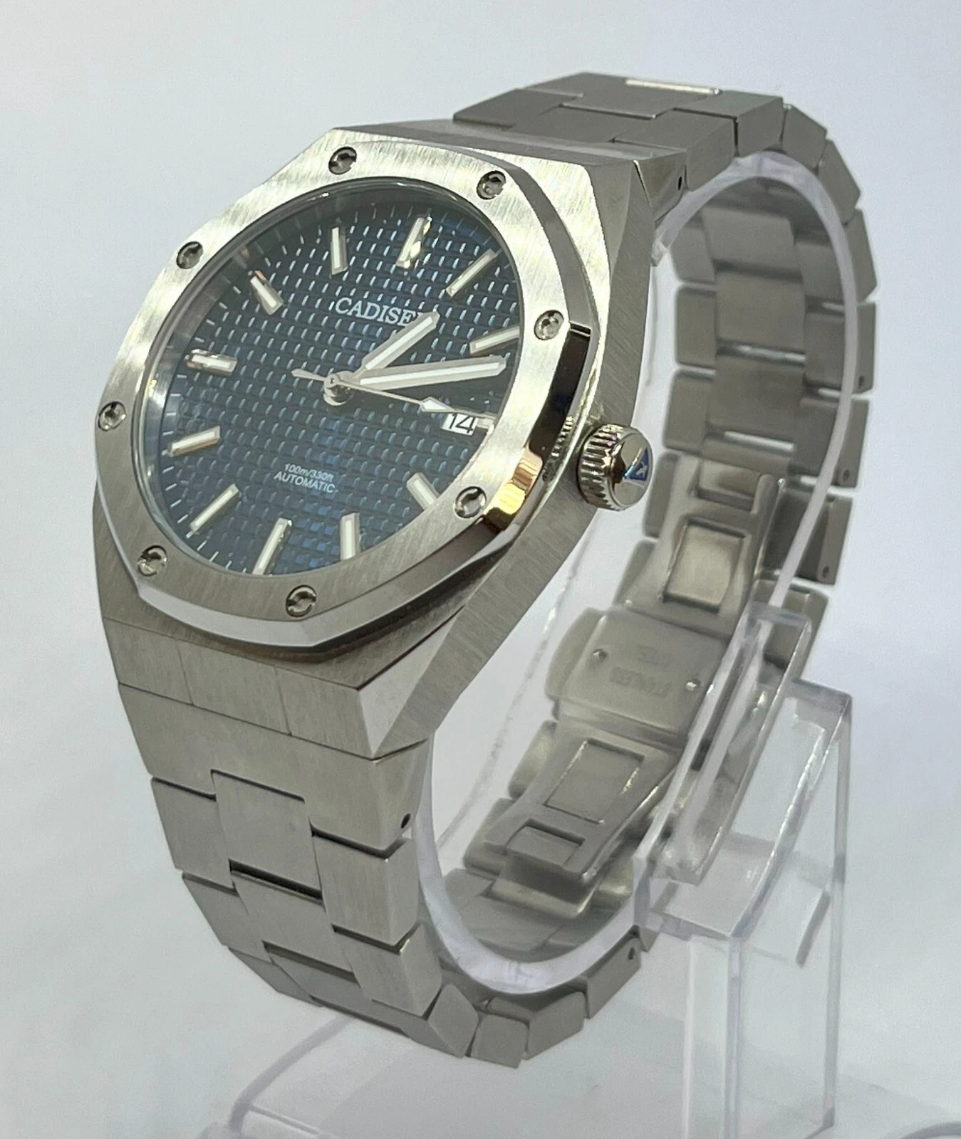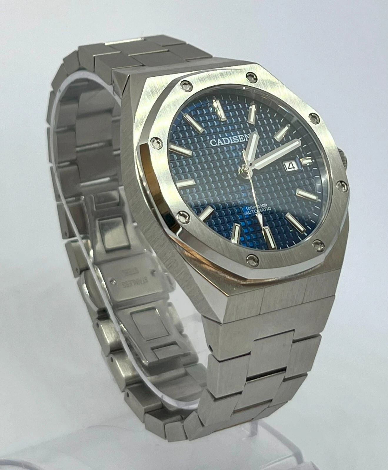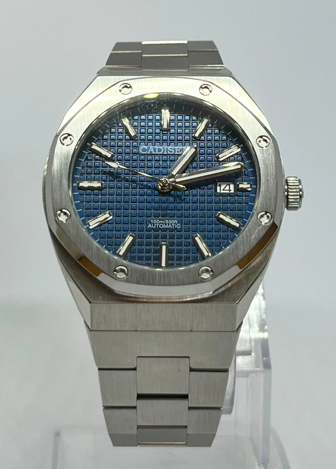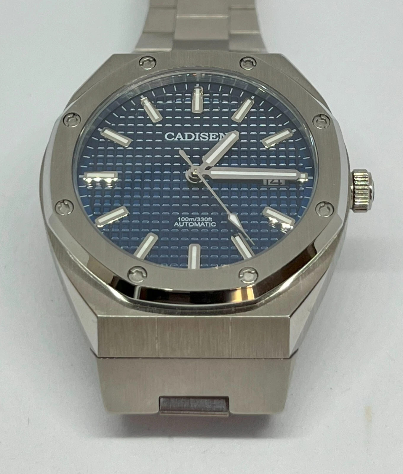 Cadisen 42mm Mens Auto SS Watch NH35, Sapphire, 100m WR, Waffle Dial