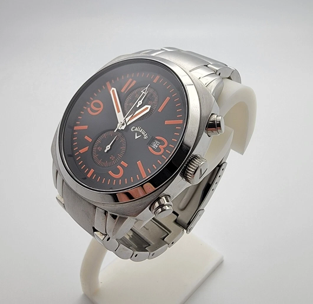 Men's Callaway CY2145 Stainless Calendar Chronograph Black/Orange Quartz Watch