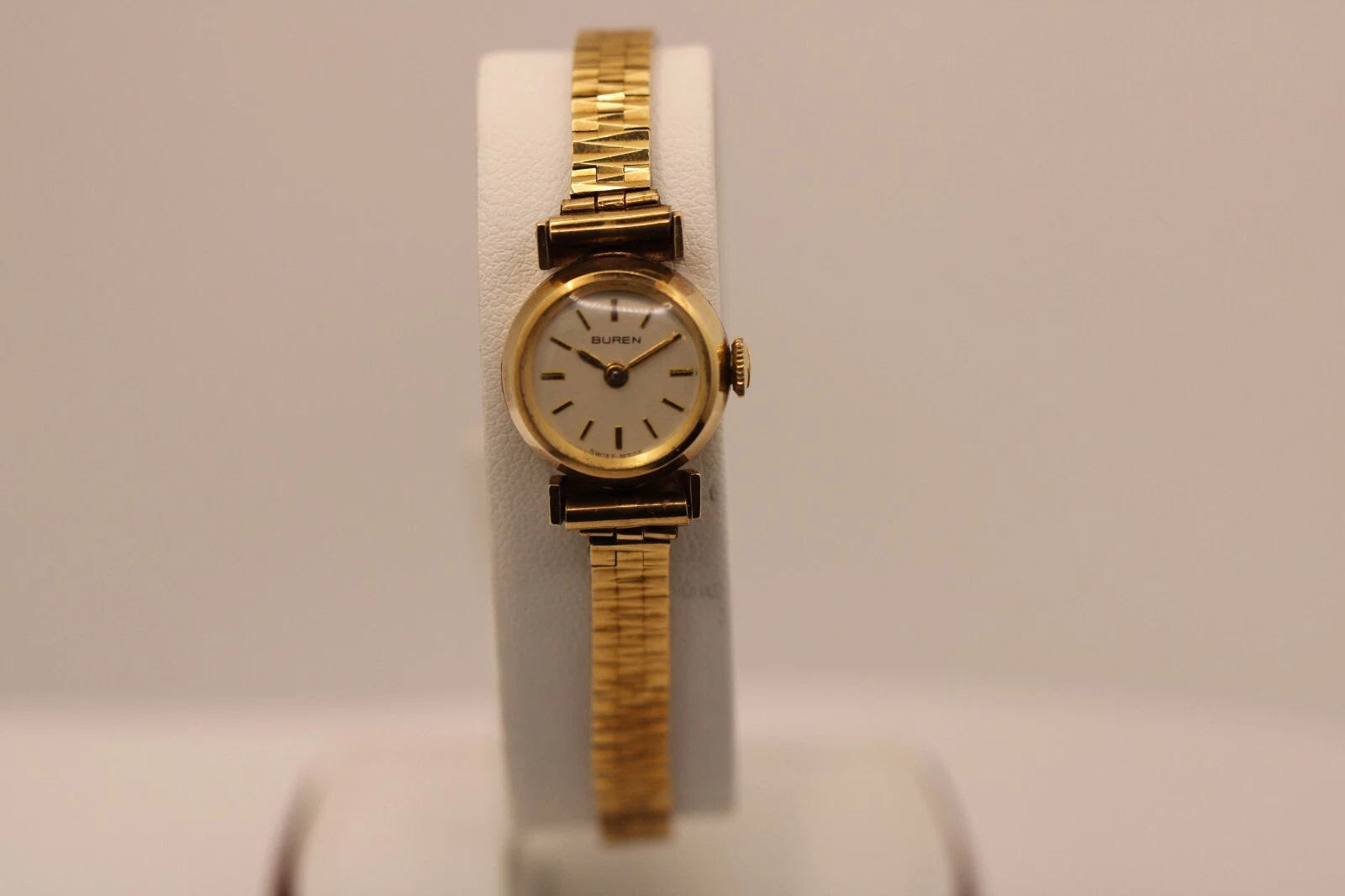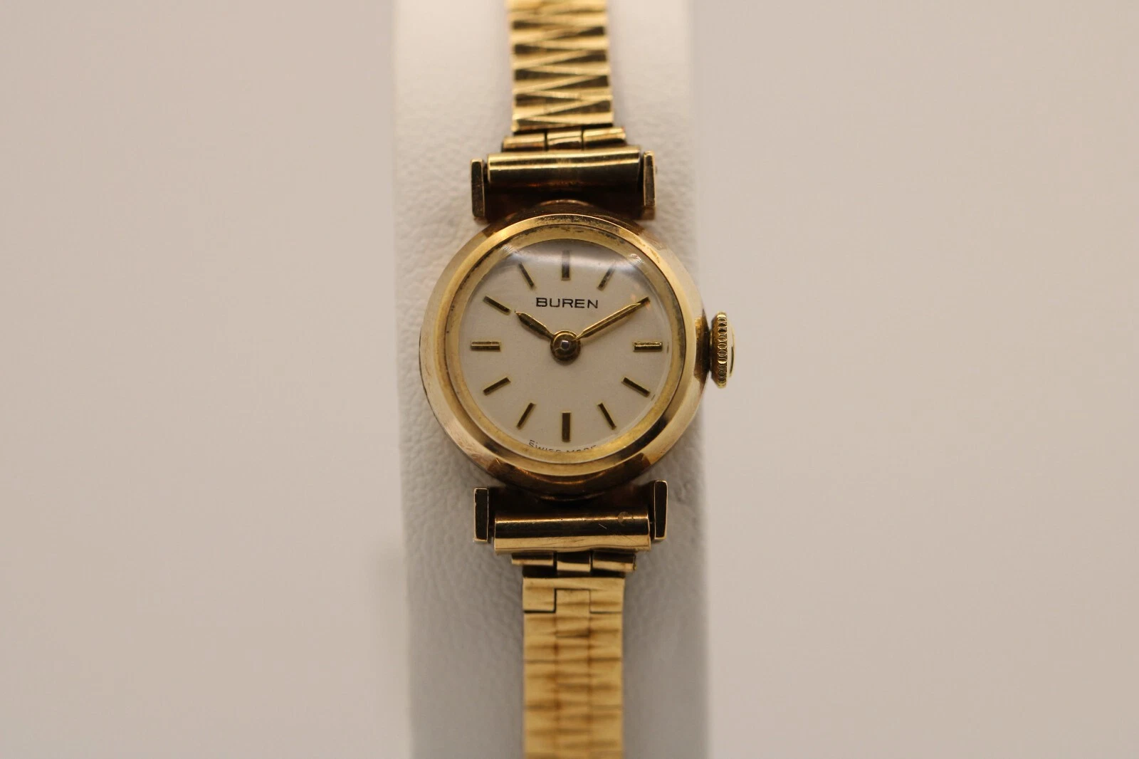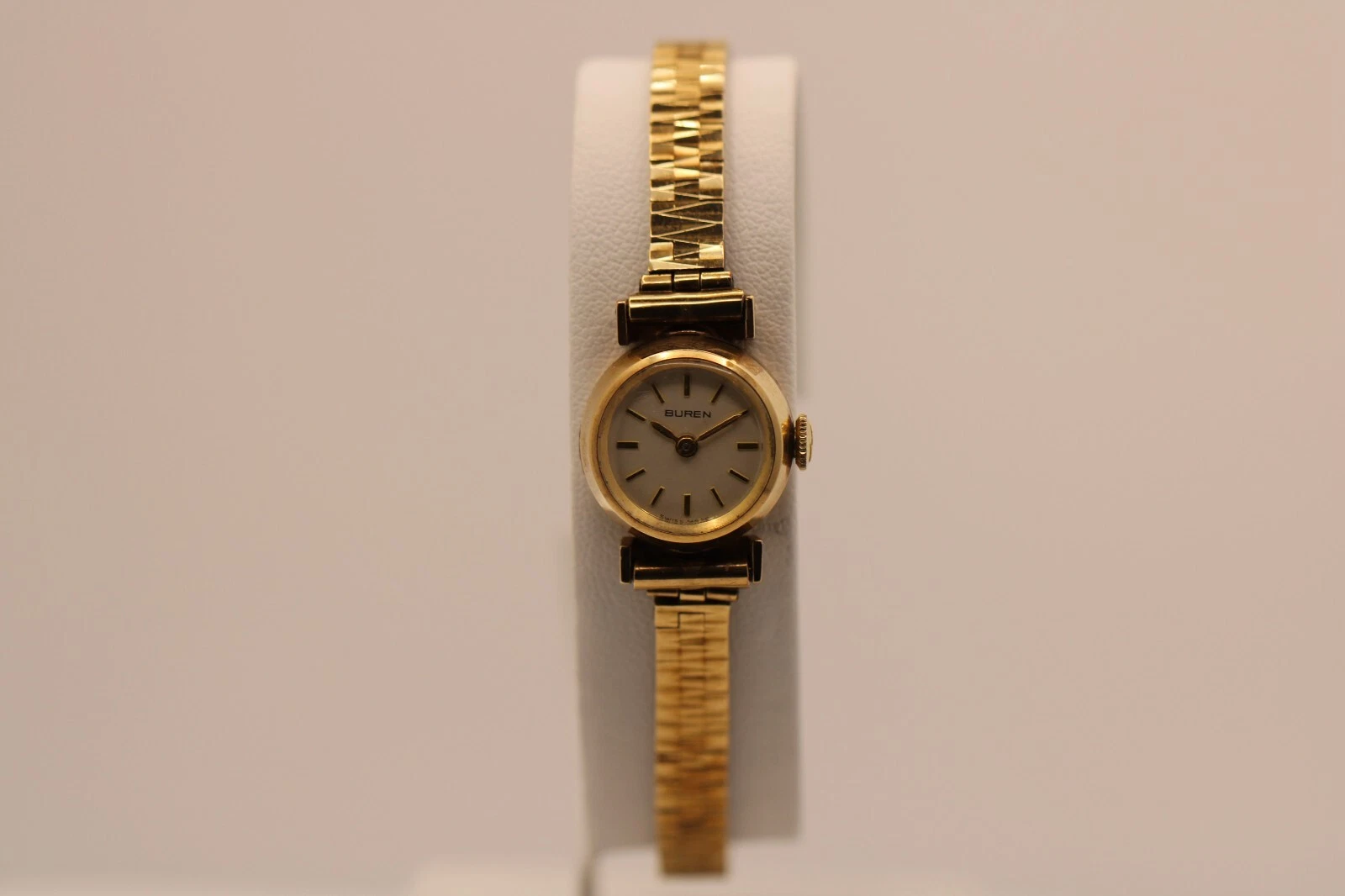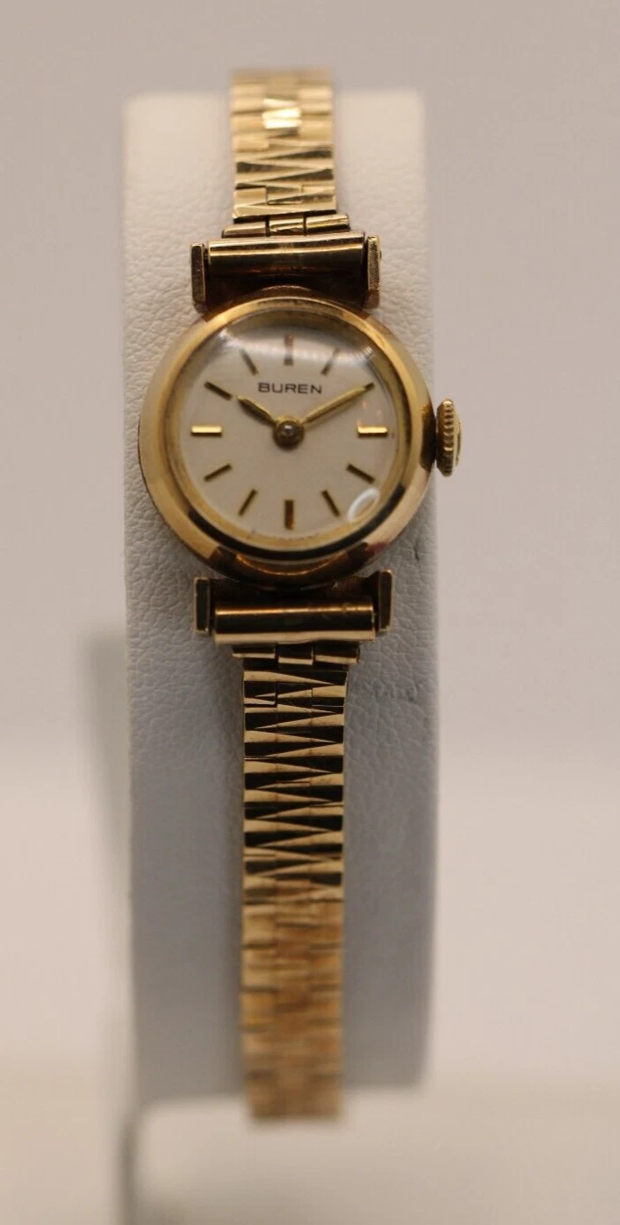 9k Yellow Gold Ladies Buren Mechanical Watch w/ Box & Papers