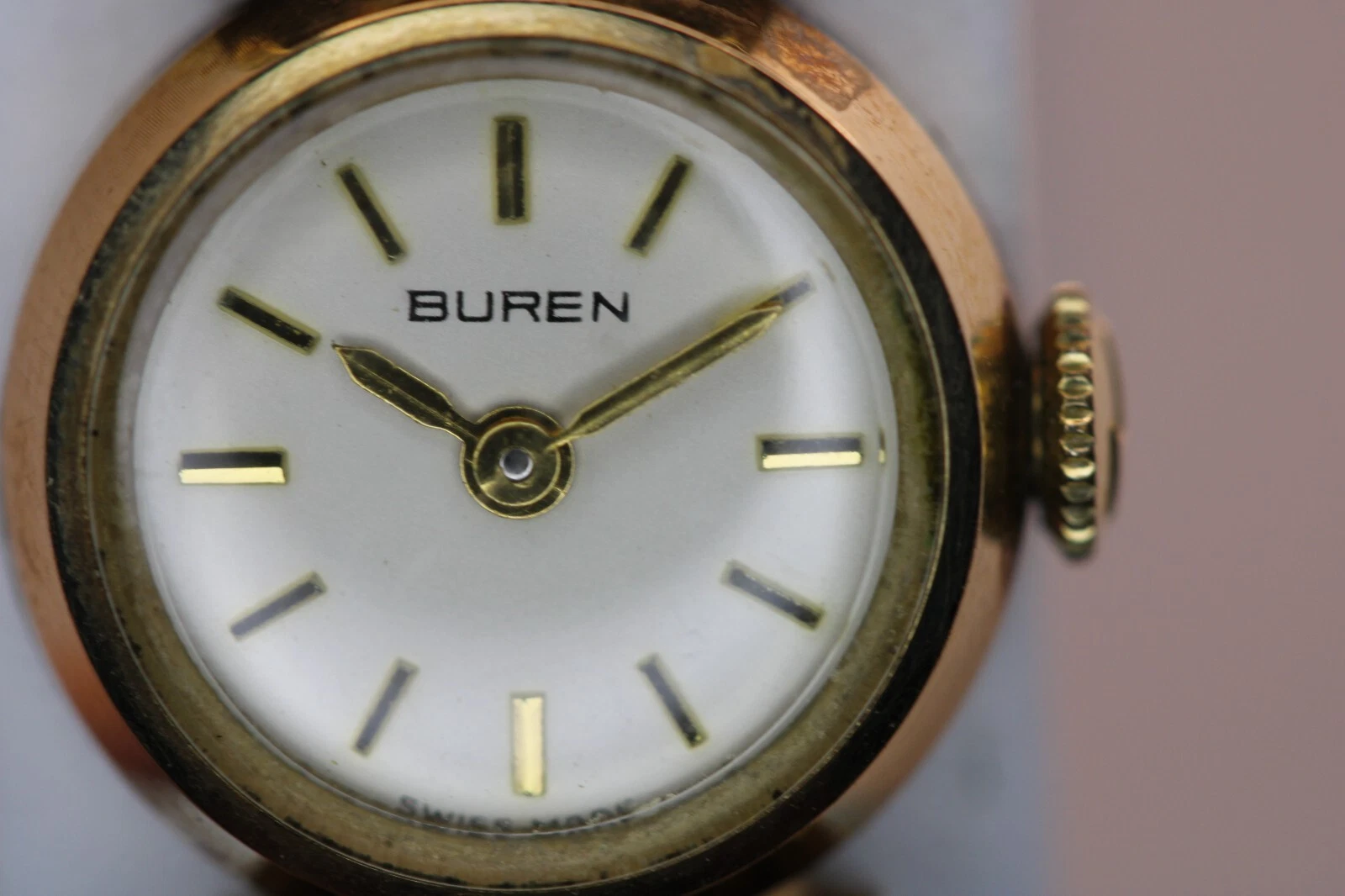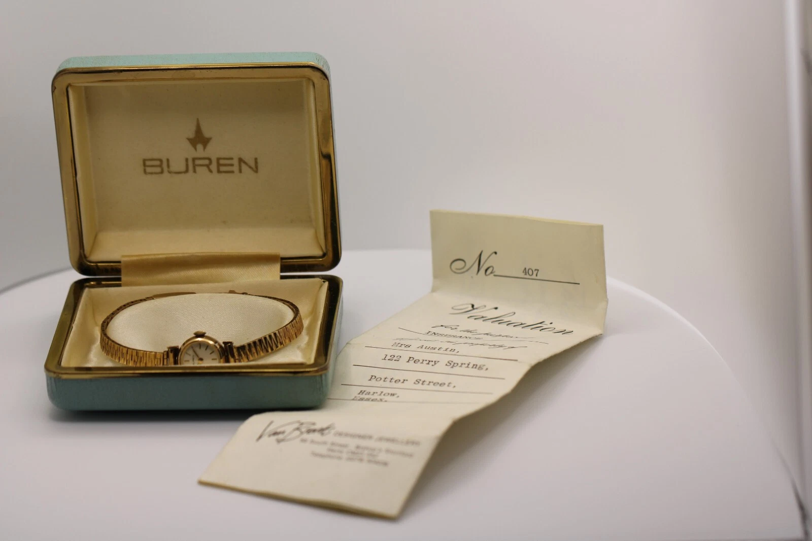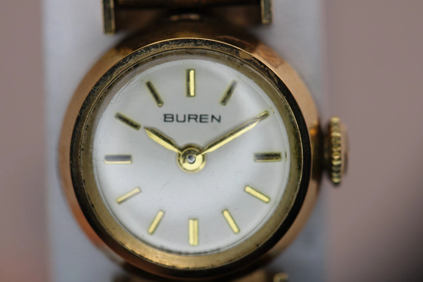 9k Yellow Gold Ladies Buren Mechanical Watch w/ Box & Papers