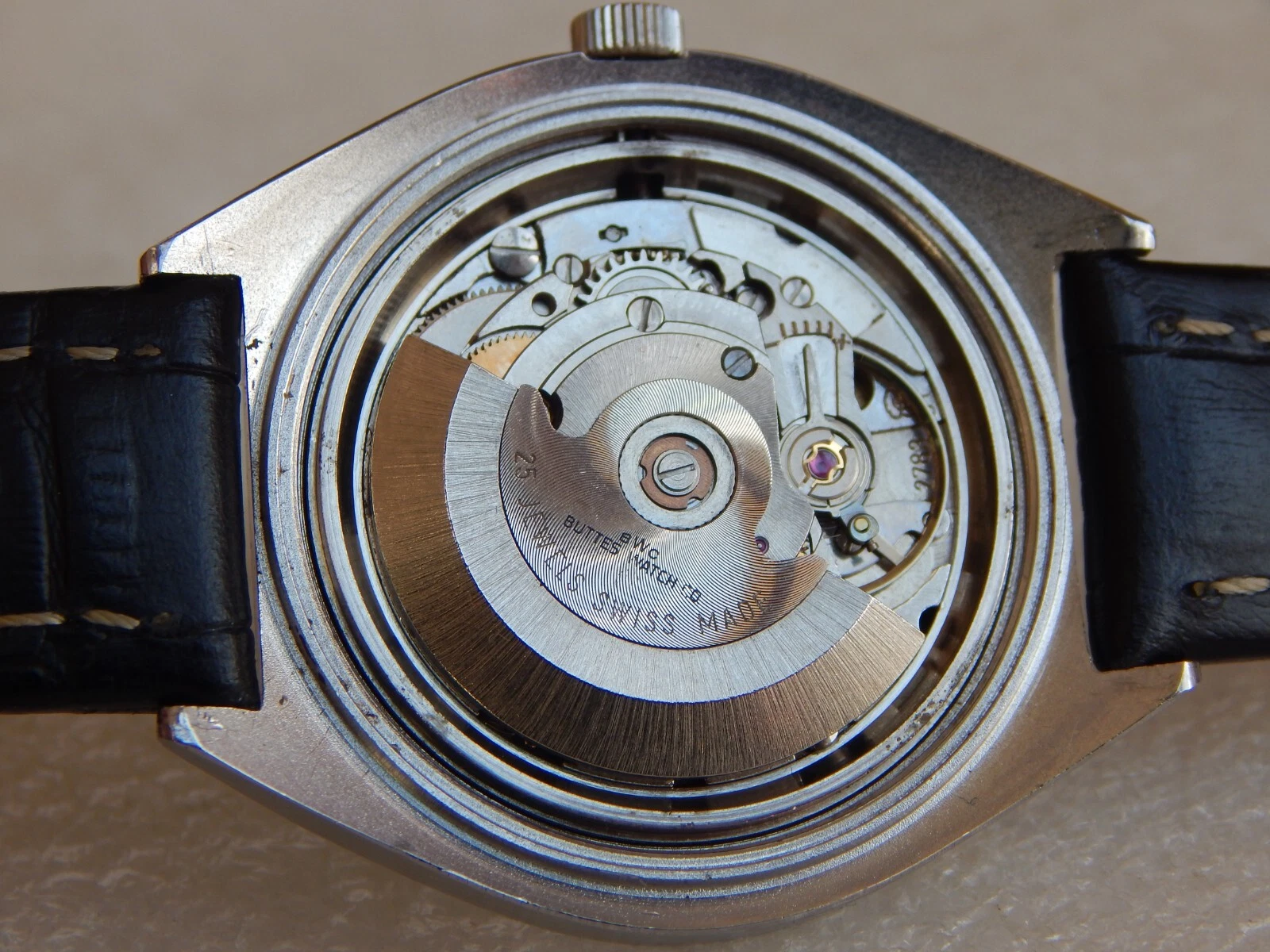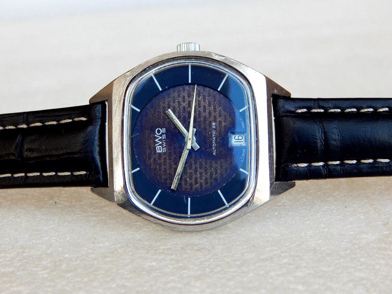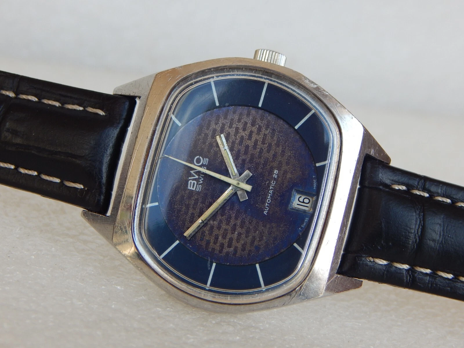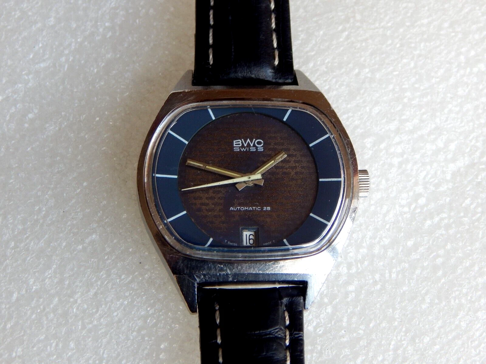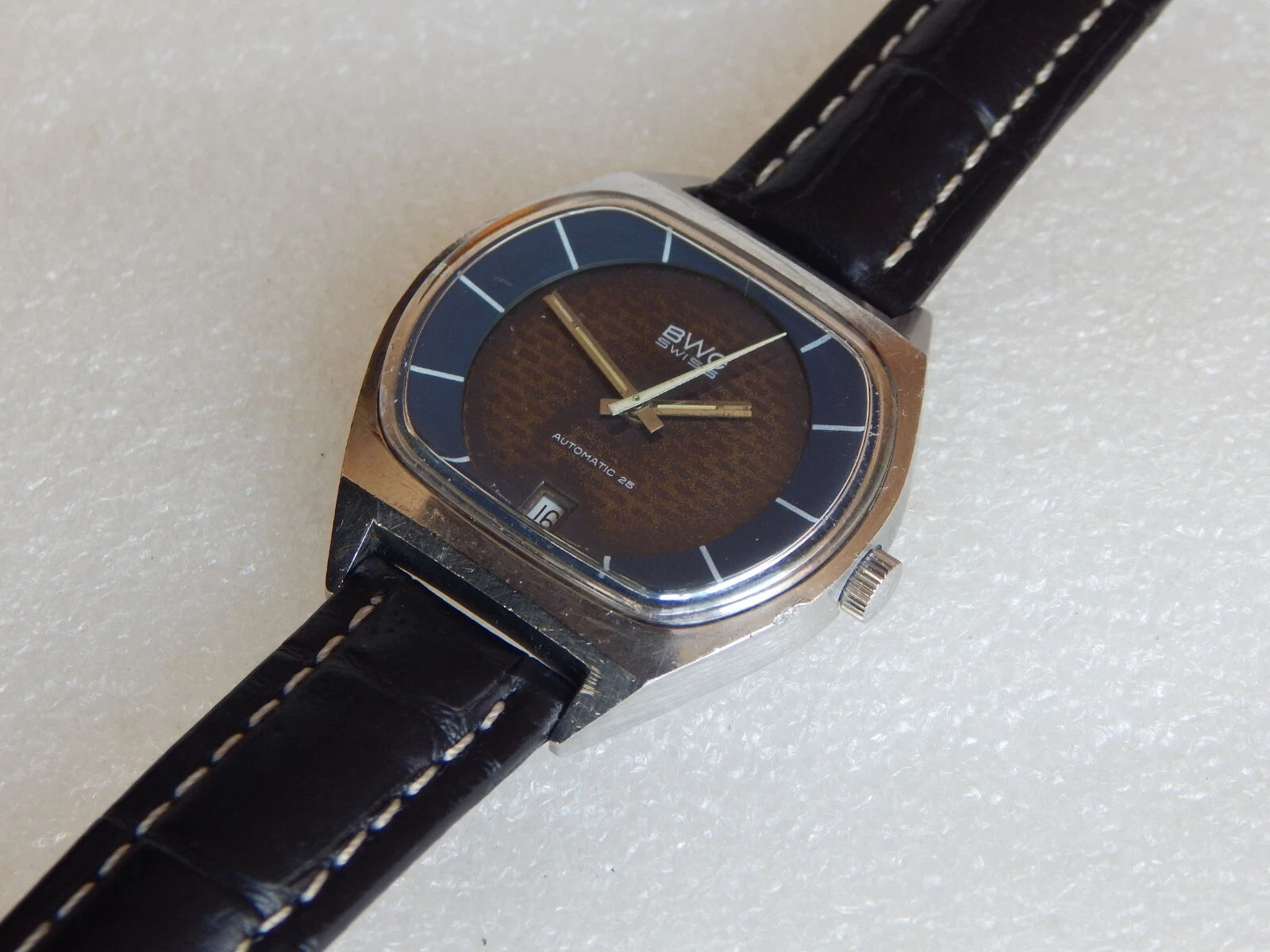 Vintage TV Jumbo Watch BWC Swiss Automatic ETA 2789 date Men's  All Steel Case