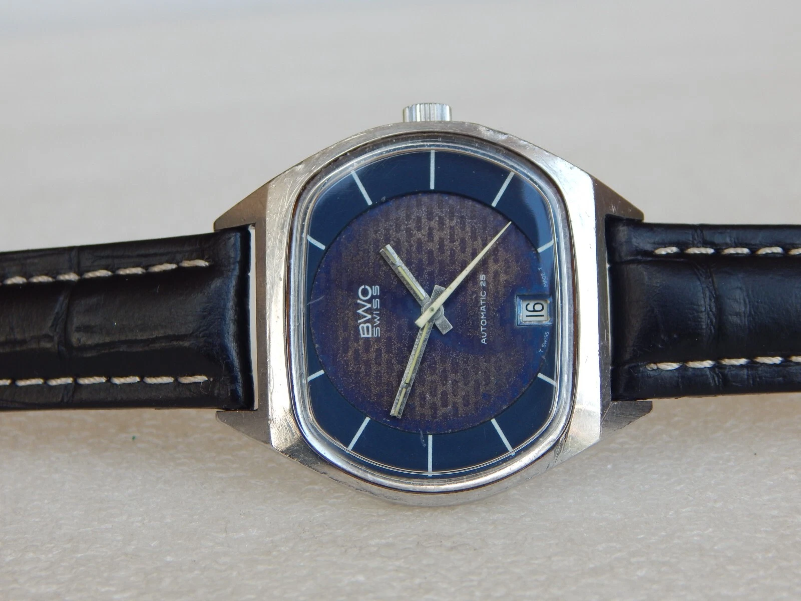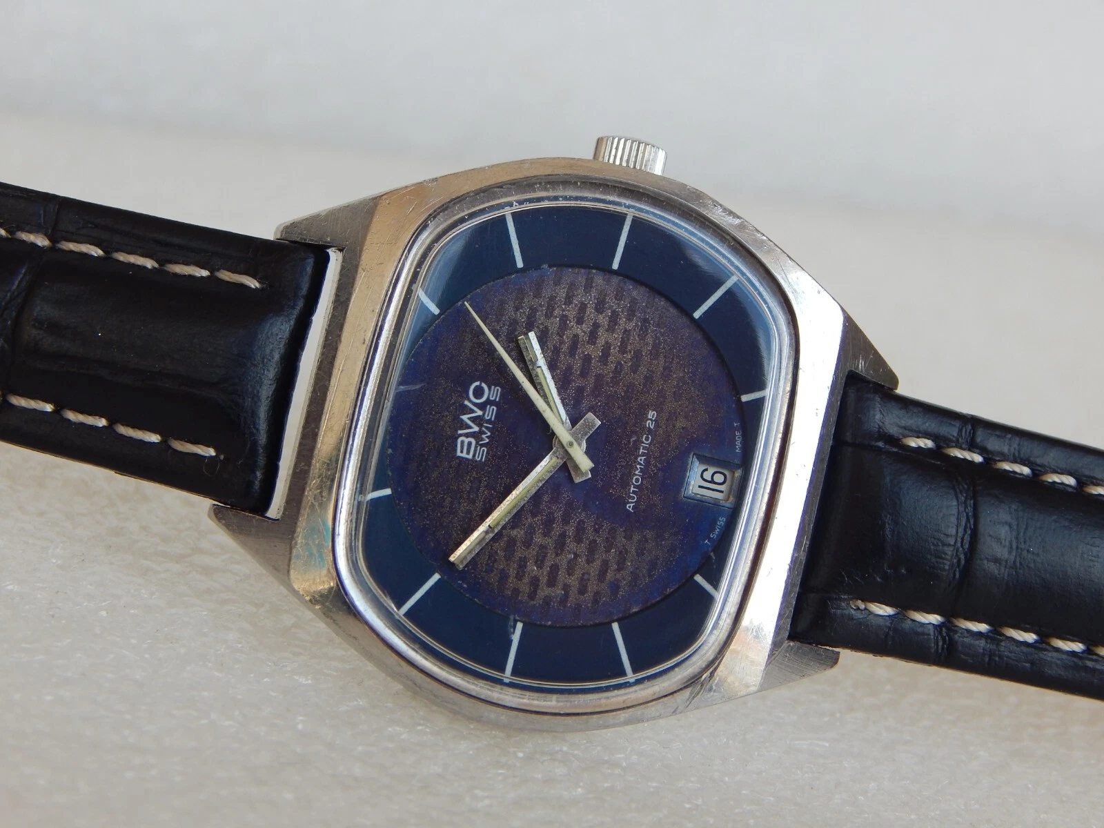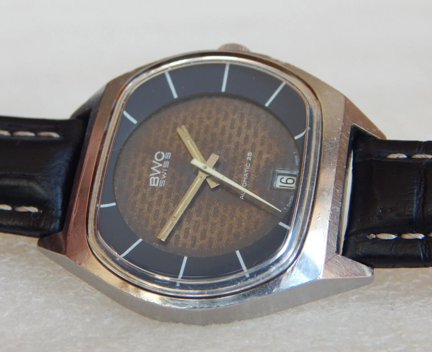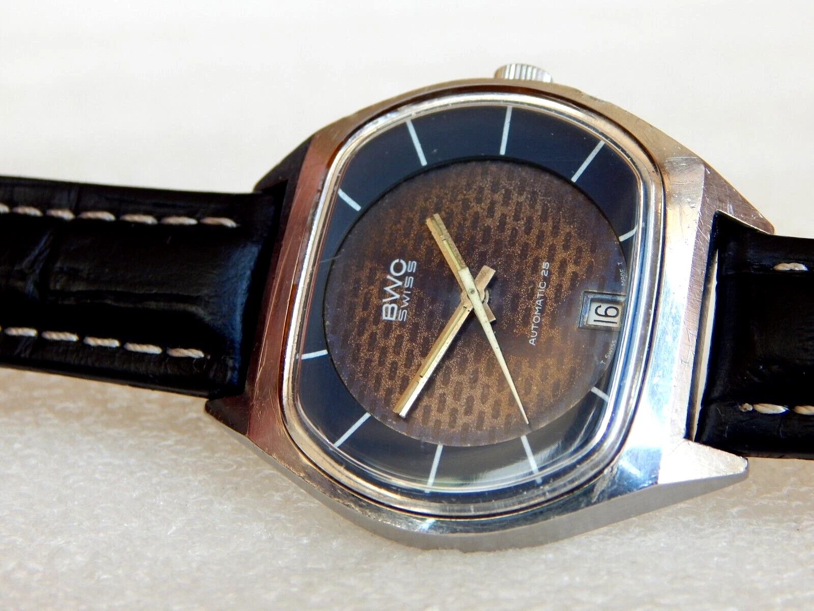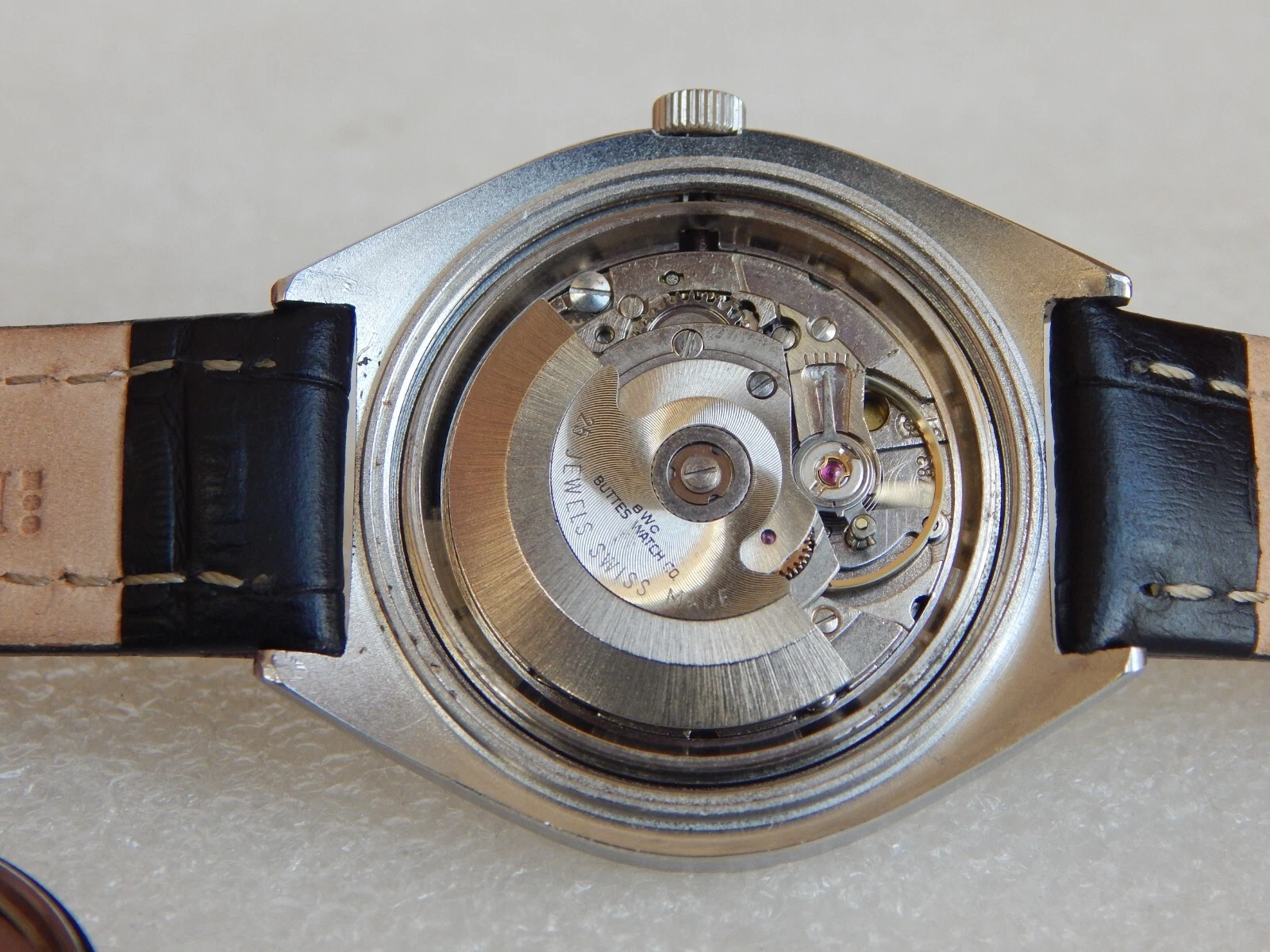 Vintage TV Jumbo Watch BWC Swiss Automatic ETA 2789 date Men's  All Steel Case