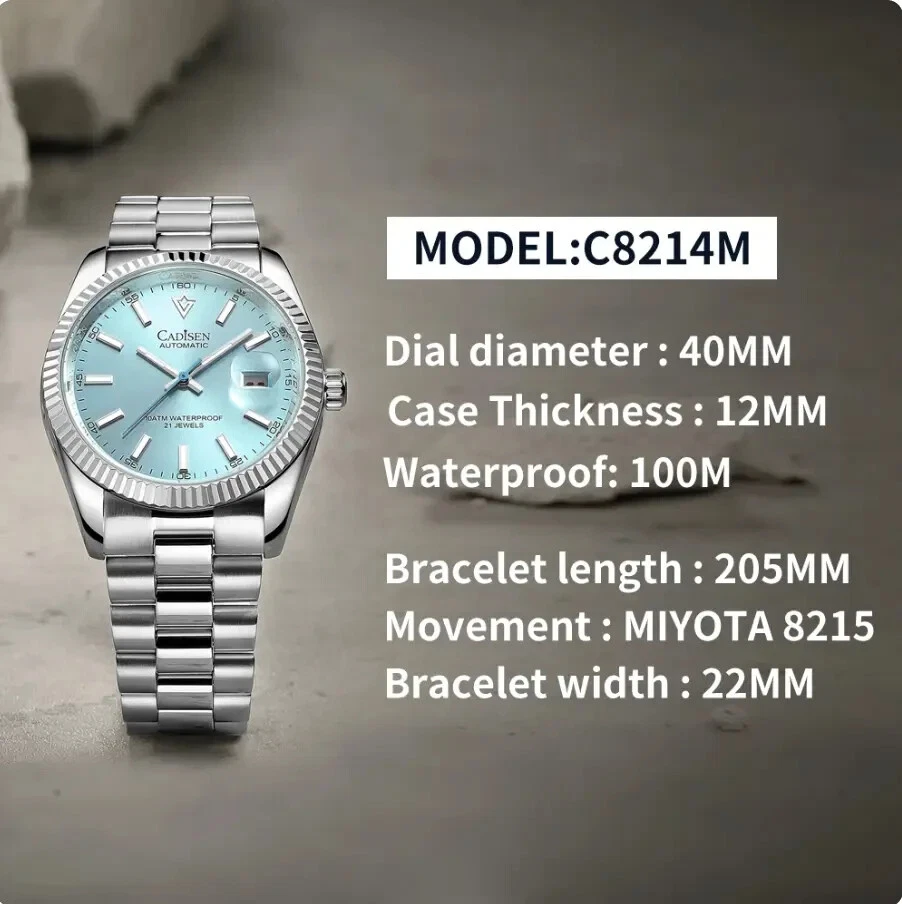 CADISEN Men's Watch Automatic Stainless Steel Sapphire Glass Waterproof Luminous