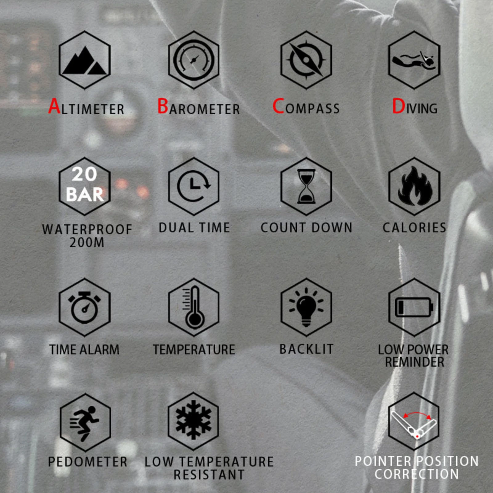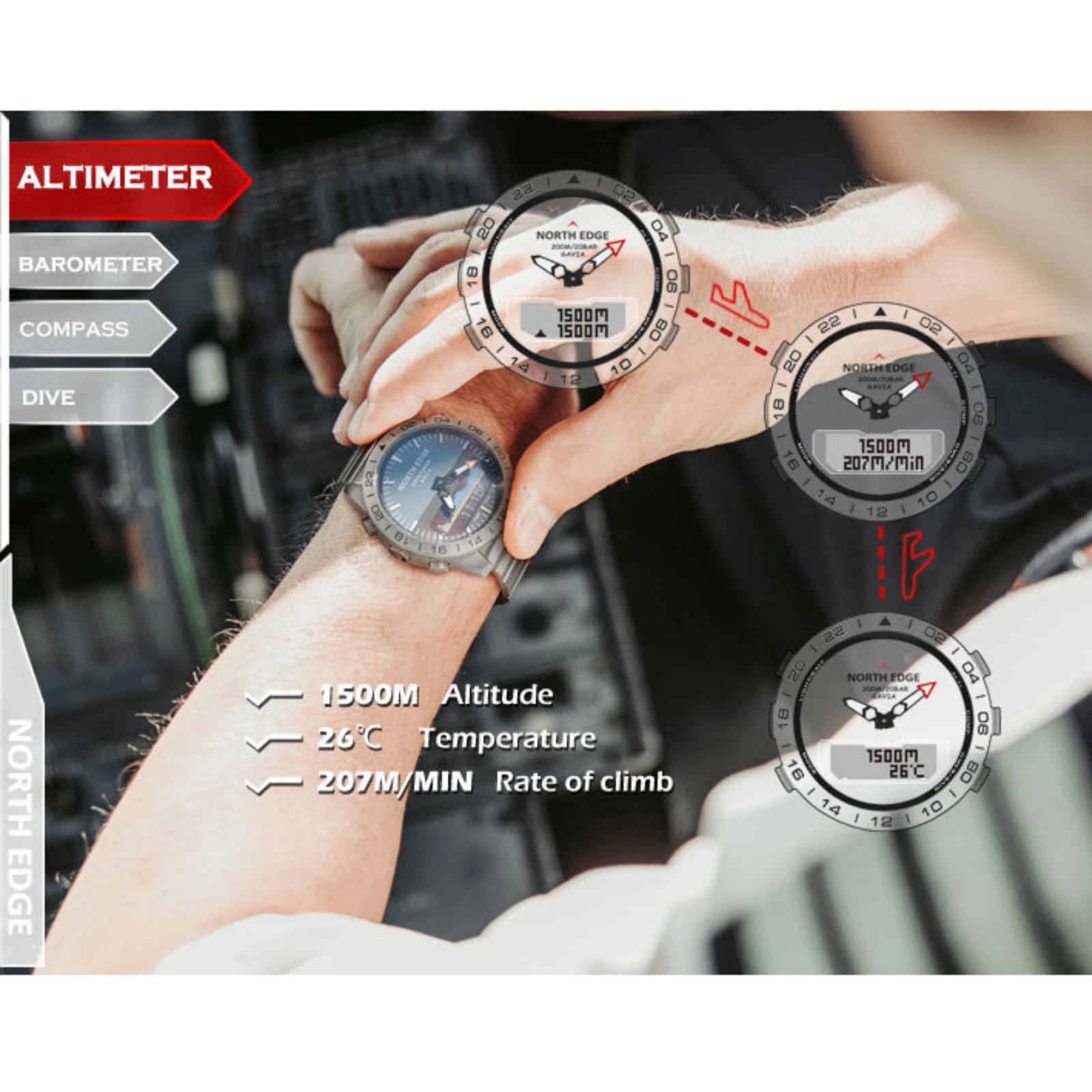CakCity Men's Altimeter Watch Analog Digital Watch Compass Diving Watch 20ATM