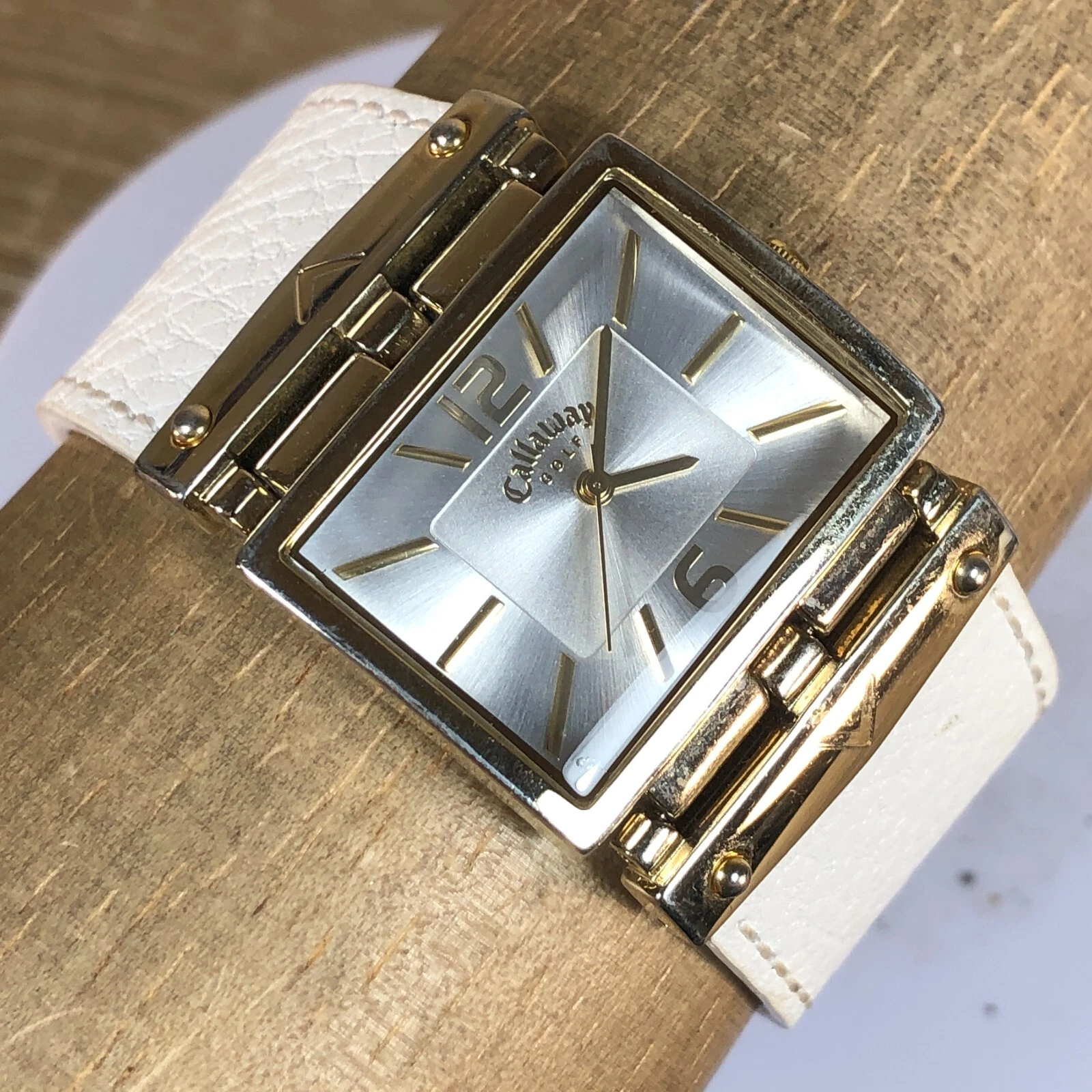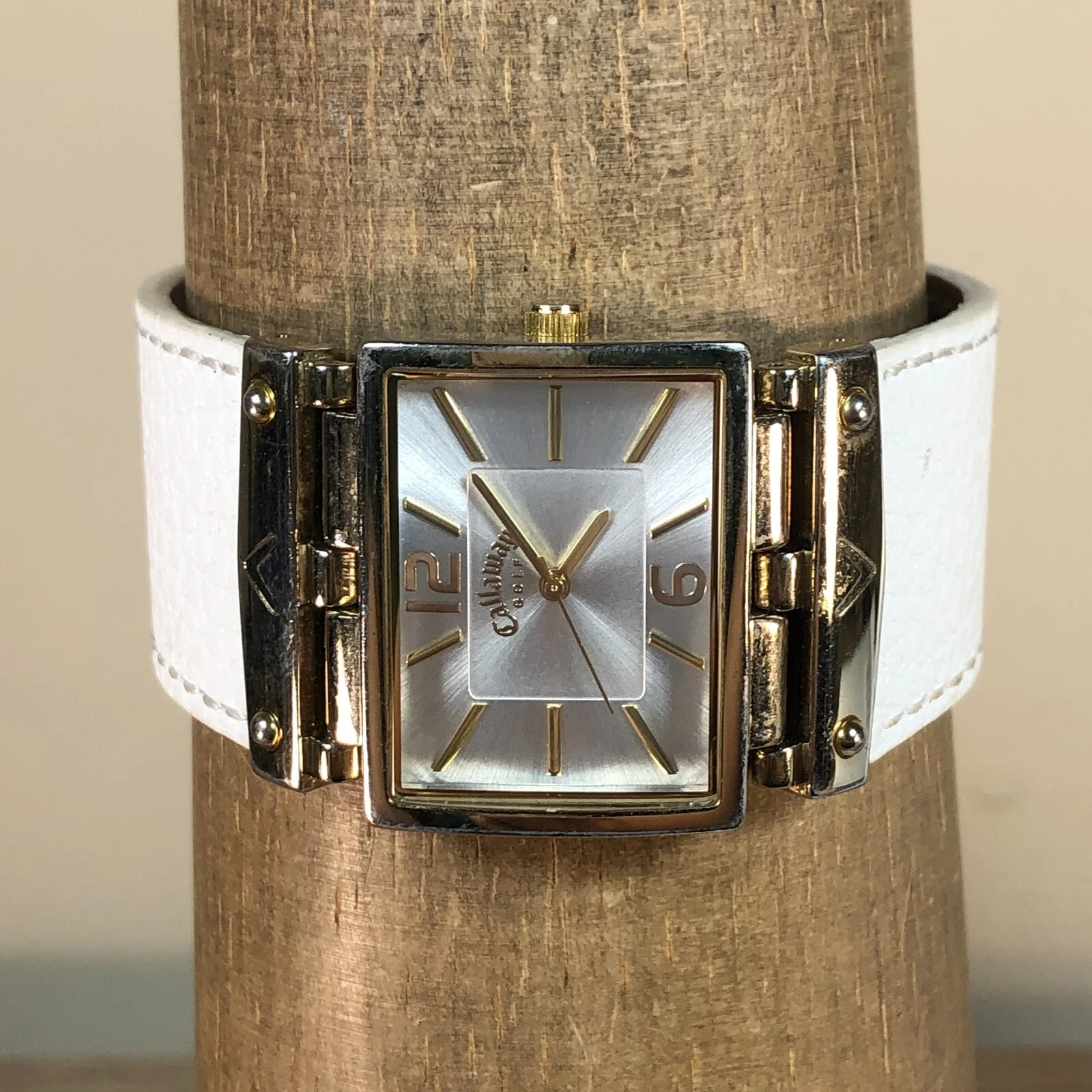 Callaway Golf Women FMDCY206 Silver Dial White Leather 32mm Quartz Watch 7 1/2"
