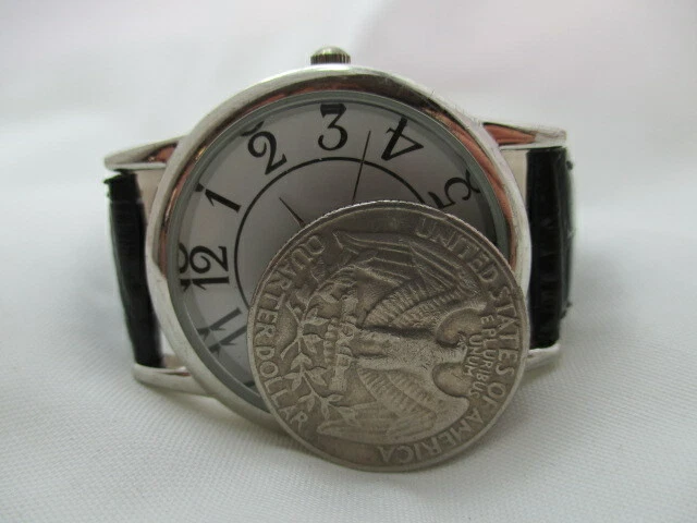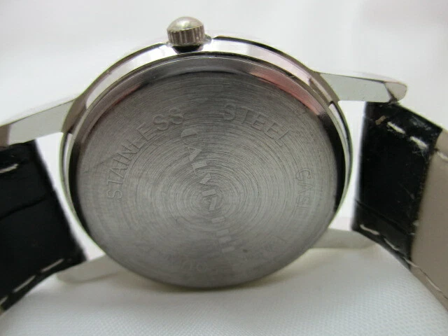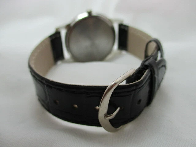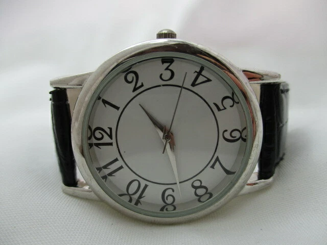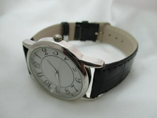 Calvin Hill Analog Wristwatch Black Buckle Band Silver Tone Round White Face