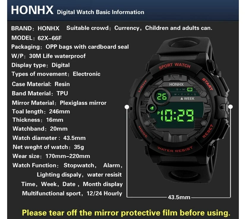 Mens Watches Black Military Style Army Walking Sport Digital Watch Waterproof UK