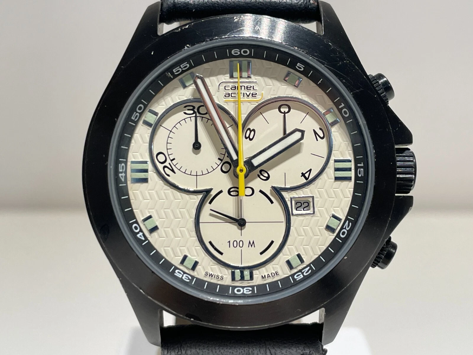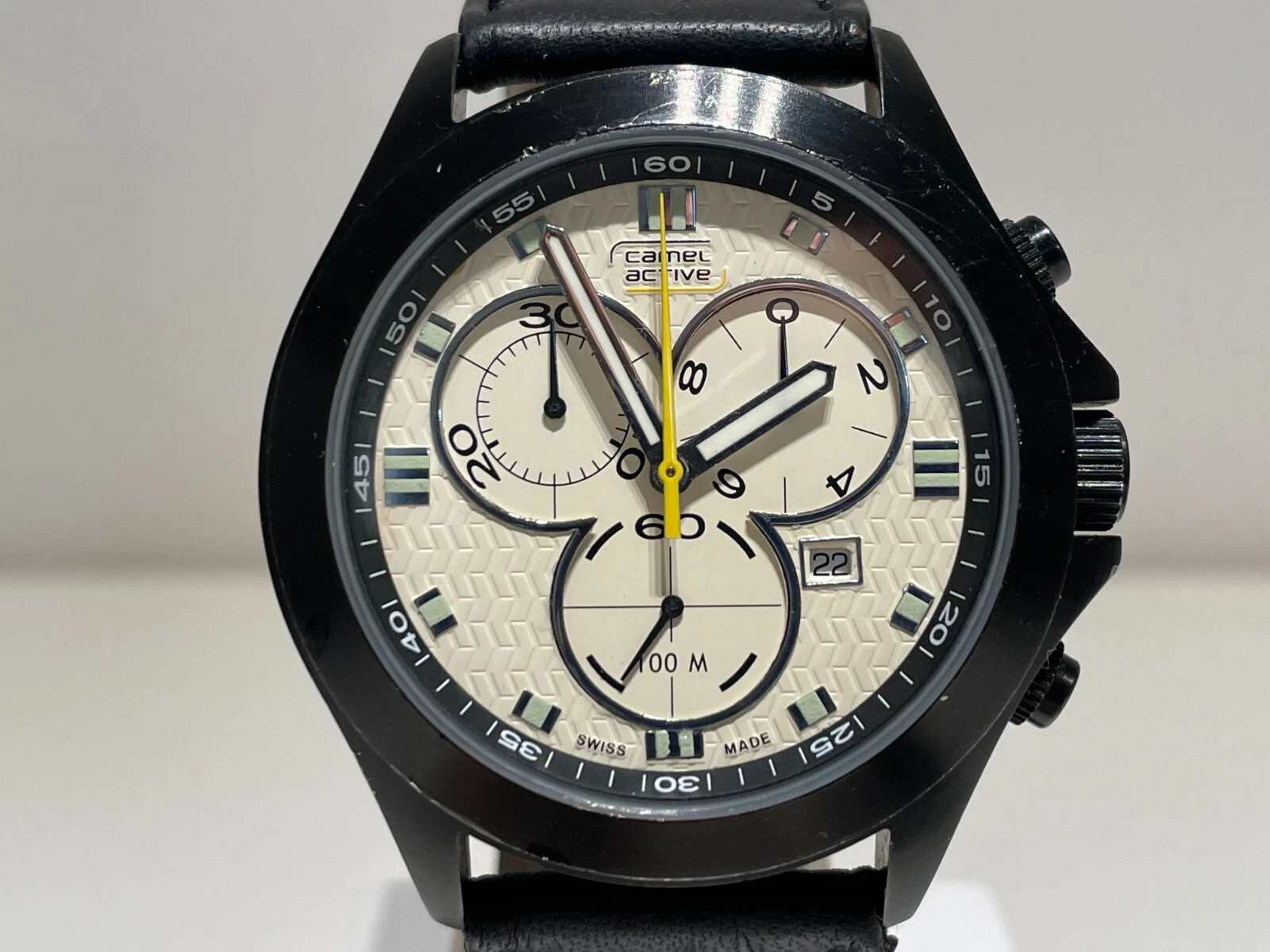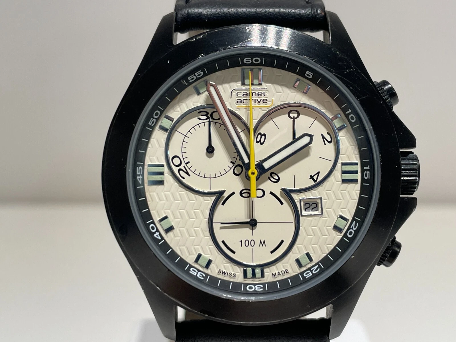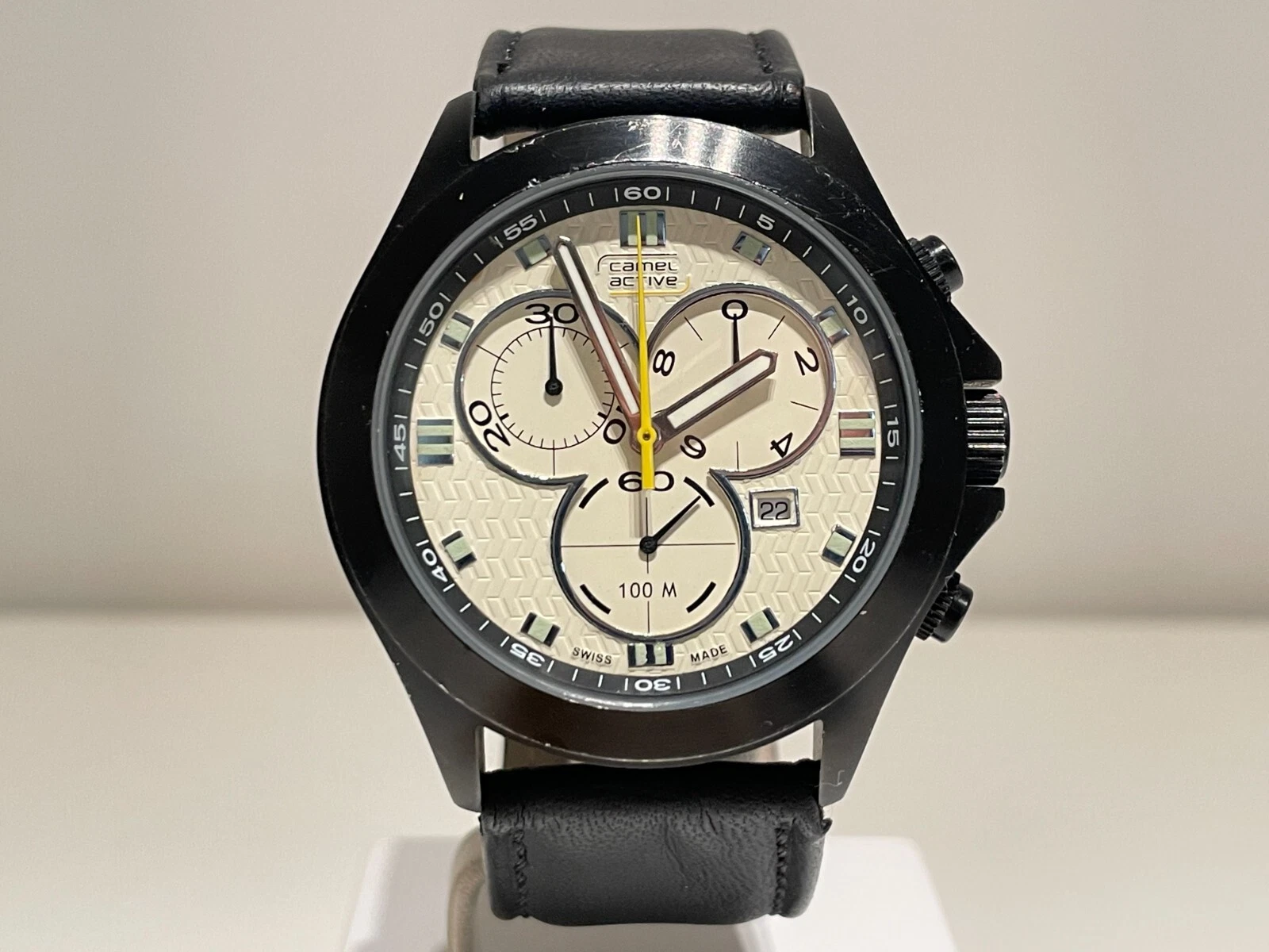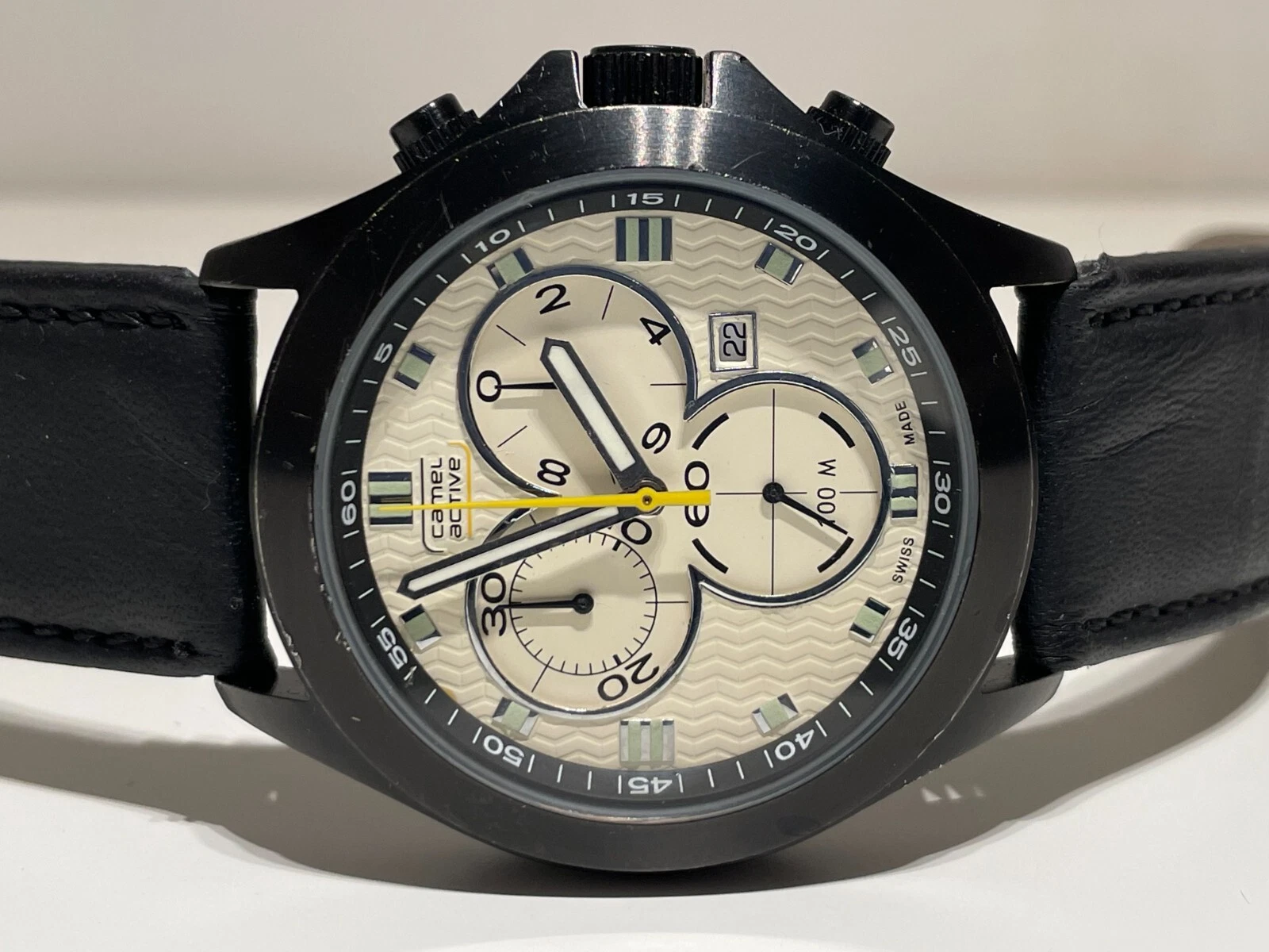 VINTAGER RARE SPORT MEN'S BLACK PVD SWISS CHRONOGRAPH QUARTZ WATCH "CAMEL"ACTIVE