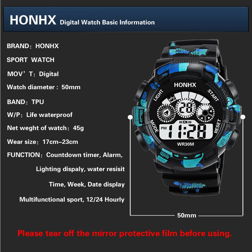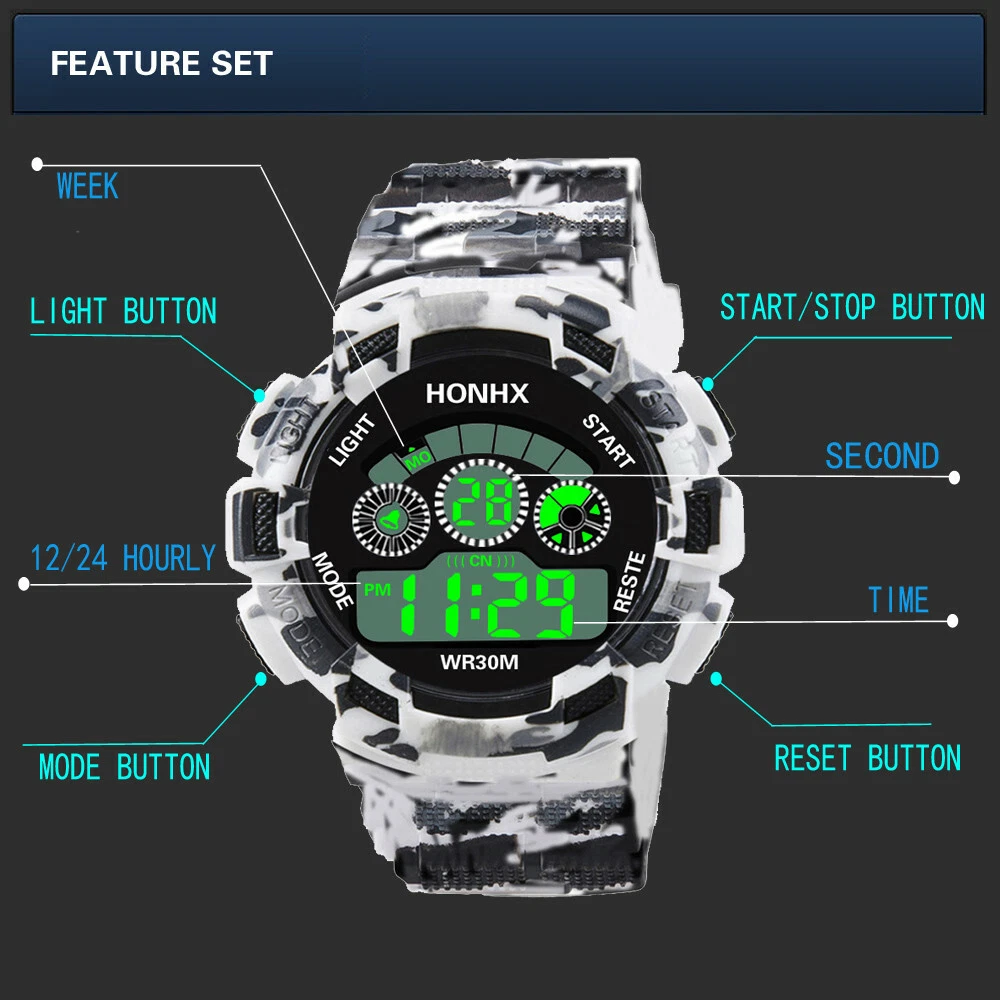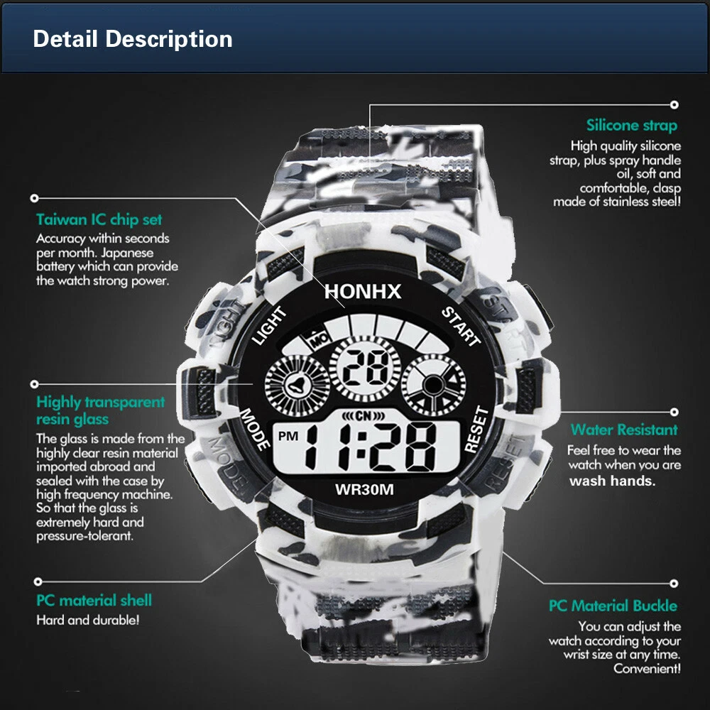 HONHX Men Camouflage Watch Digital Quartz Military  LED Waterproof Sport Watch