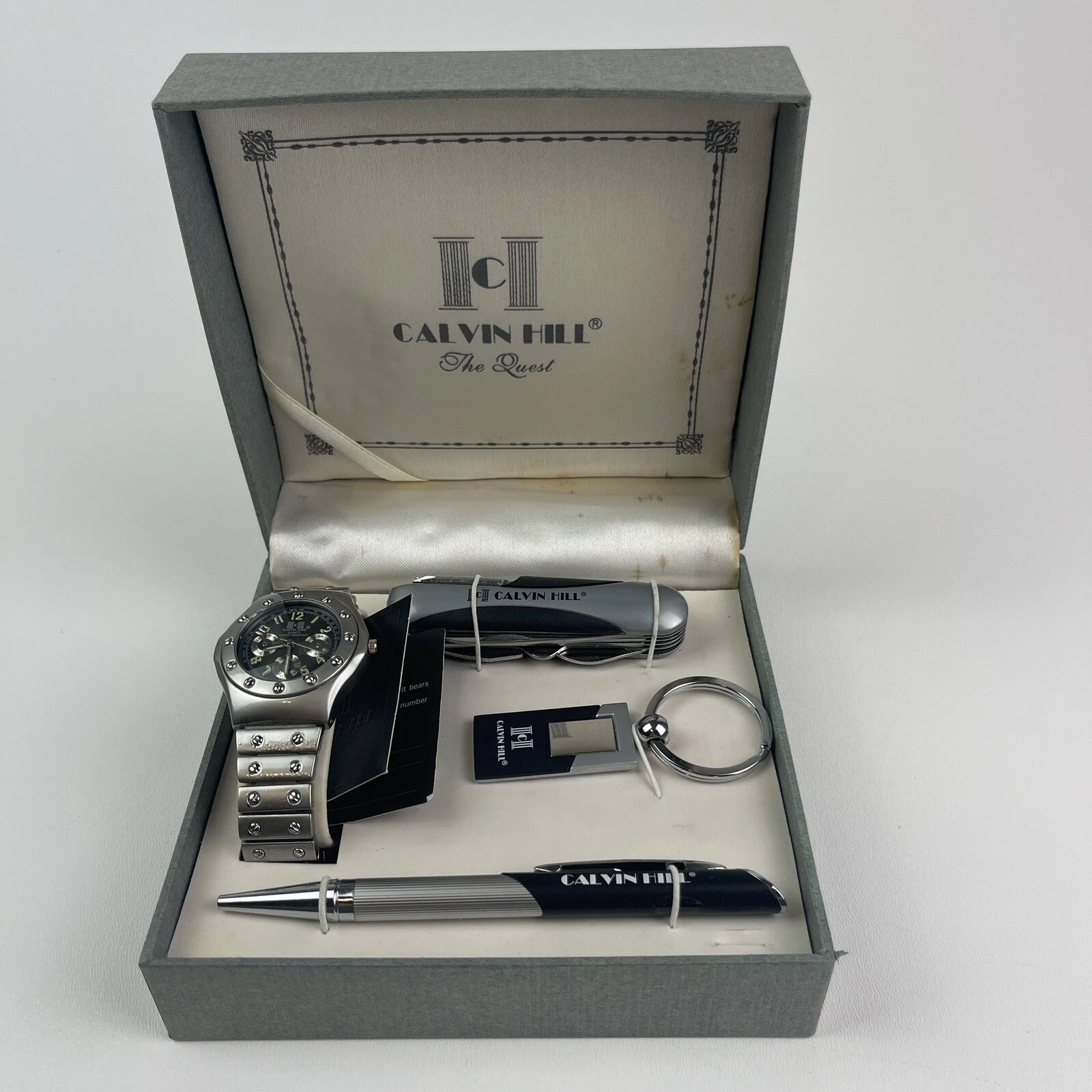 Calvin Hill Boxed Gift Set Watch Multi Took Pen And Key Chain Box Cond Fair