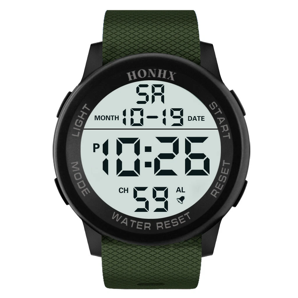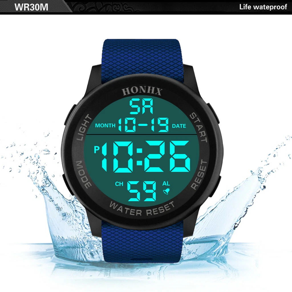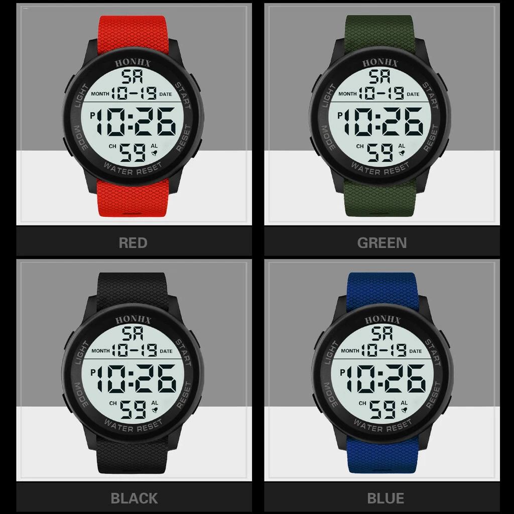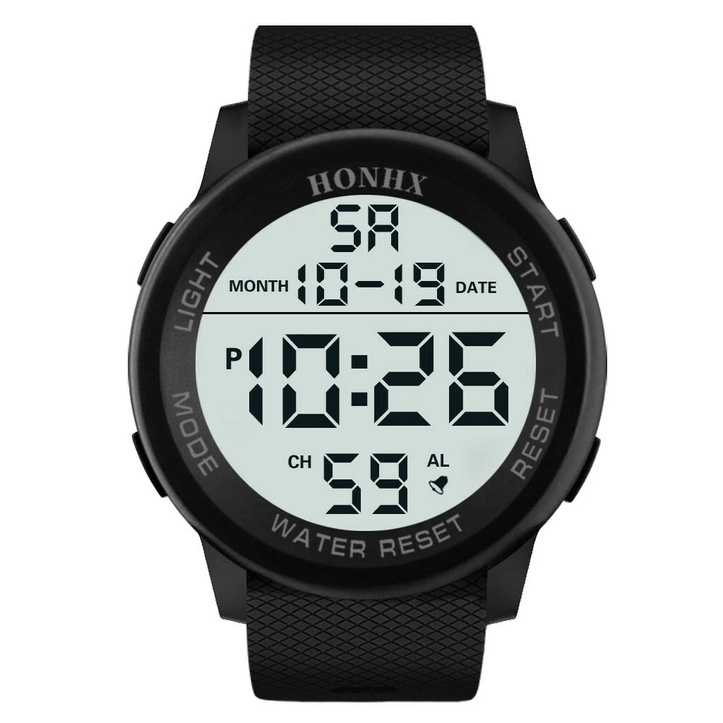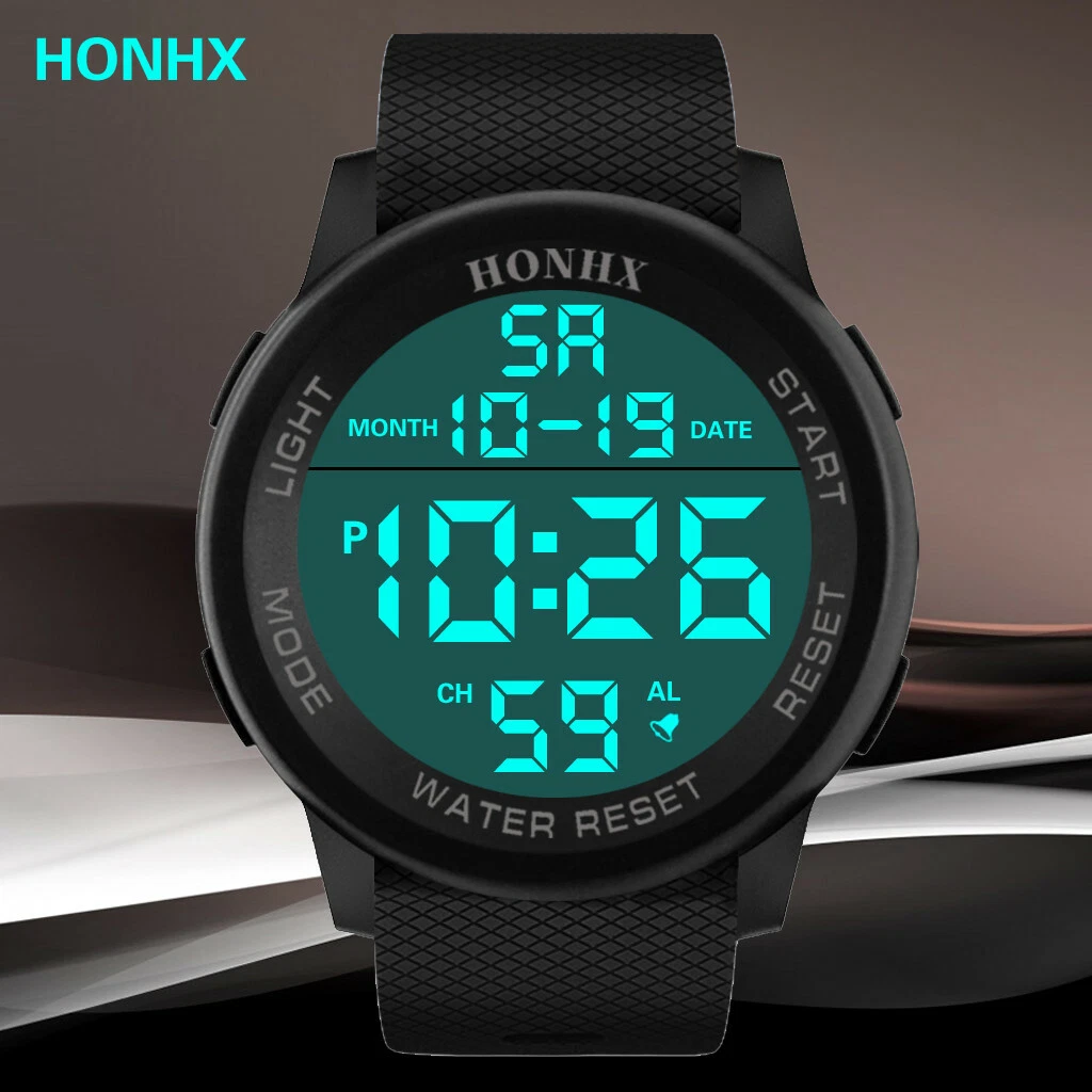 HONHX Men Digital TPU Strap Military Sport Watch LED Waterproof Quartz Watch