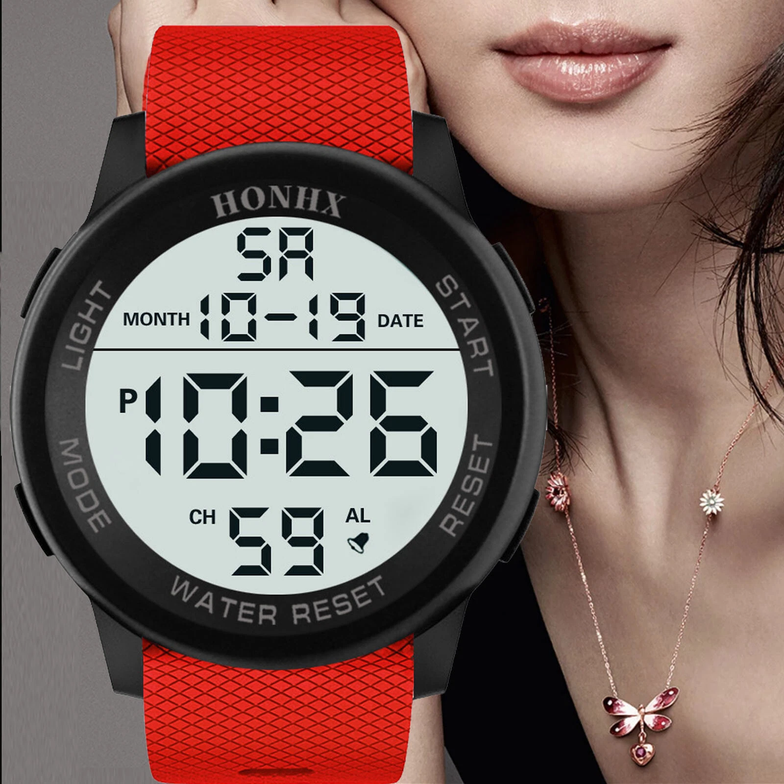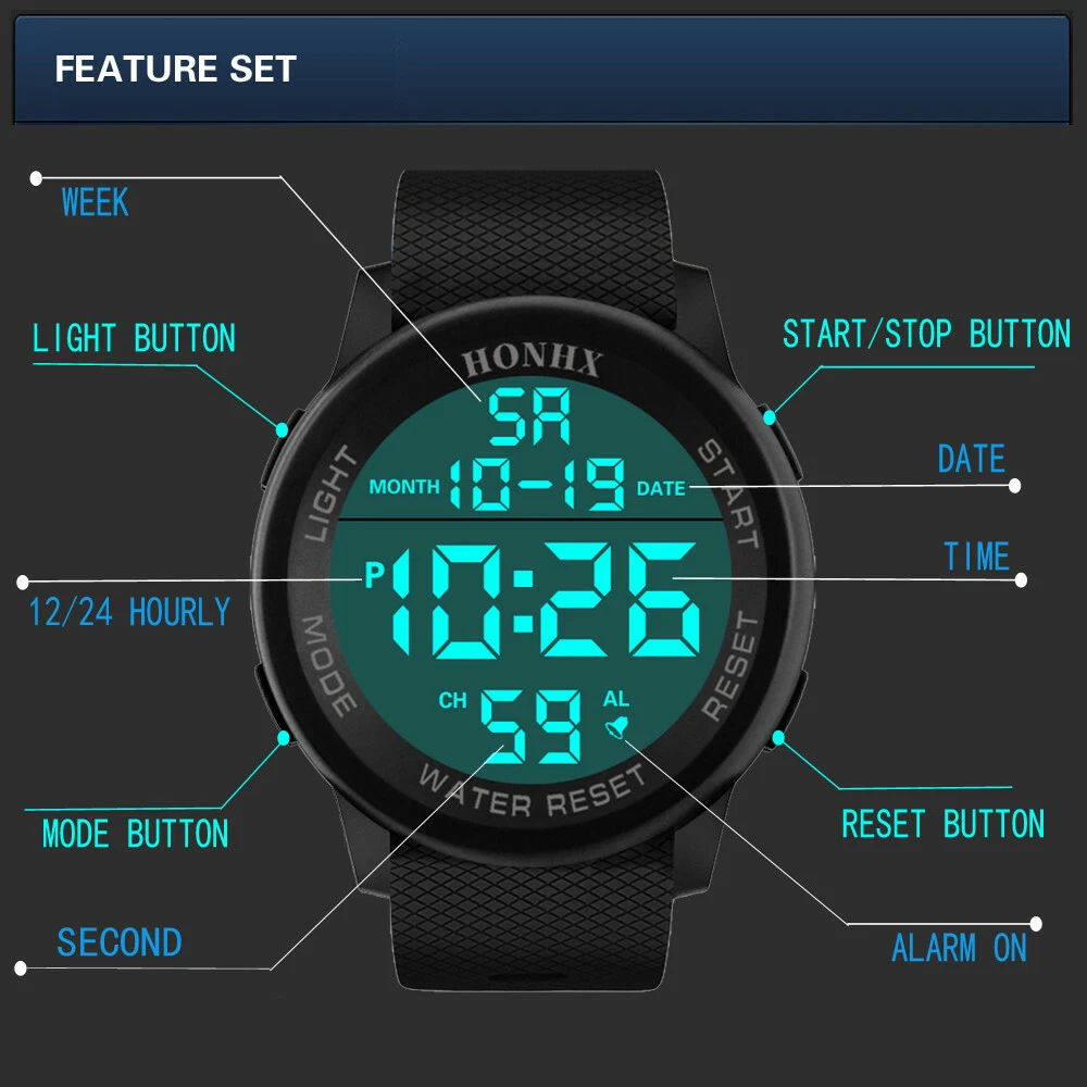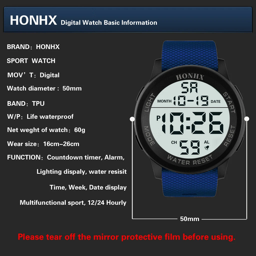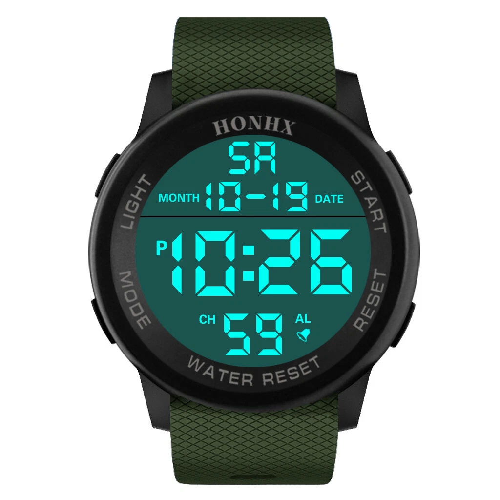 HONHX Men Digital TPU Strap Military Sport Watch LED Waterproof Quartz Watch