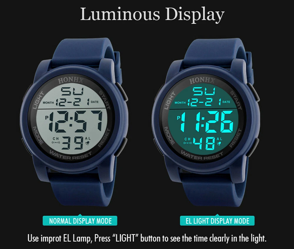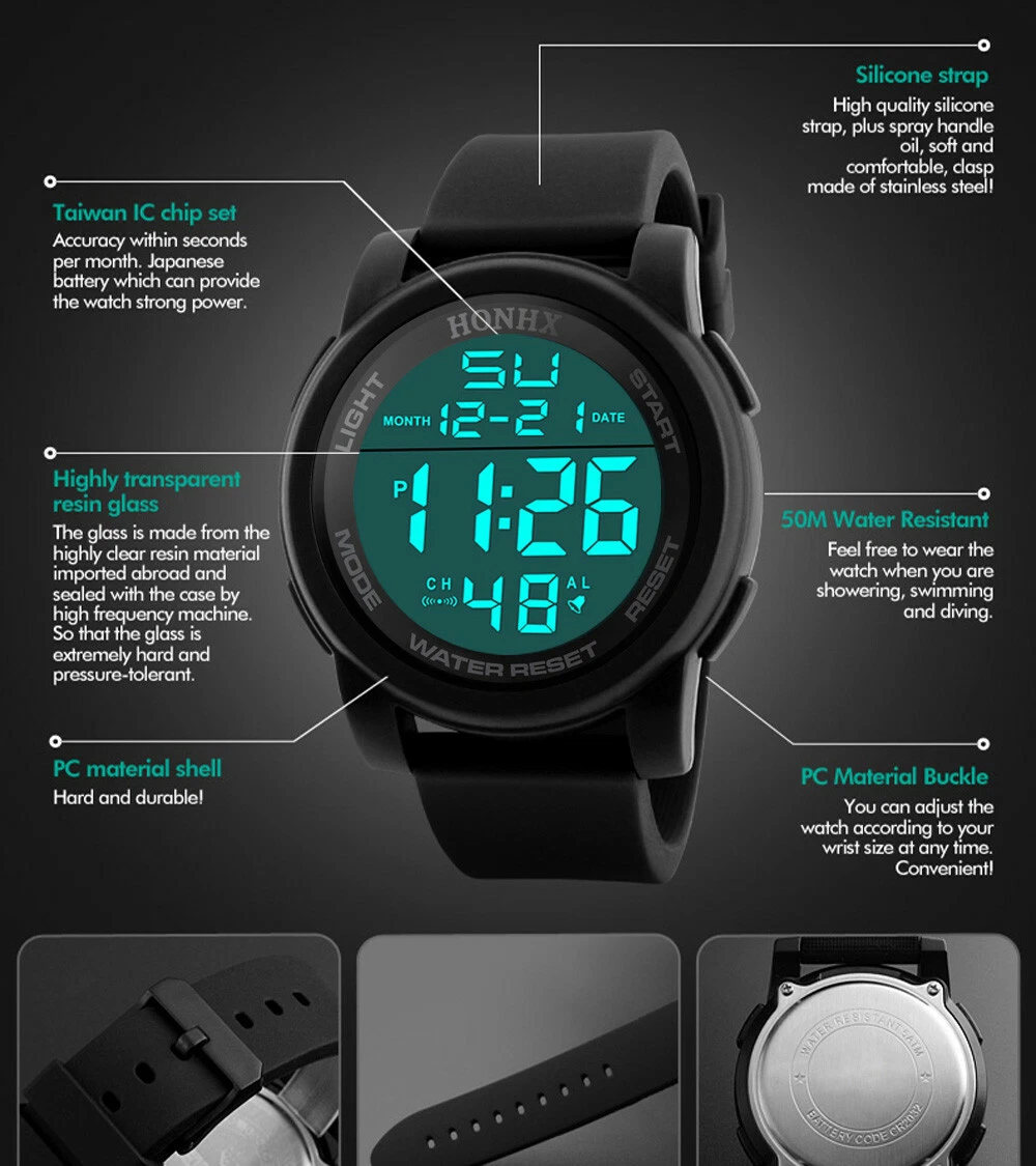 HONHX Men Digital Silicone Watch Military Sport Quartz Waterproof LED Wristwatch