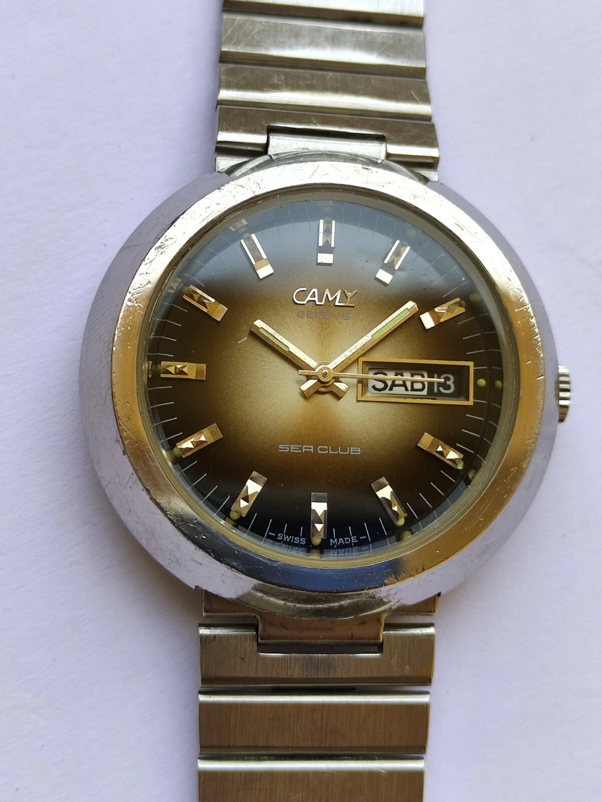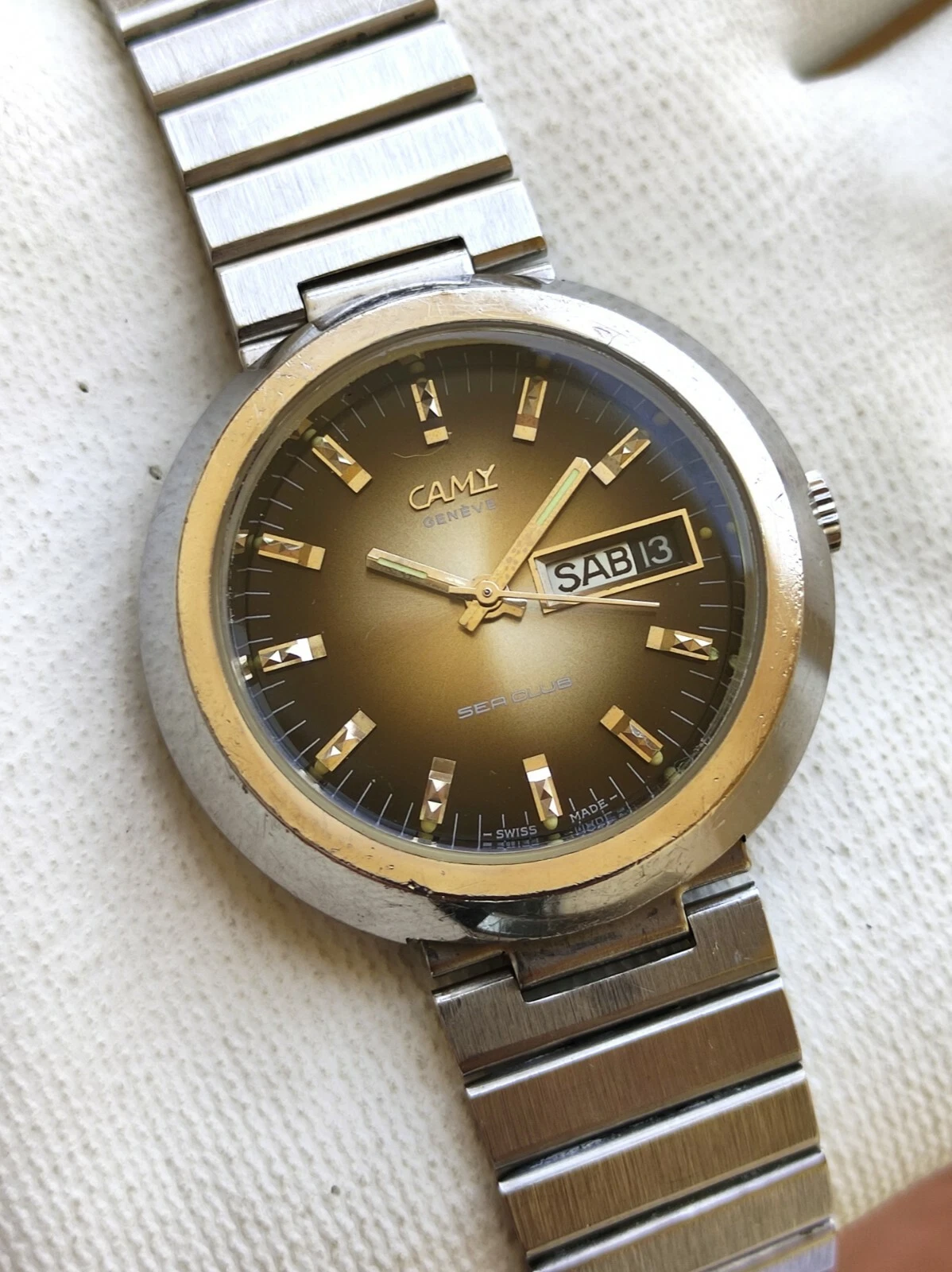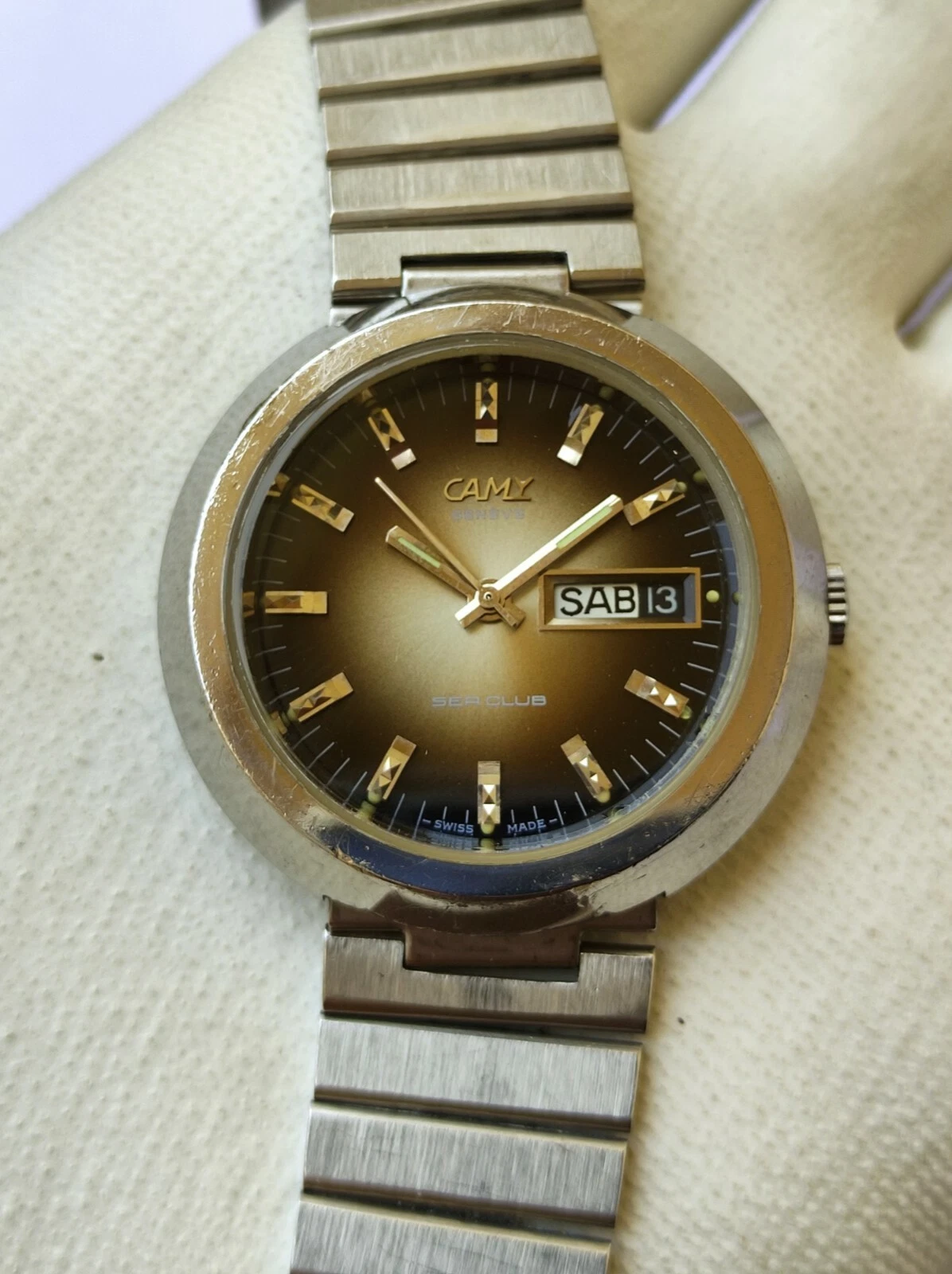 Vintage Camy Geneve Automatic Watch Mens Camy Sea Club Brown Day Date 39mm