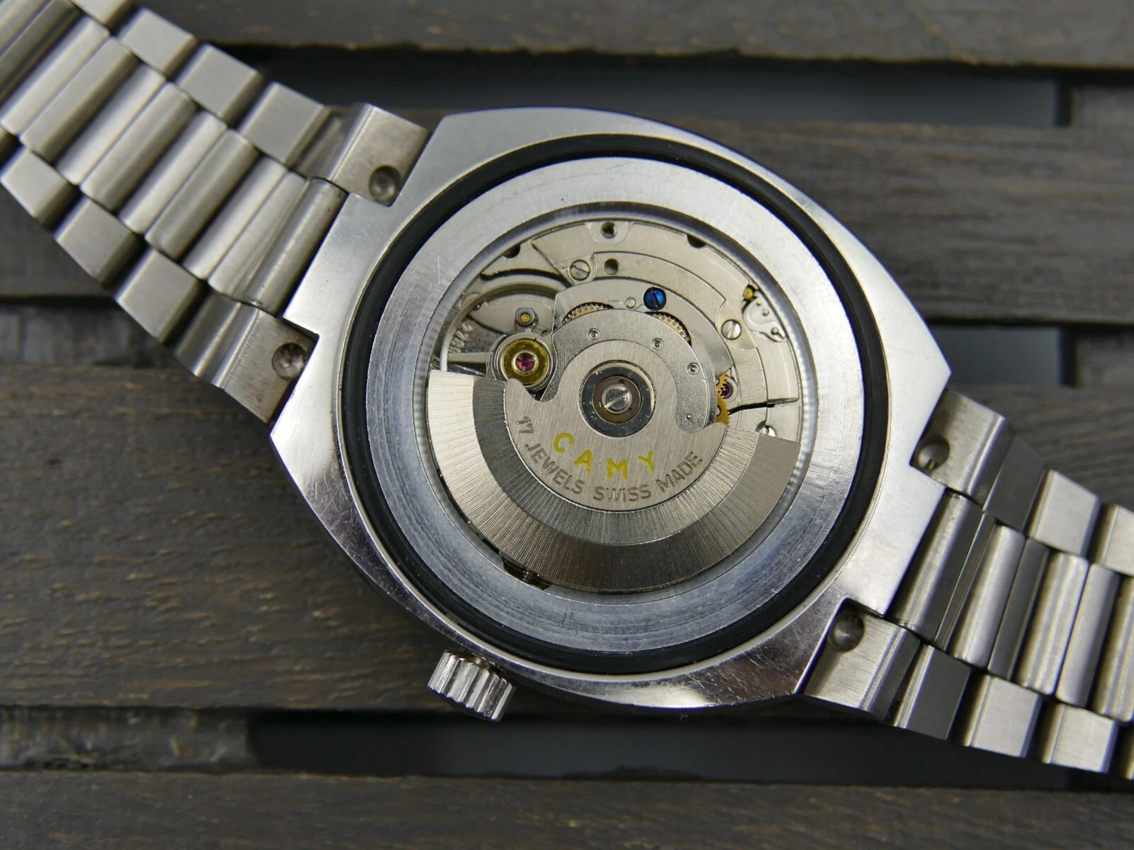 70's vintage watch mens Camy time square 44 ref 7672 automatic ETA 2789 BIG rare