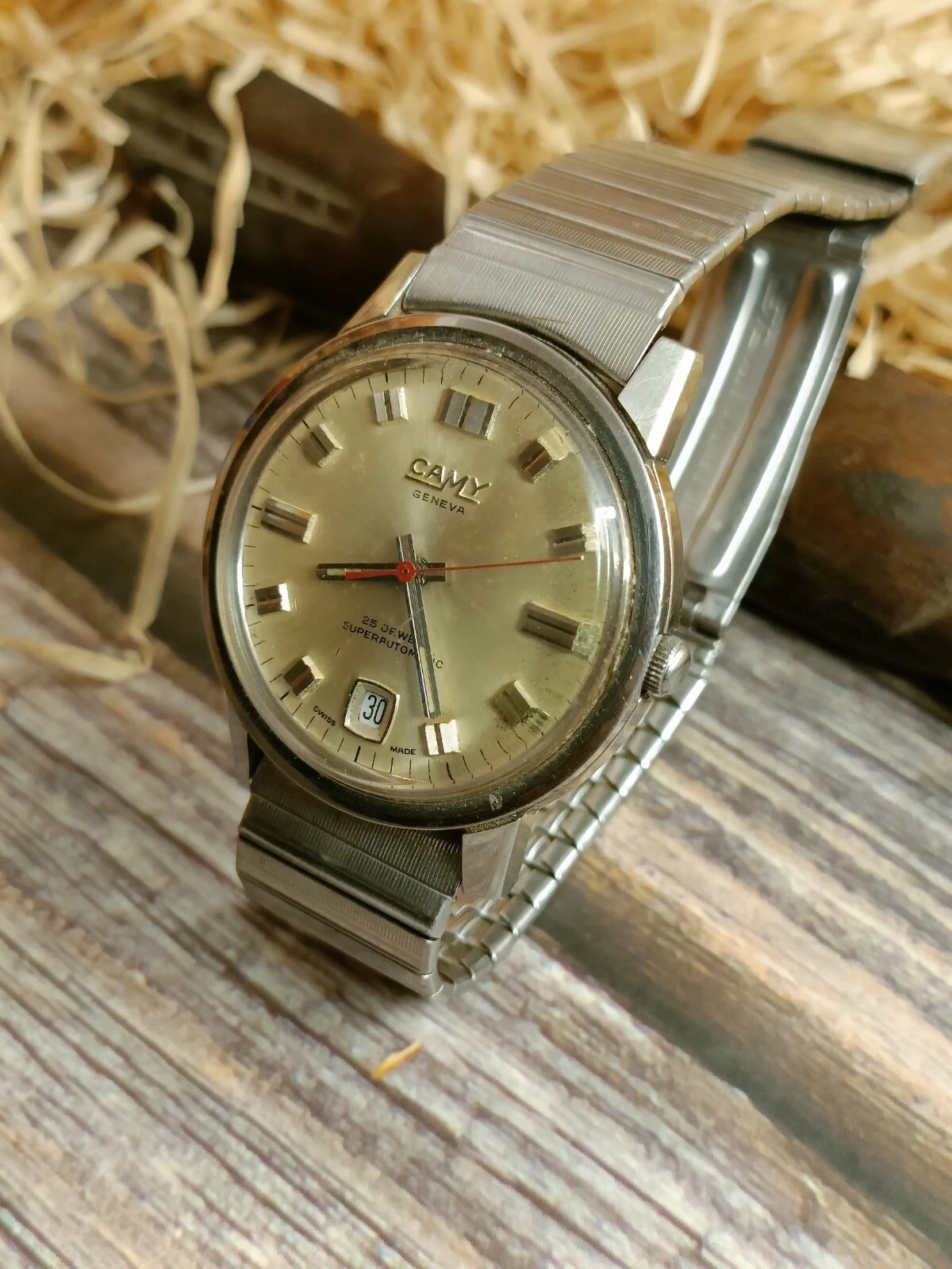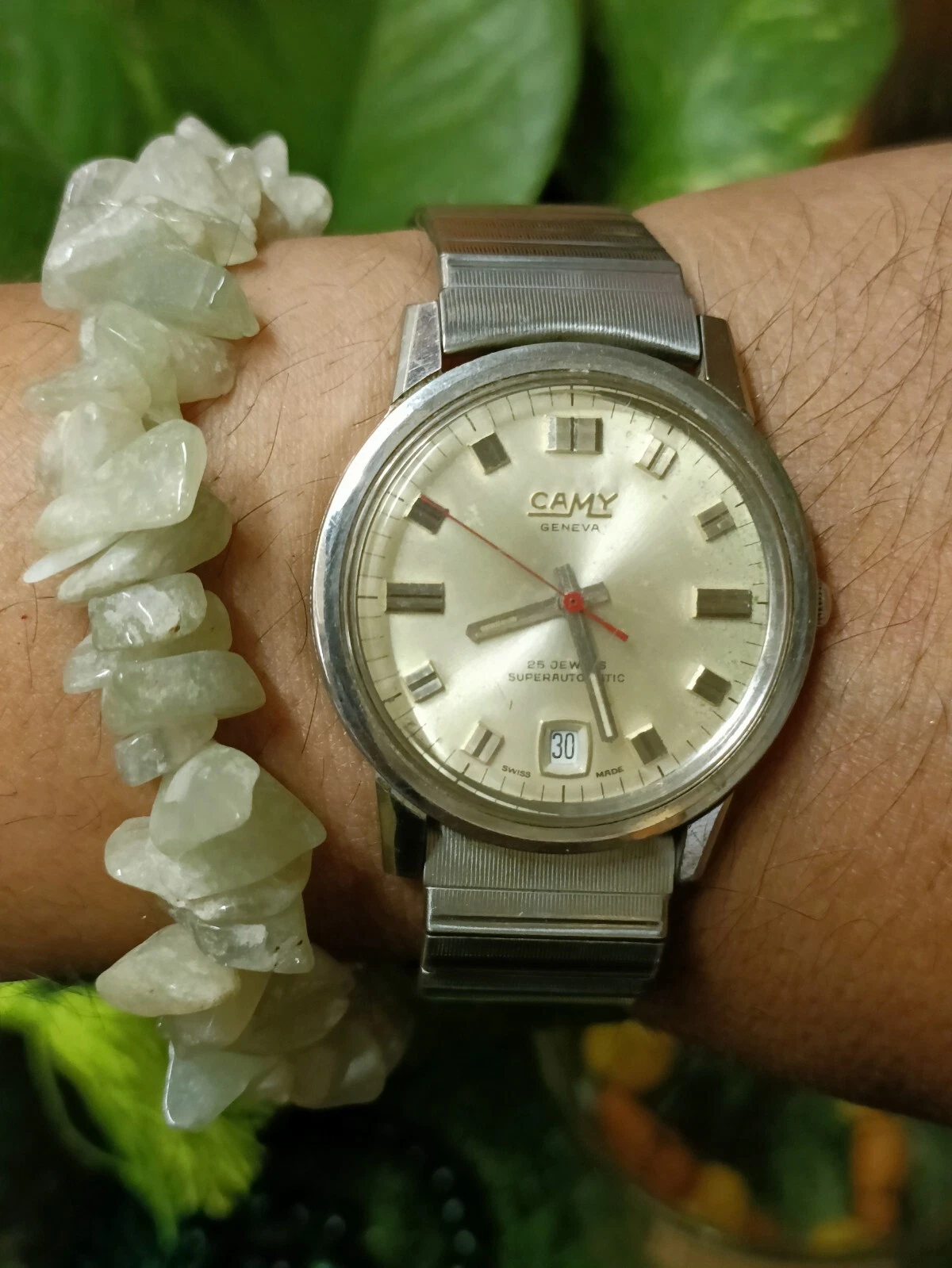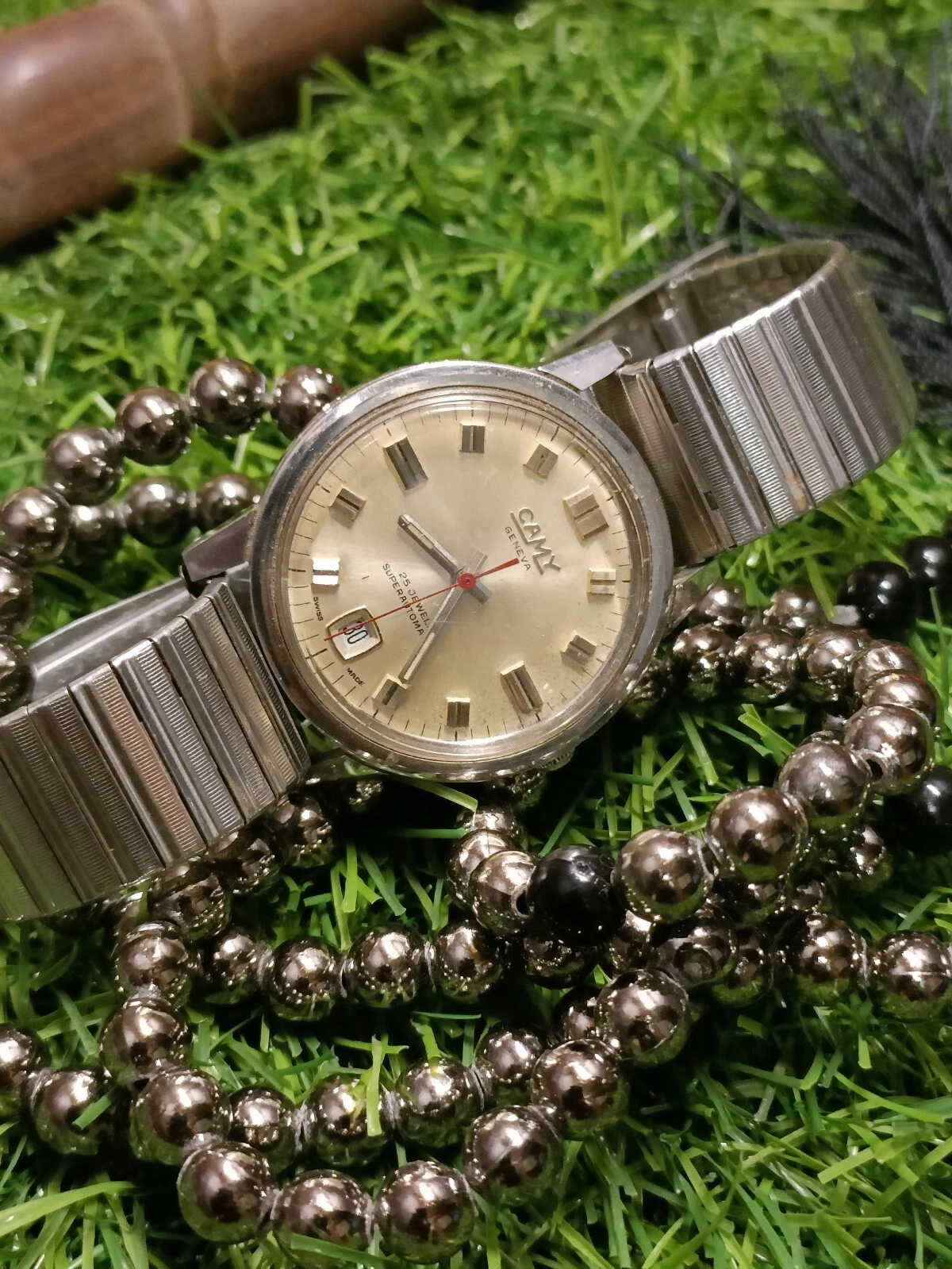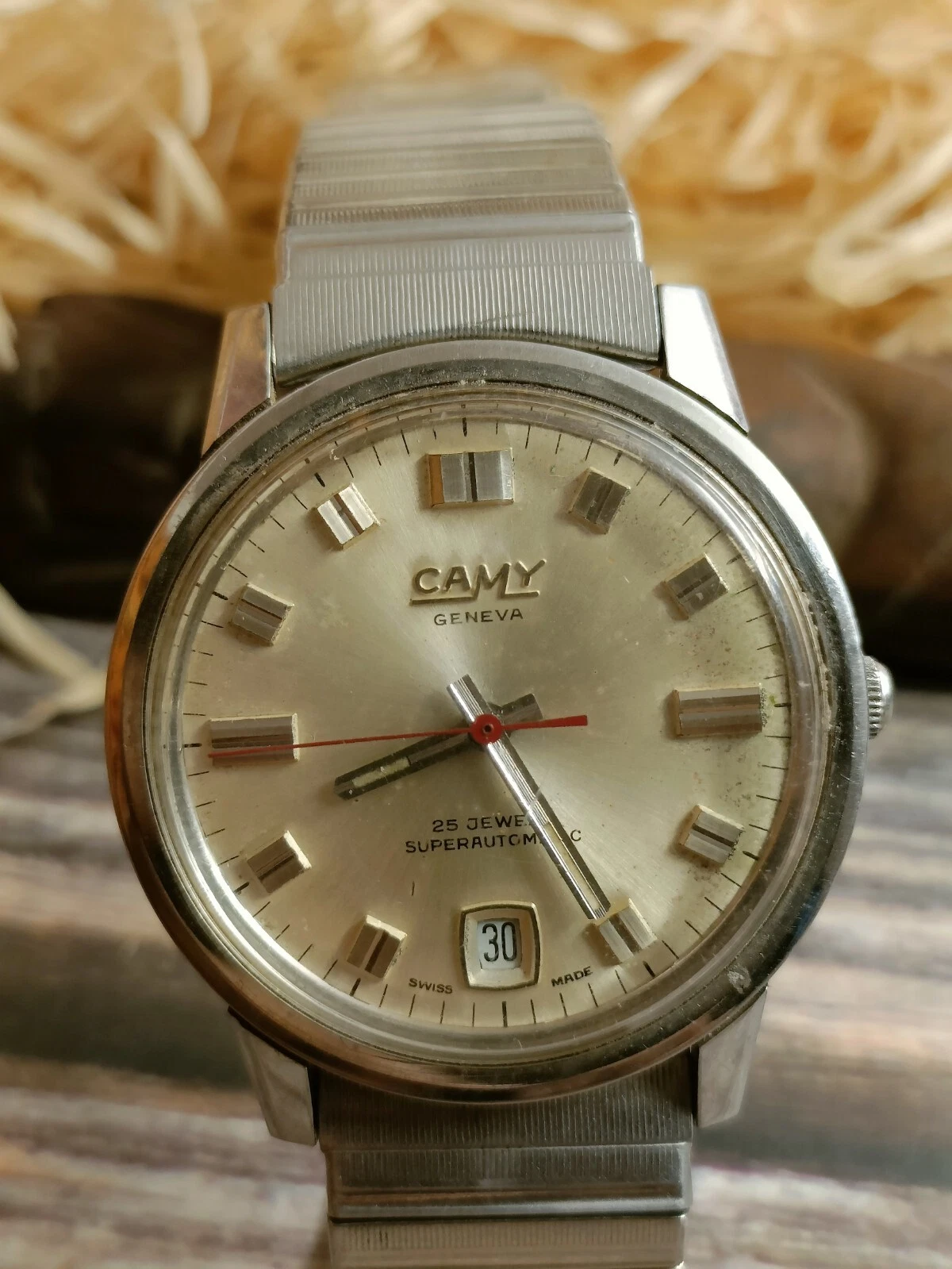 AUTHENTIC CAMY GENEVA 25 JEWELS SUPER AUTOMATIC SWISS MEN'S SILVER DIAL VINTAGE