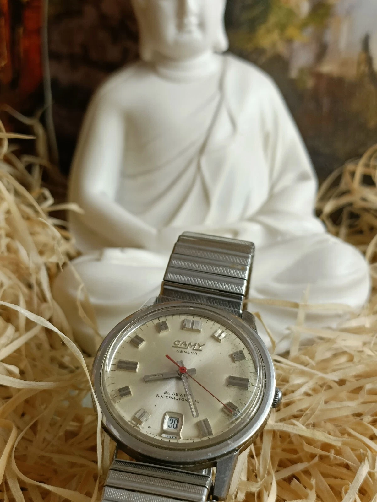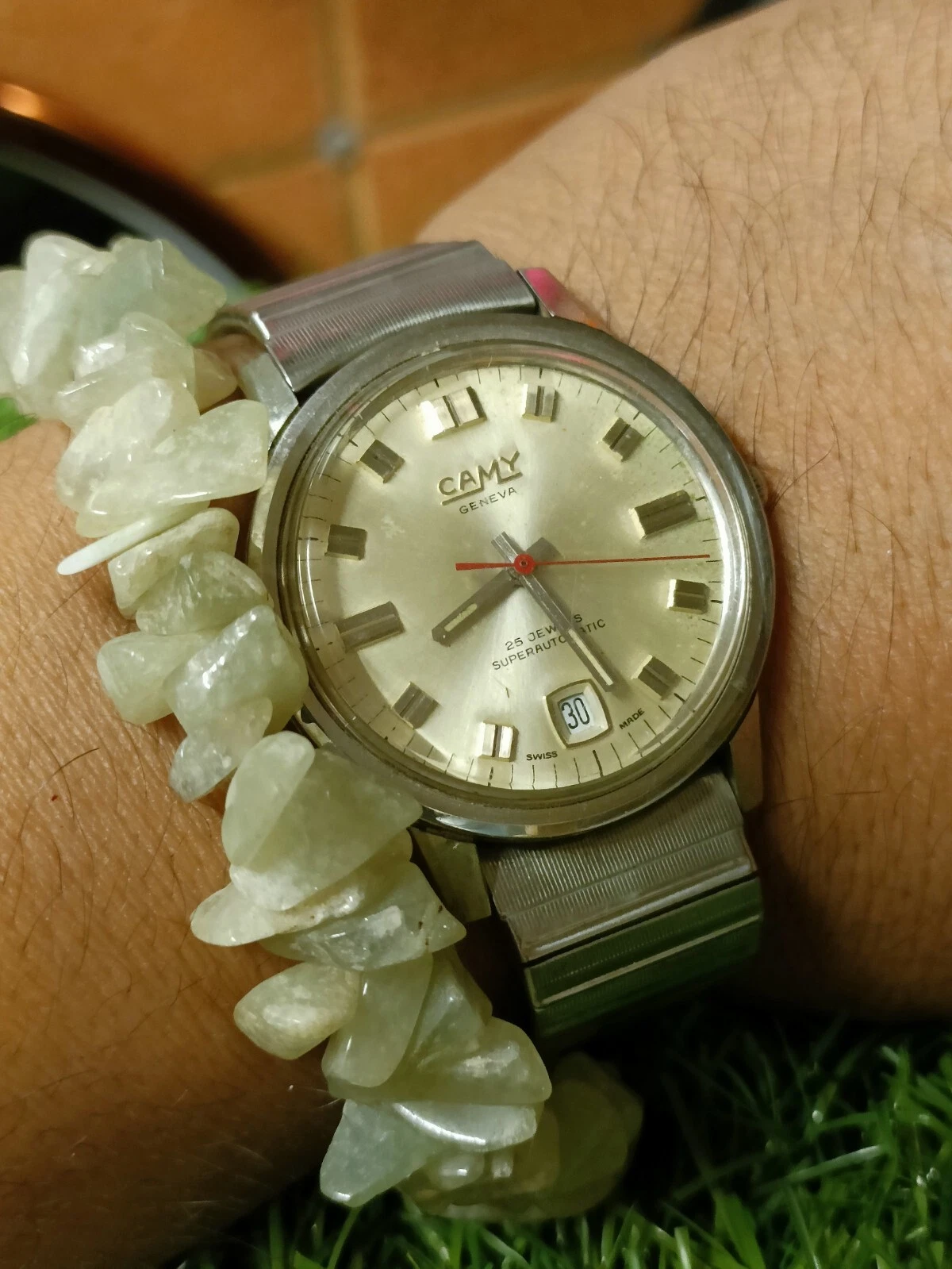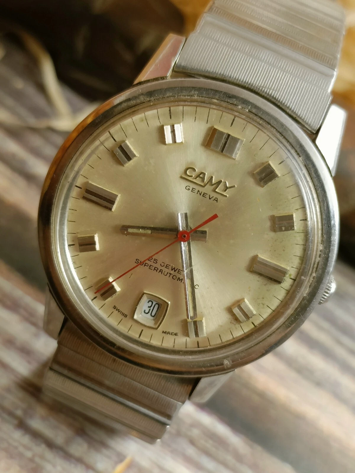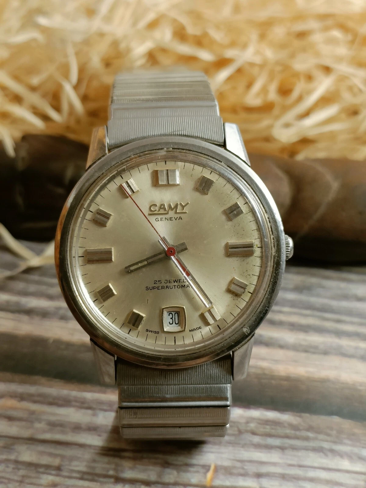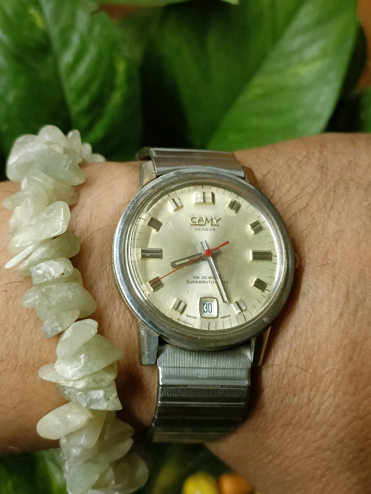 AUTHENTIC CAMY GENEVA 25 JEWELS SUPER AUTOMATIC SWISS MEN'S SILVER DIAL VINTAGE