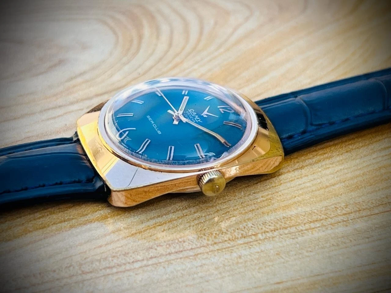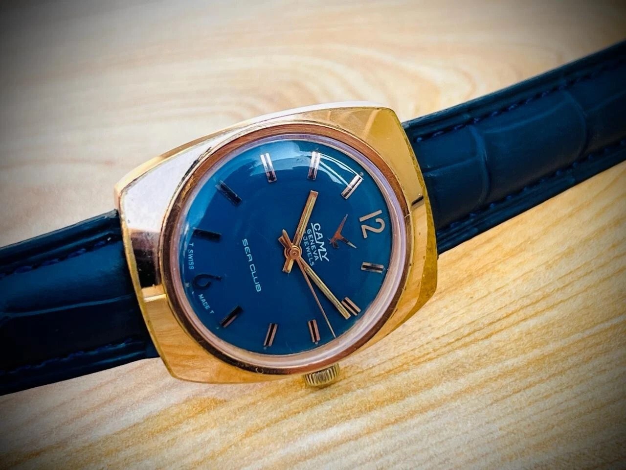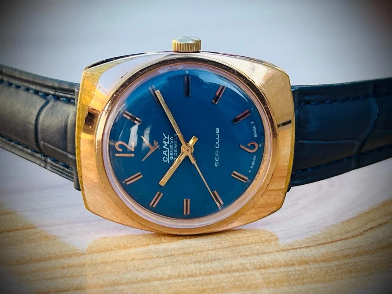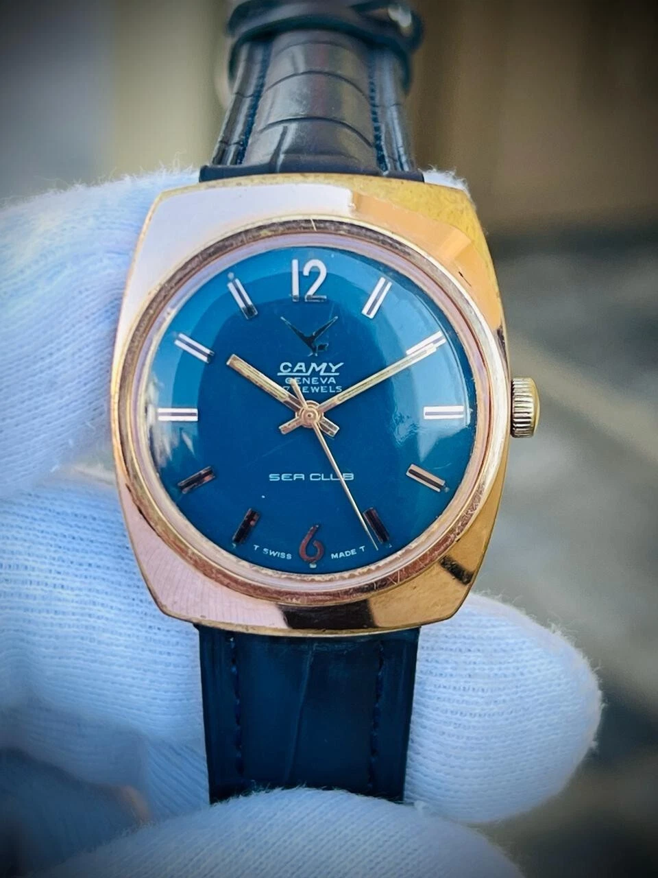 Vintage Camy Sea Club Rare Blue Dial Manual Wind Watch 32mm