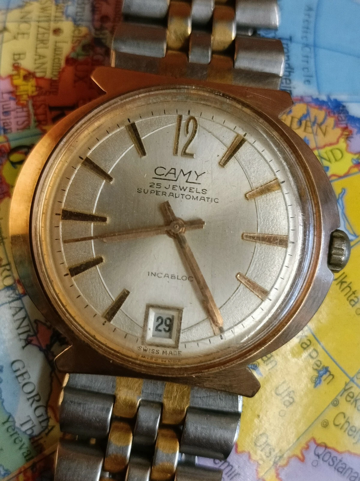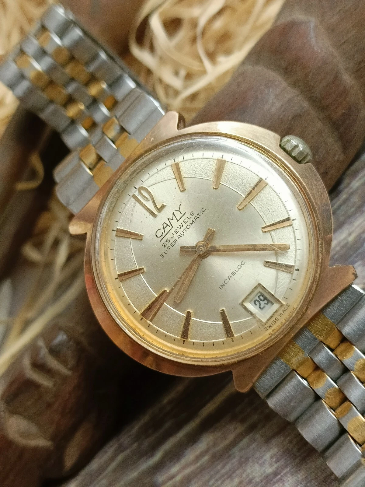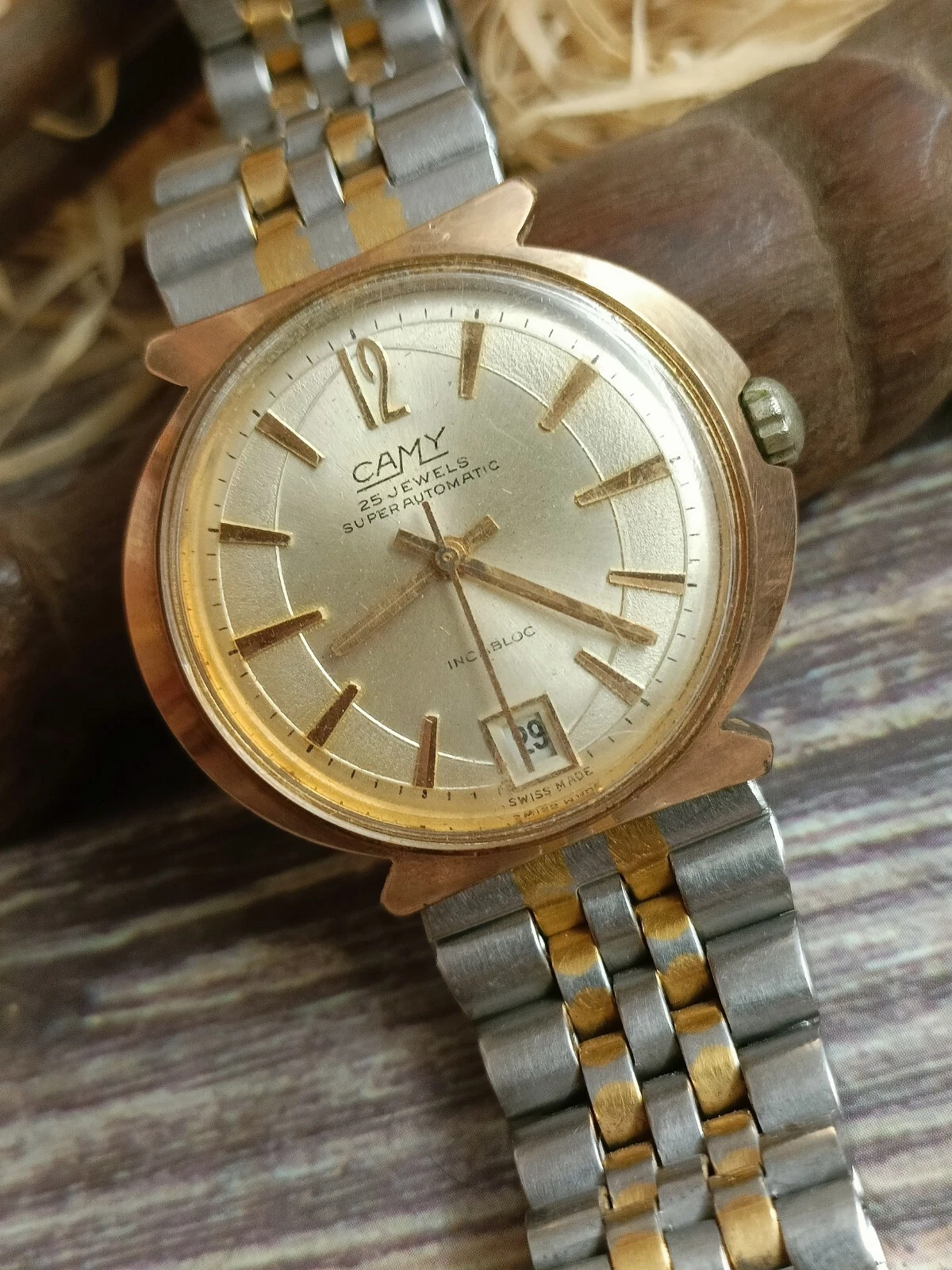 AUTHENTIC CAMY 25 JEWELS SUPER AUTOMATIC SWISS MEN'S FANCY LUGS VINTAGE WATCH