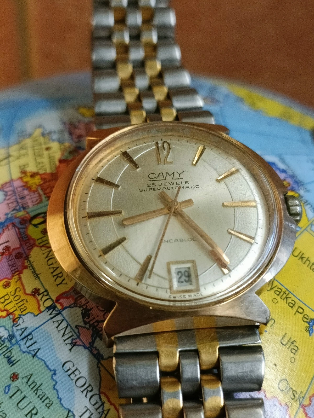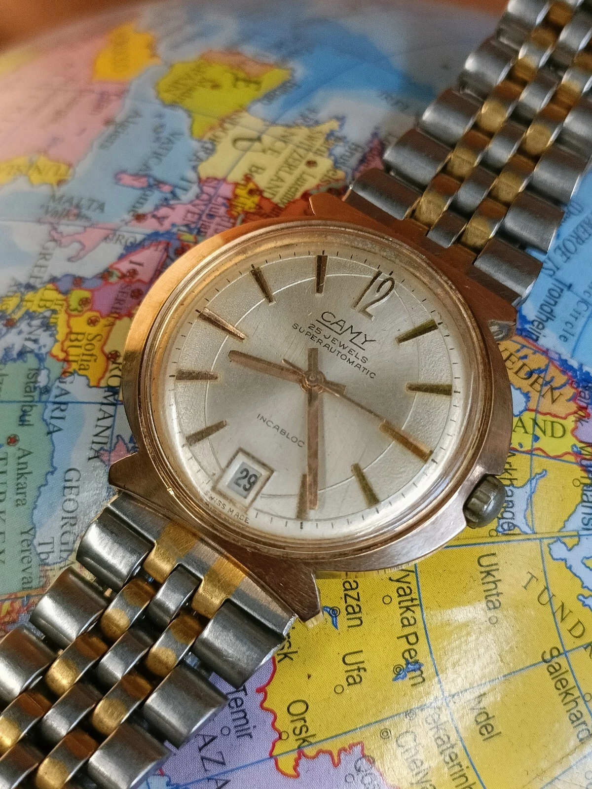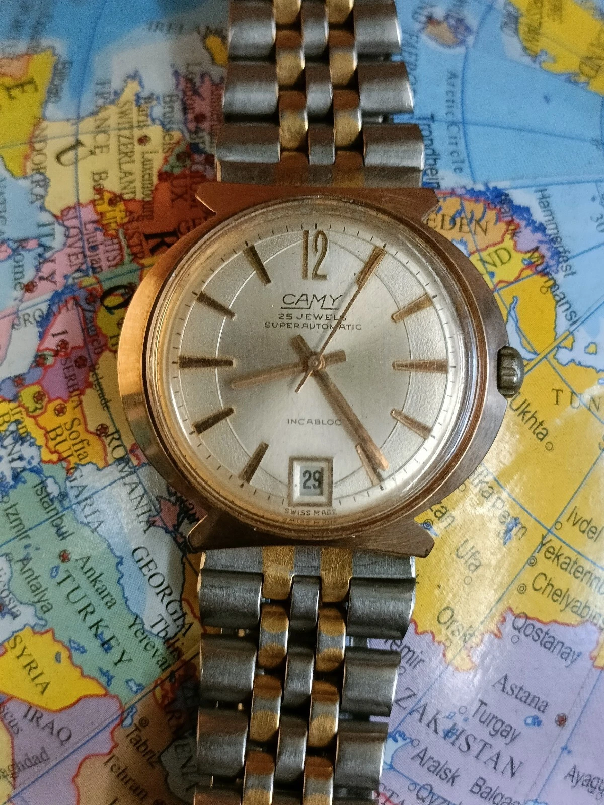 AUTHENTIC CAMY 25 JEWELS SUPER AUTOMATIC SWISS MEN'S FANCY LUGS VINTAGE WATCH