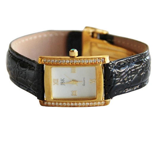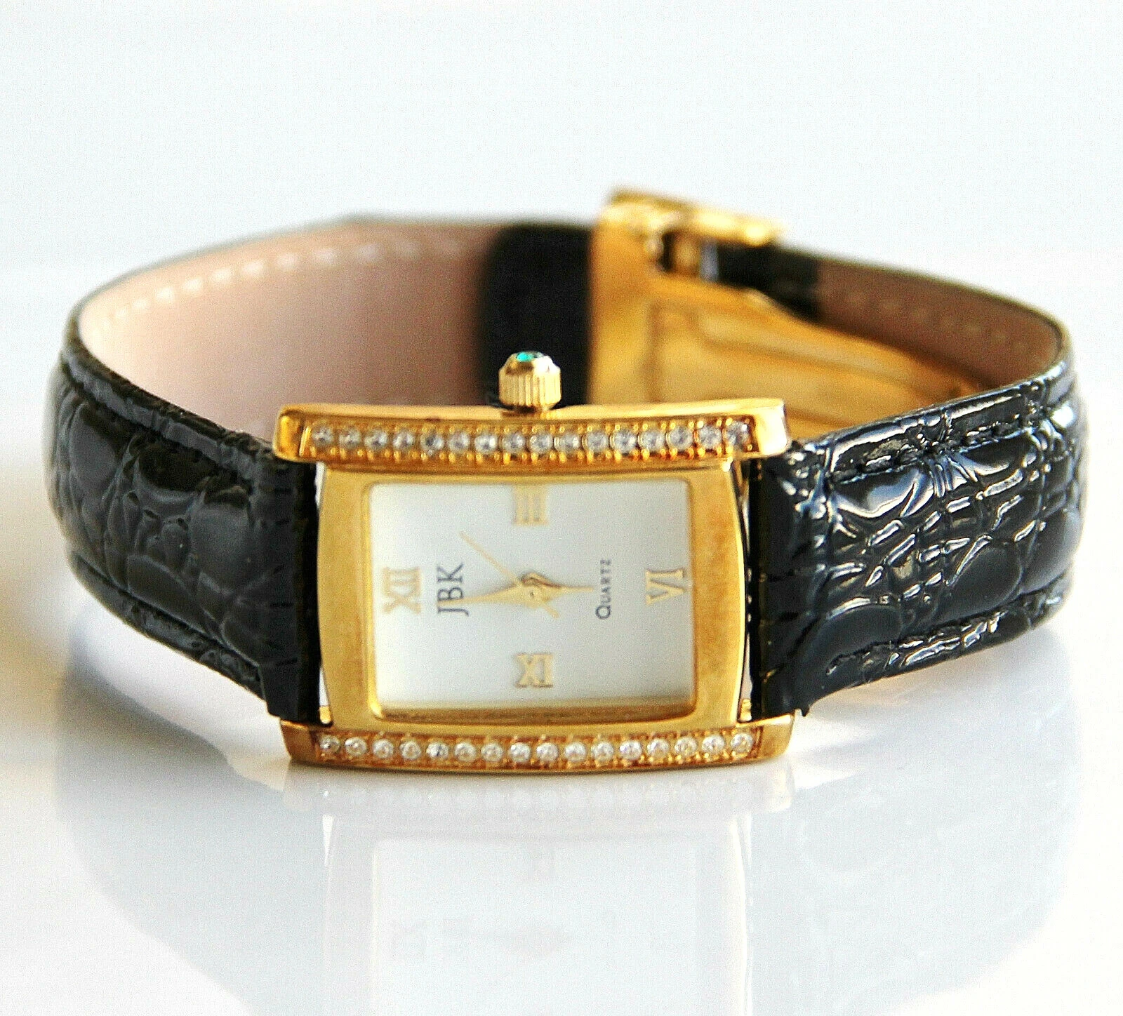JBK Camrose & Kross Womens Crystal Black Leather Band Quartz Analog Wristwatch