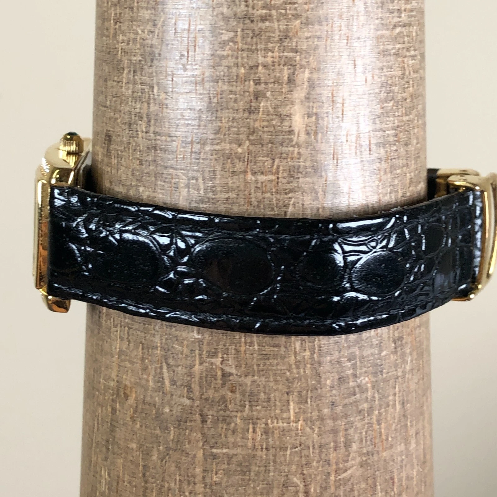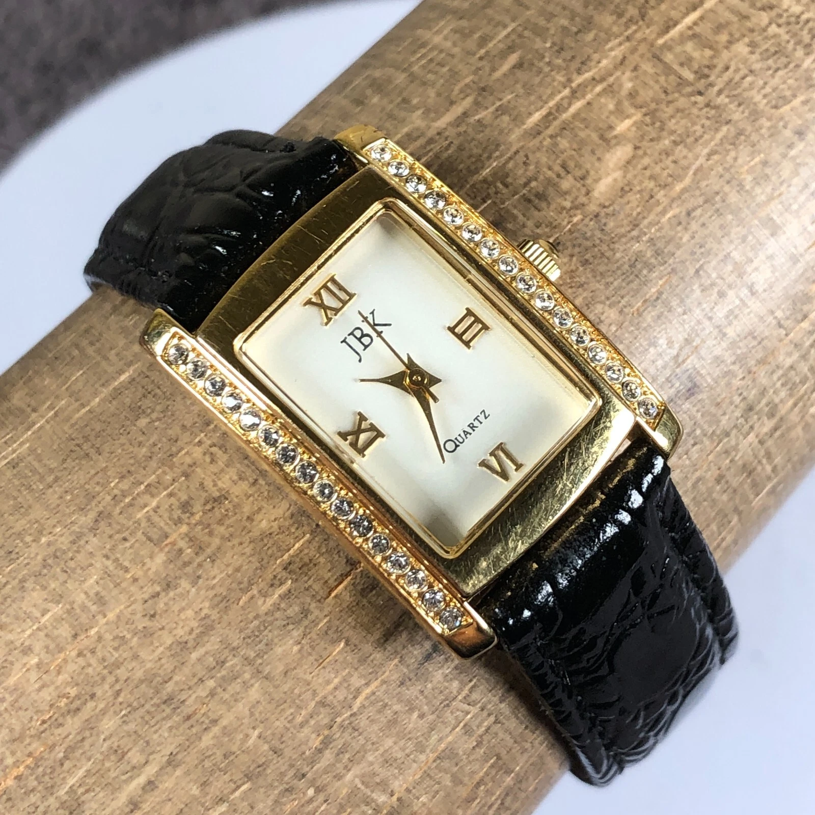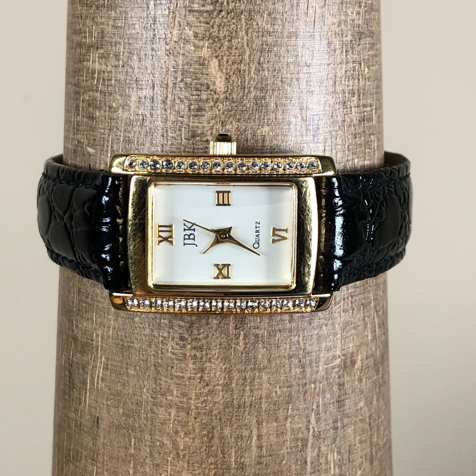 JBK Collection Women Camrose & Kross Black Leather Pave Bezel Quartz Watch 7"