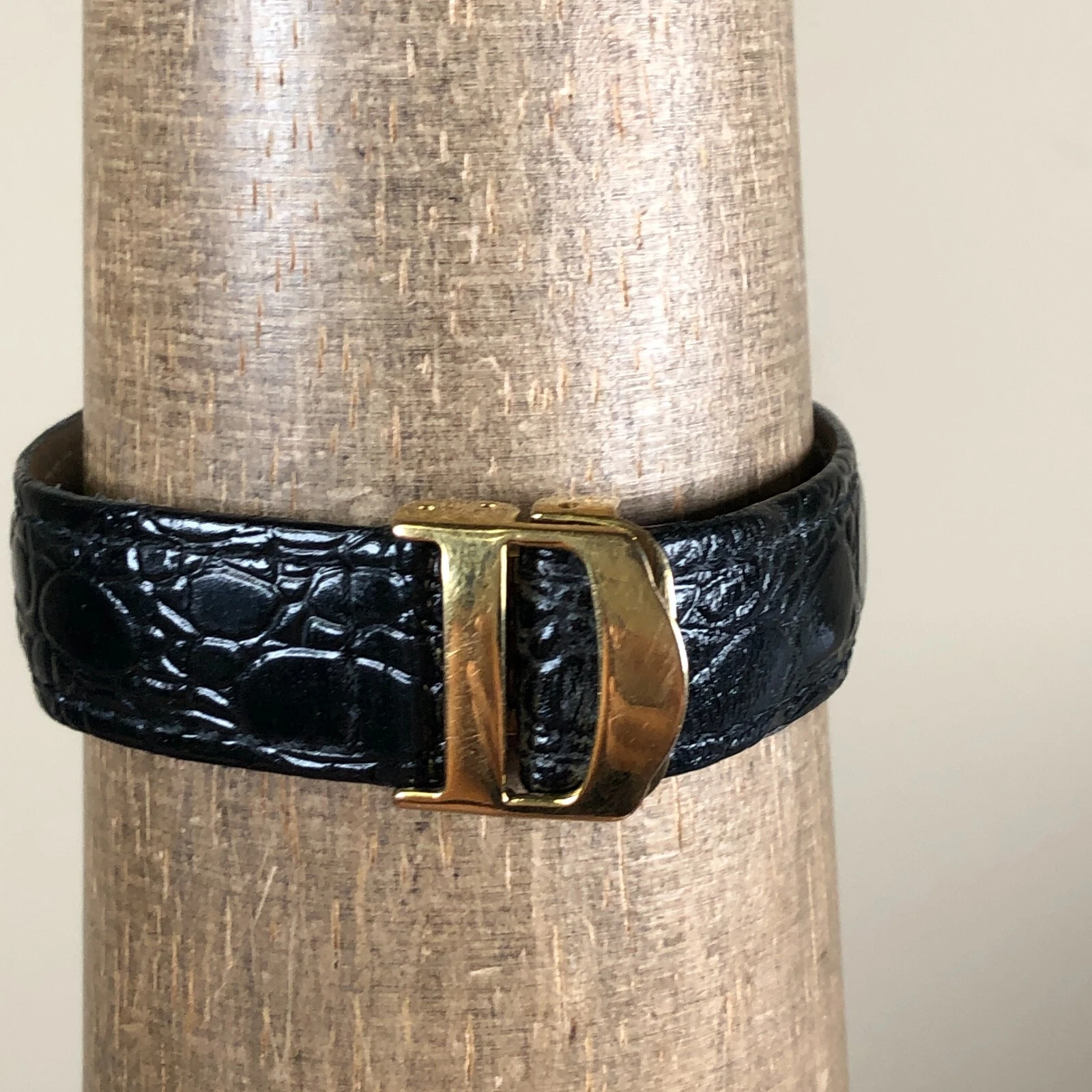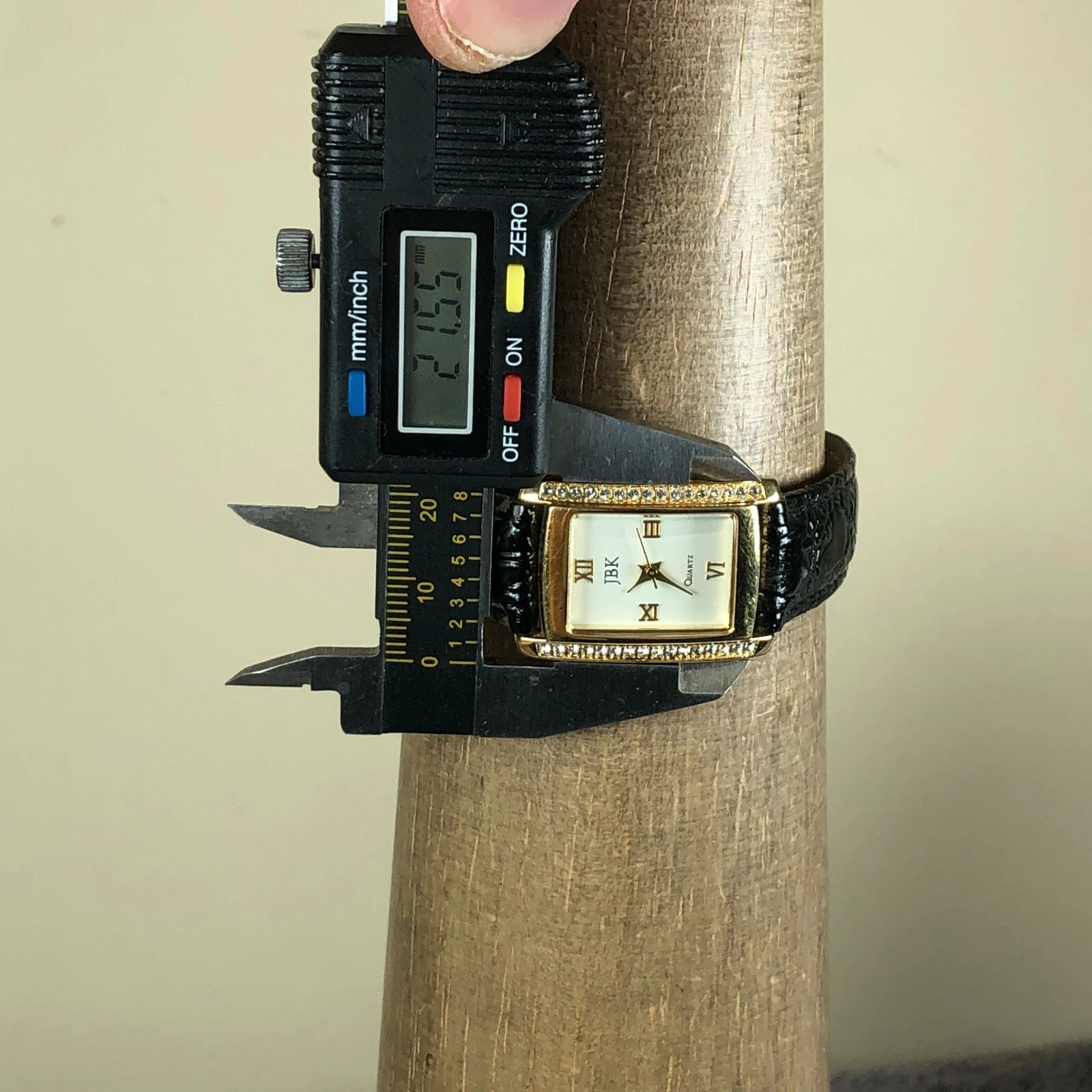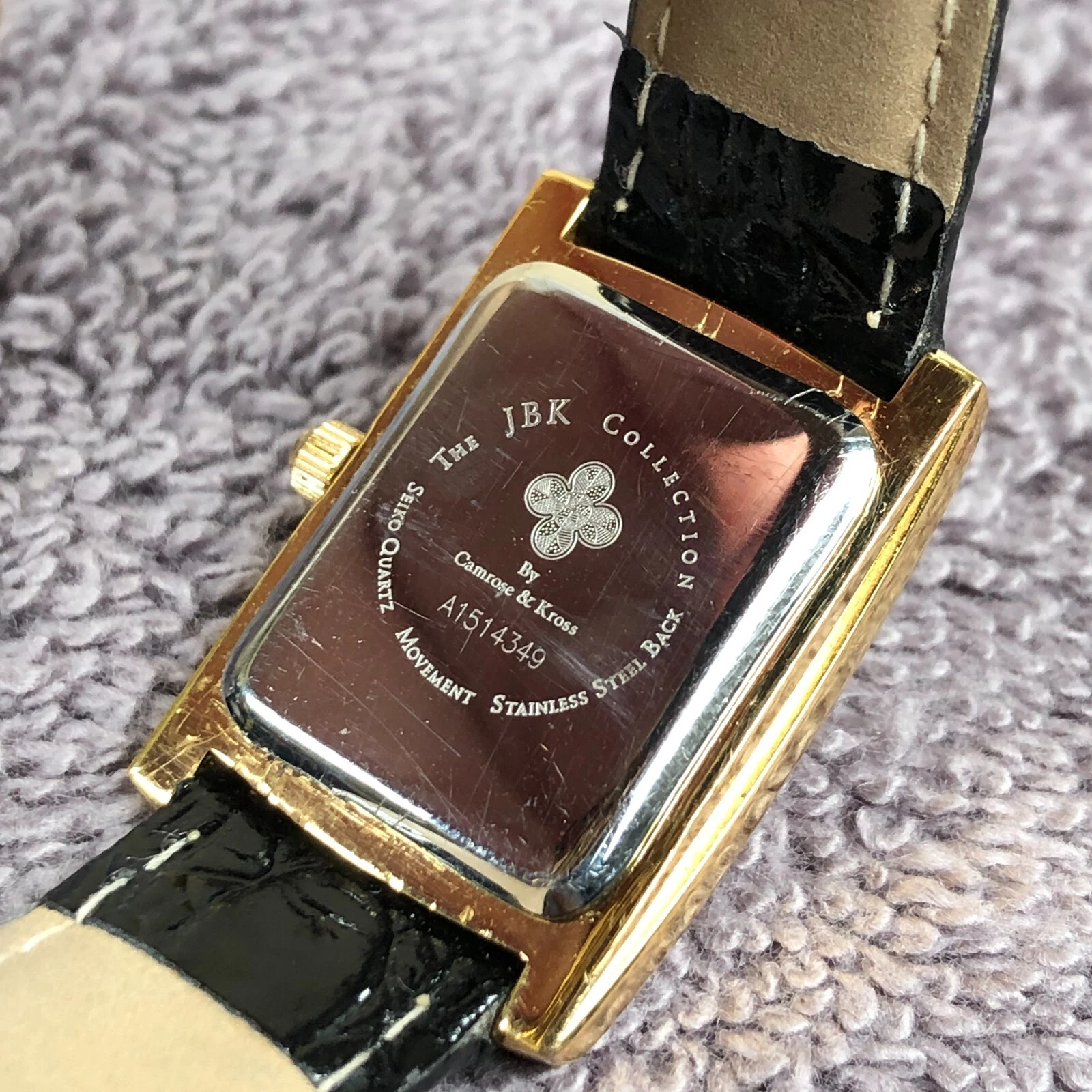 JBK Collection Women Camrose & Kross Black Leather Pave Bezel Quartz Watch 7"