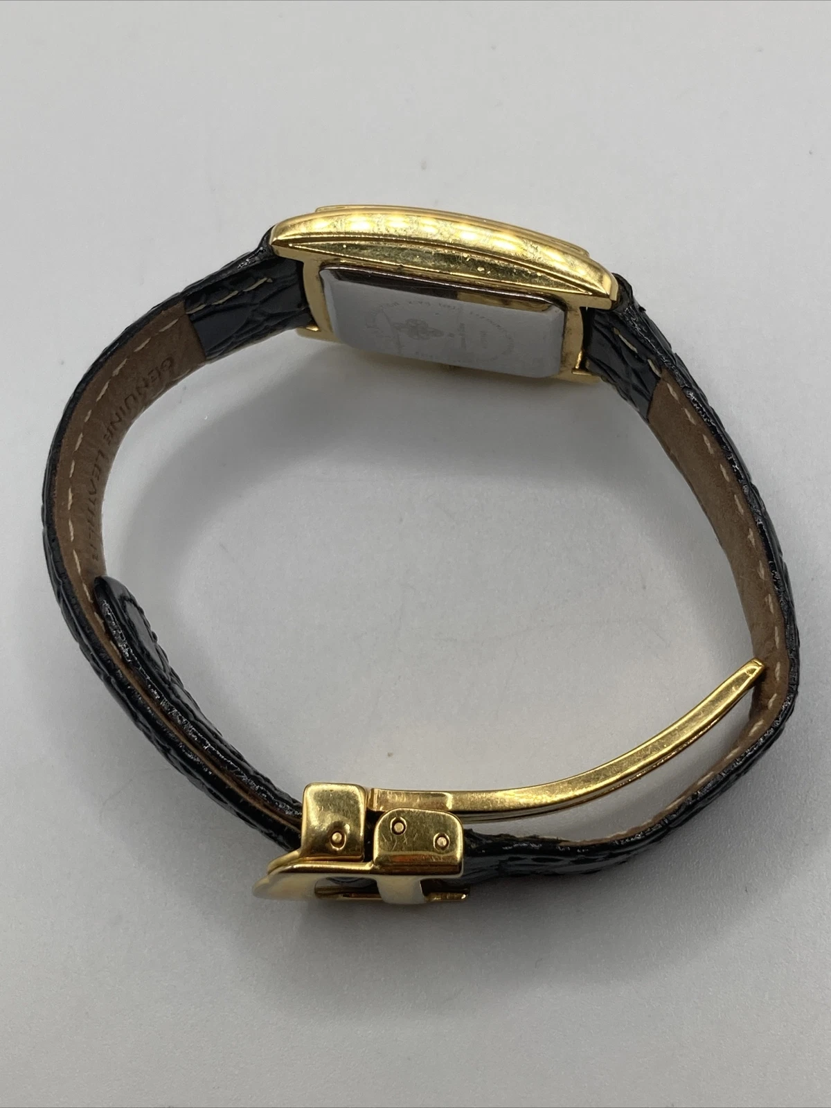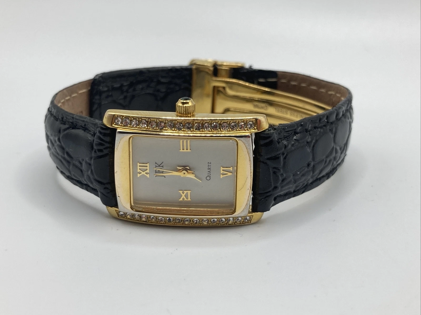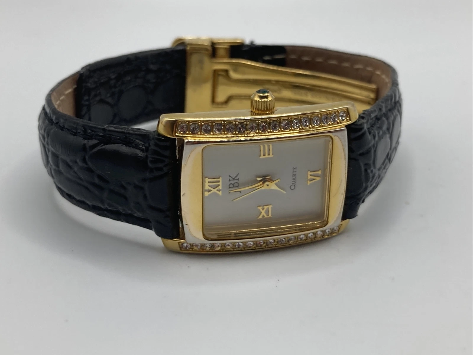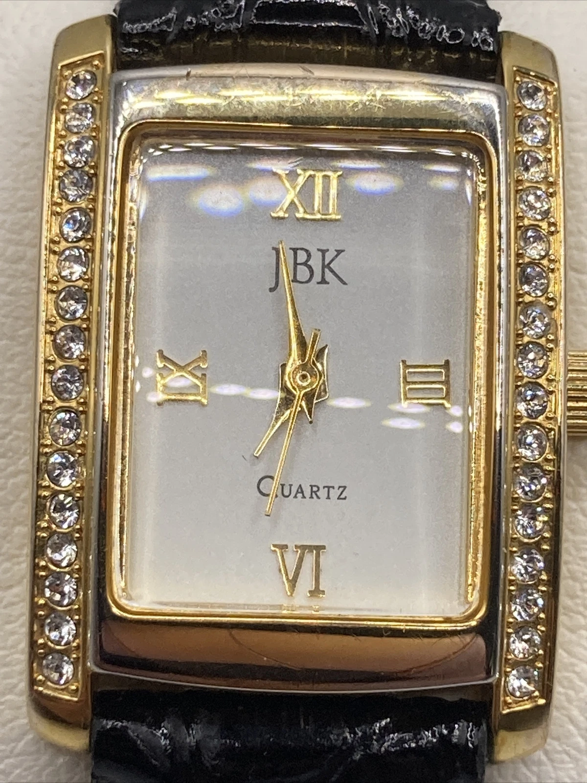 JBK Jacqueline Kennedy Ladies 21mm Watch Gold Tone White Dial Black Band-RUNS