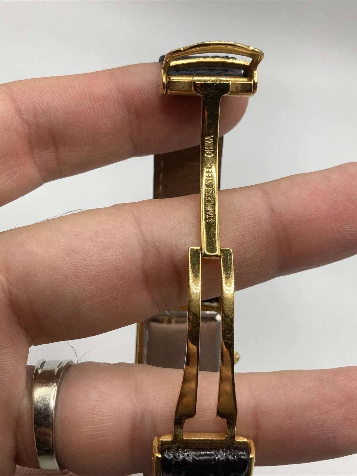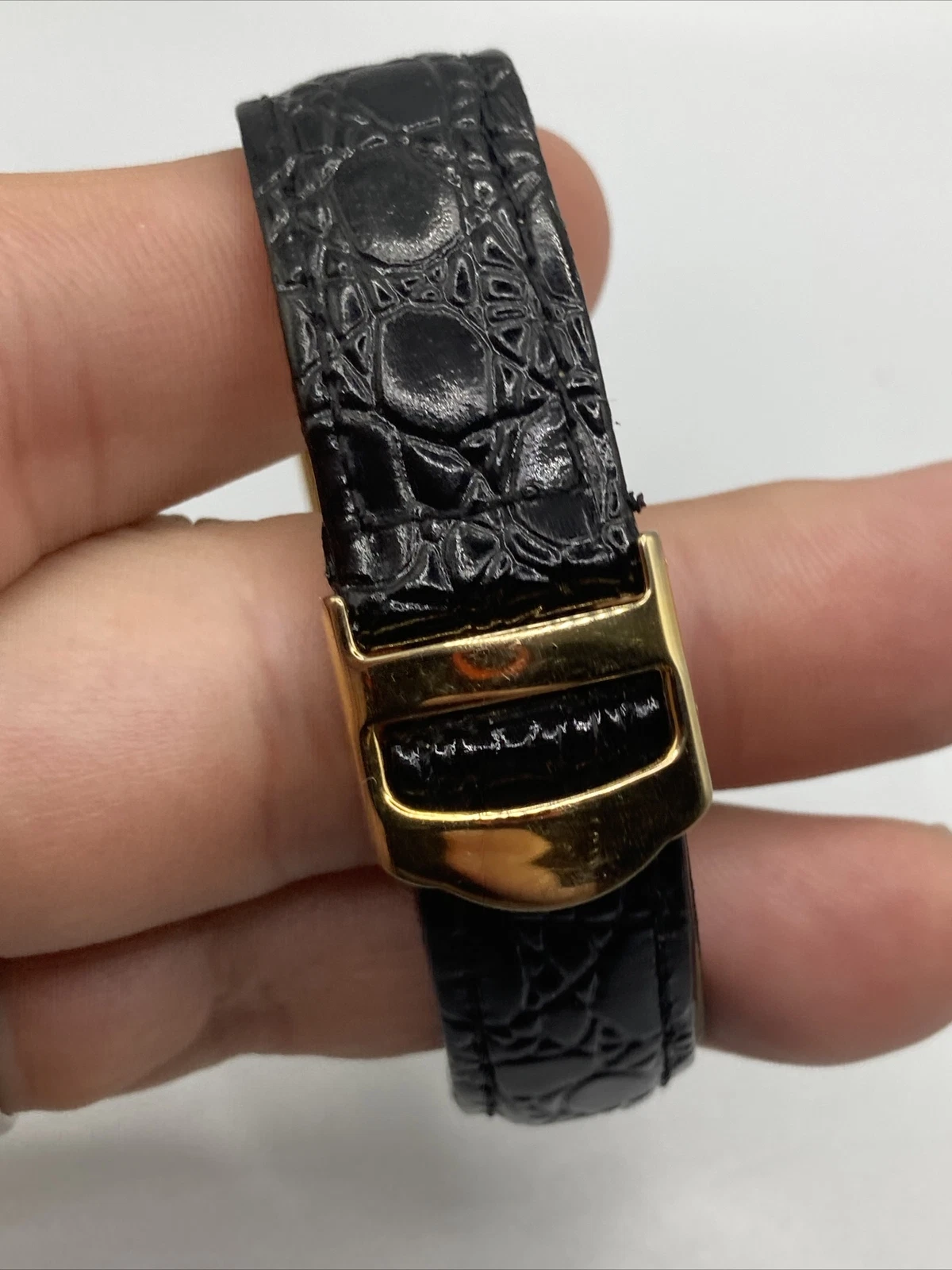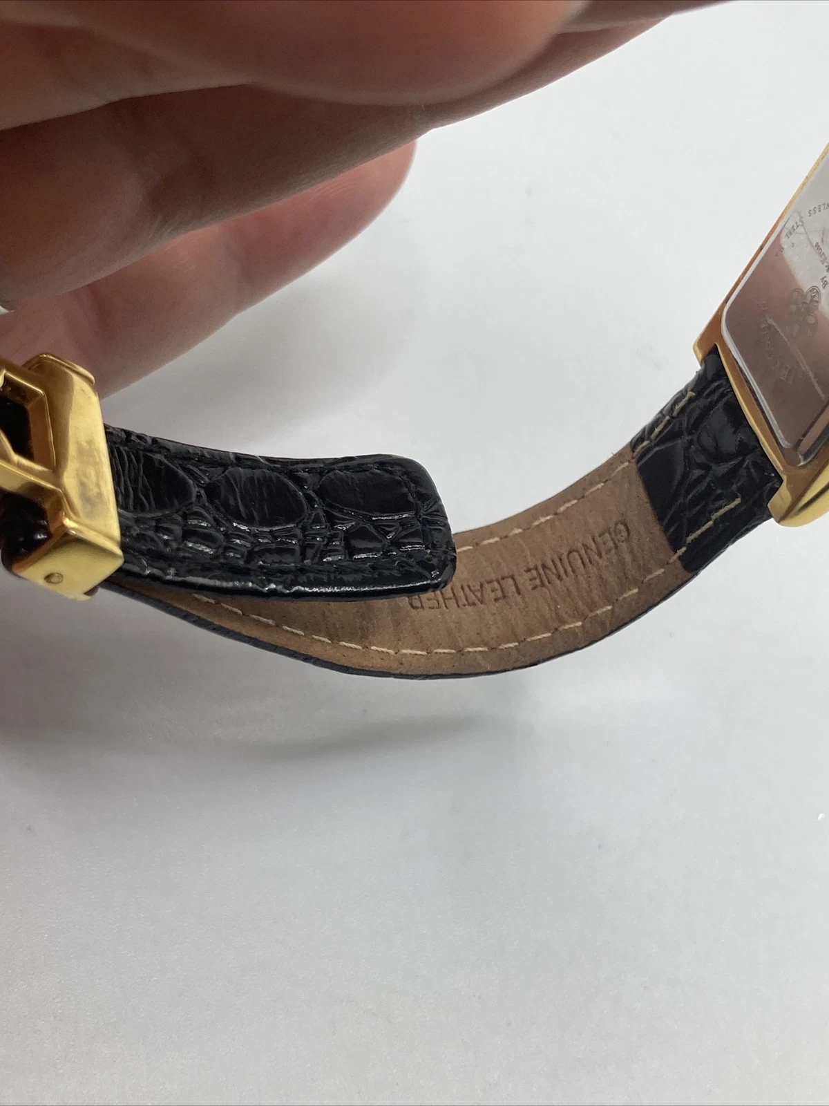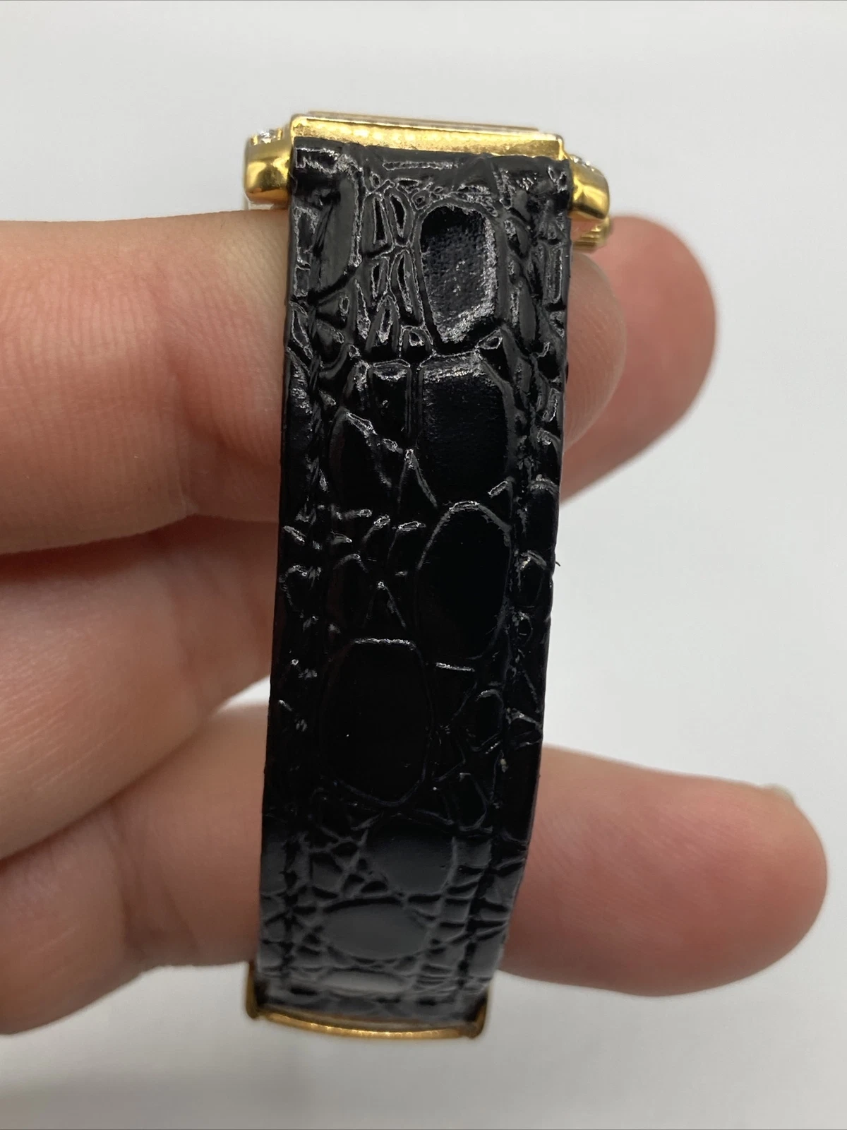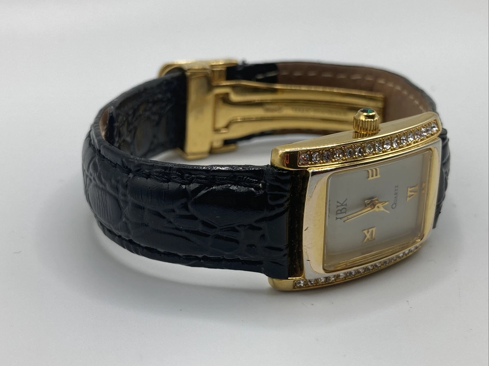 JBK Jacqueline Kennedy Ladies 21mm Watch Gold Tone White Dial Black Band-RUNS