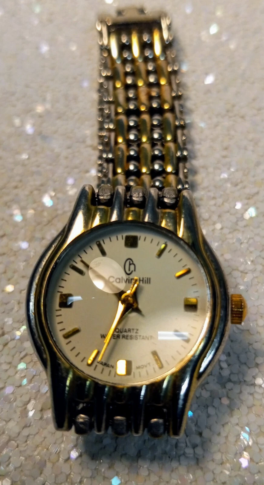 Vintage CALVIN HILL  Ladies Wristwatch In Silver & Brass Tone PARTS/REPAIR ONLY