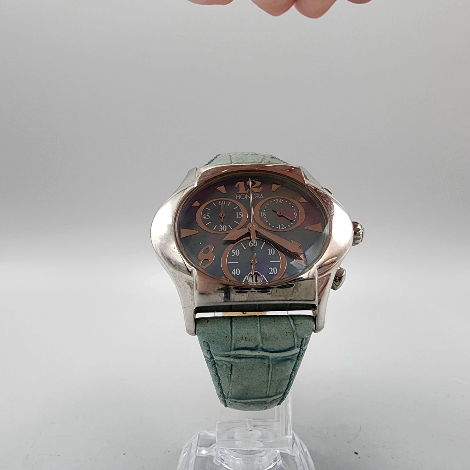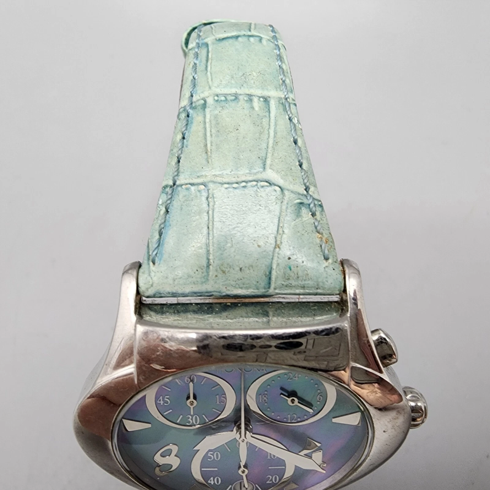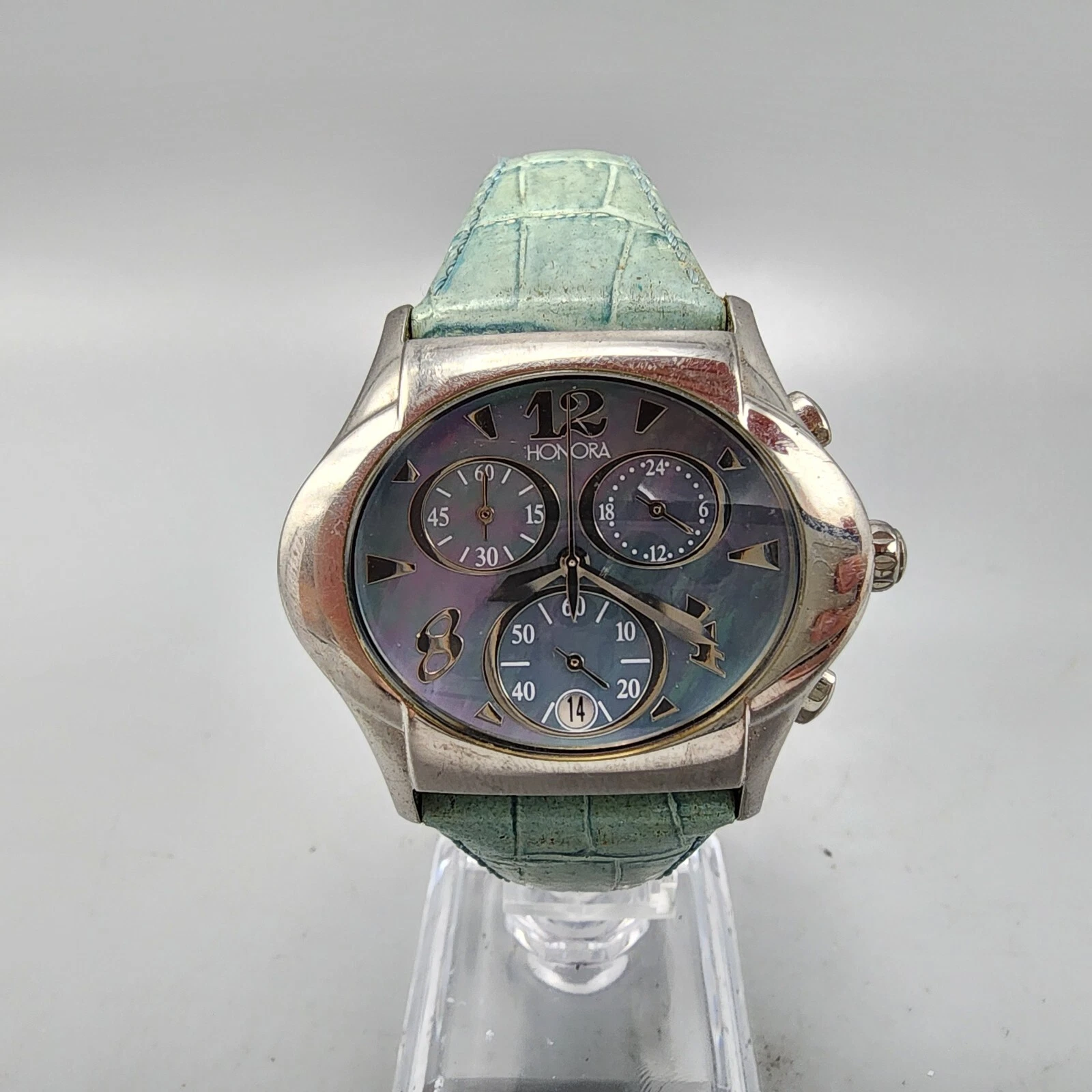 Honora Chronograph Watch Women 39mm MOP Dial Silver Tone Date Oval New Battery