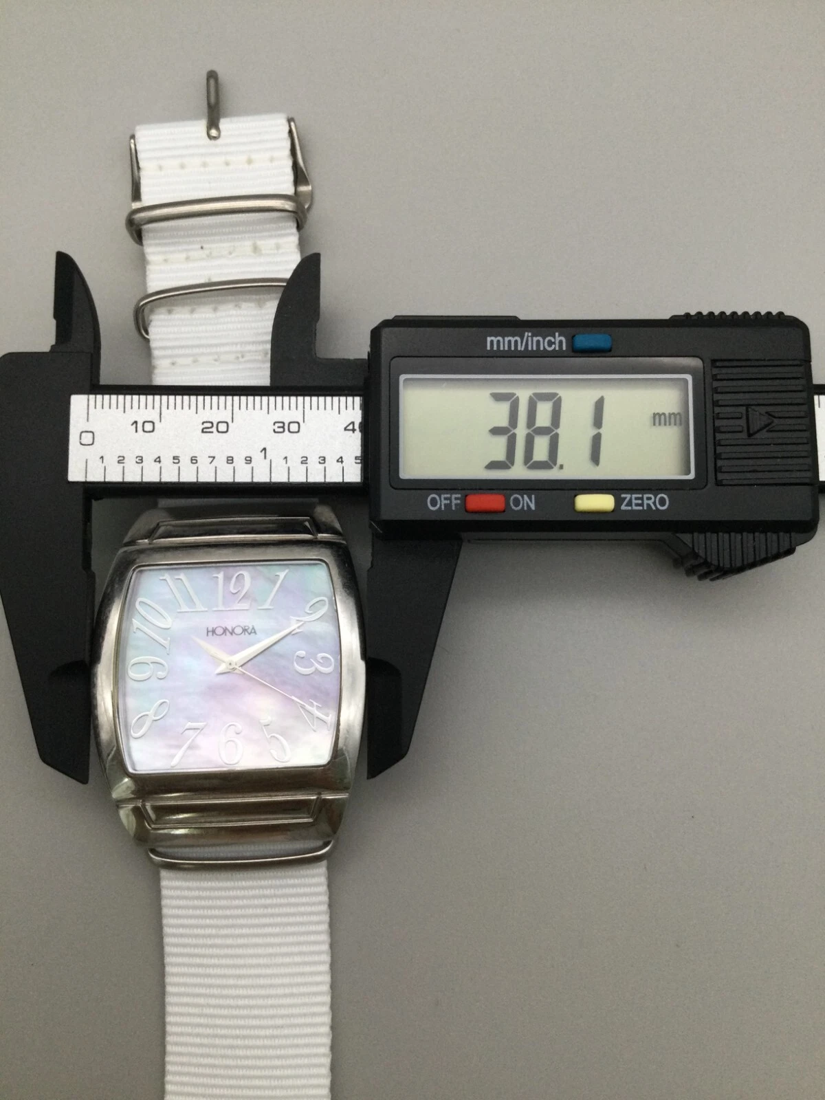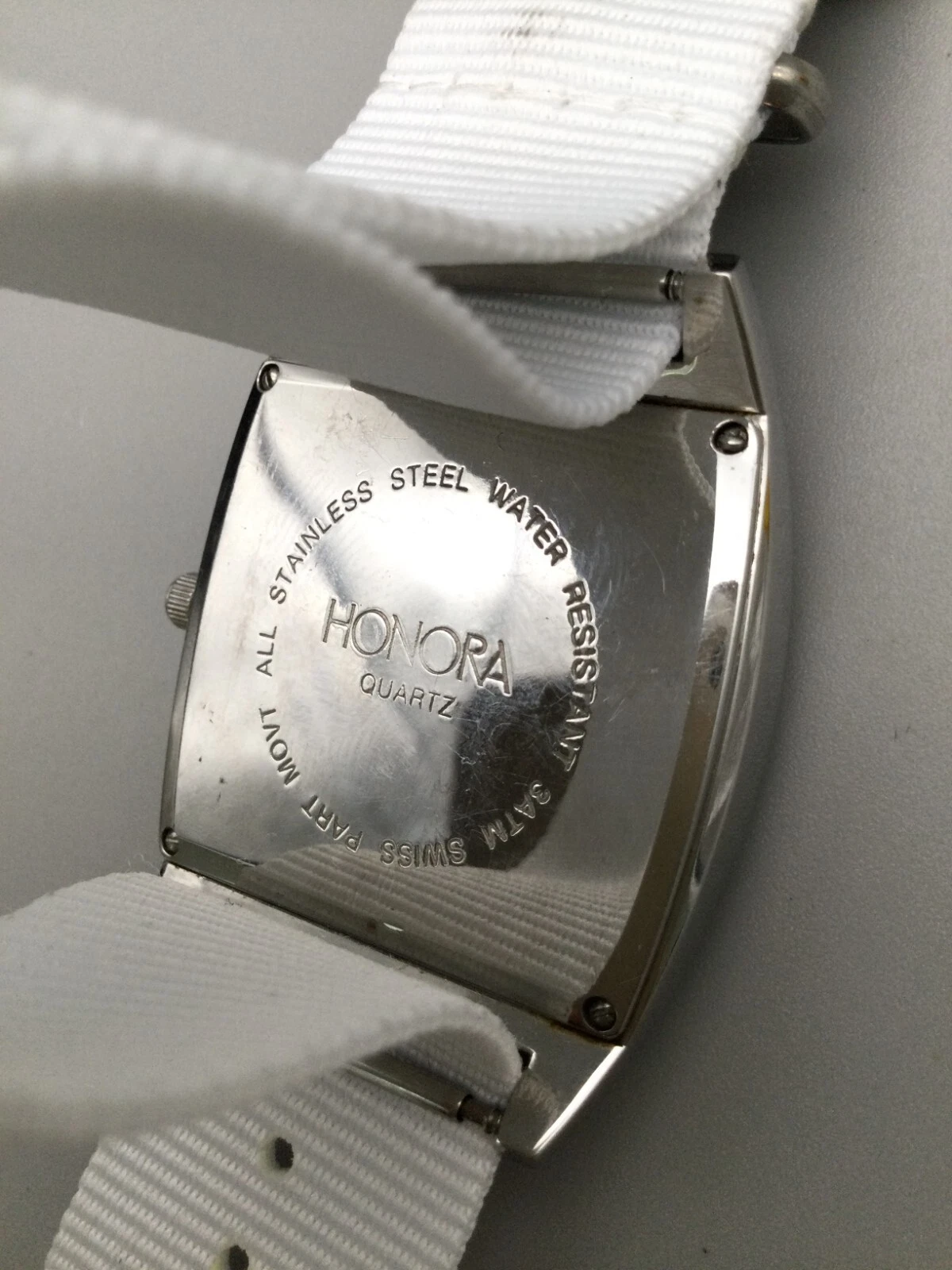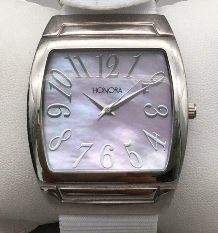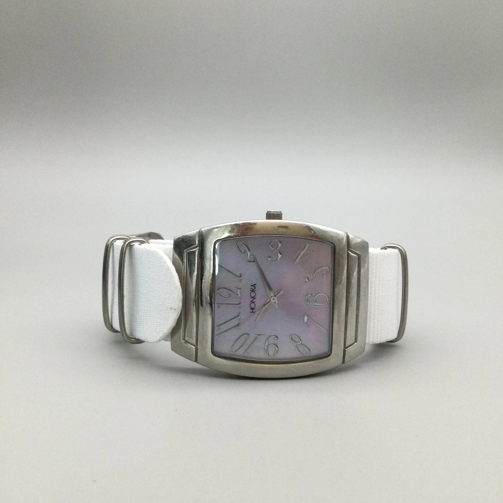 Honora Watch Women 38mm Silver Tone Mother of Pearl Dial Nylon Band New Battery